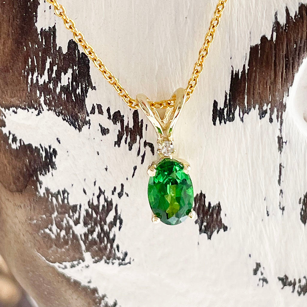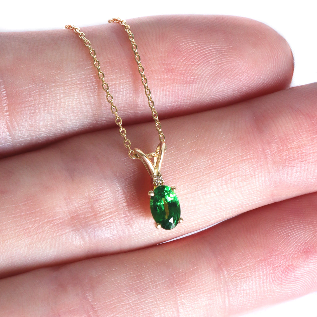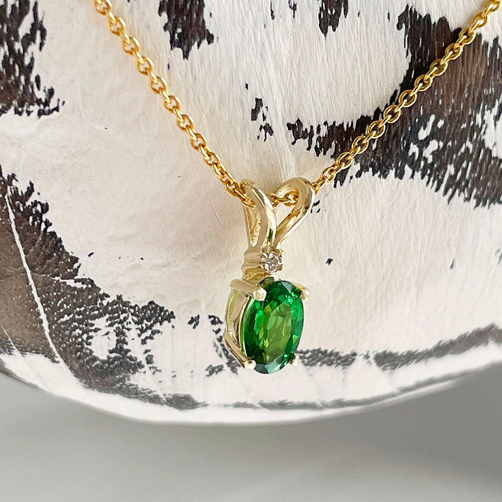 Delicate Split Bale Oval Tsavorite and Diamond Highlight Pendant