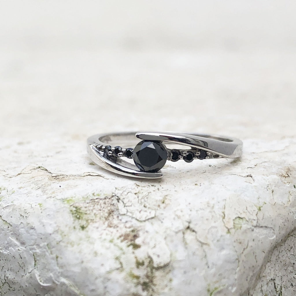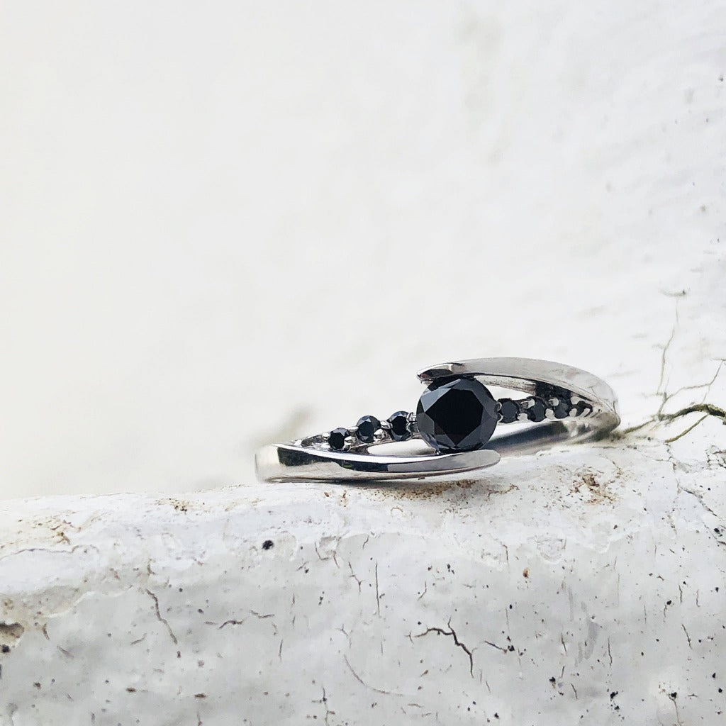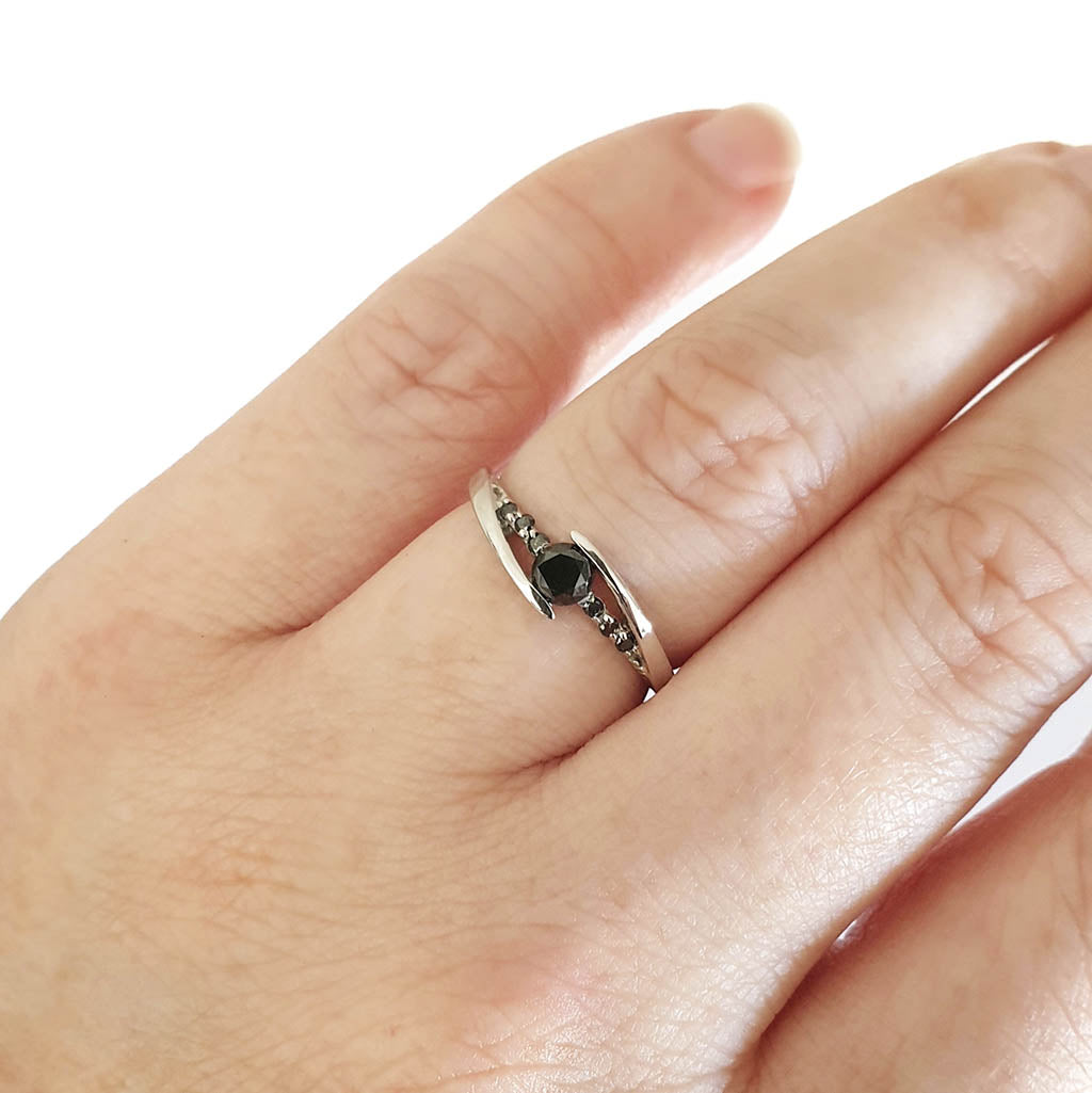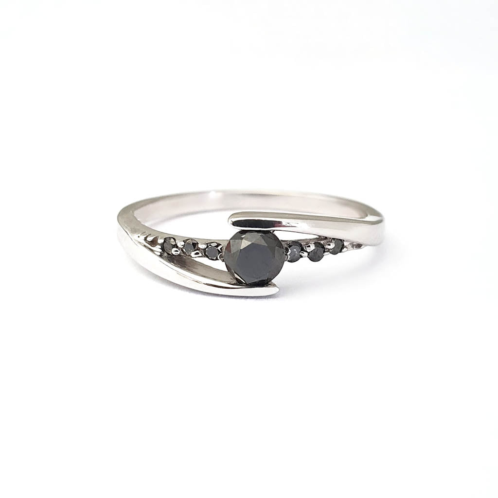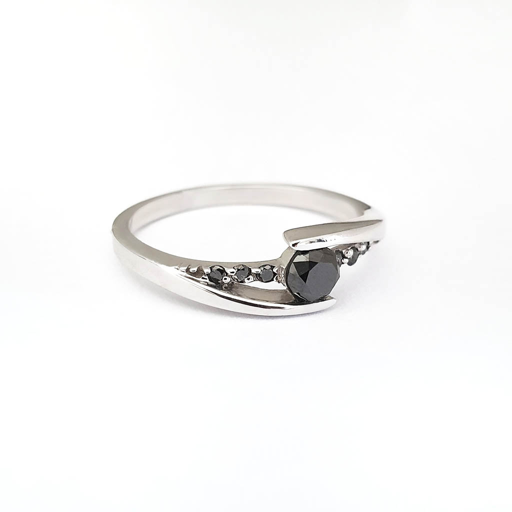 Delicate Split Shank Black Diamond Ring