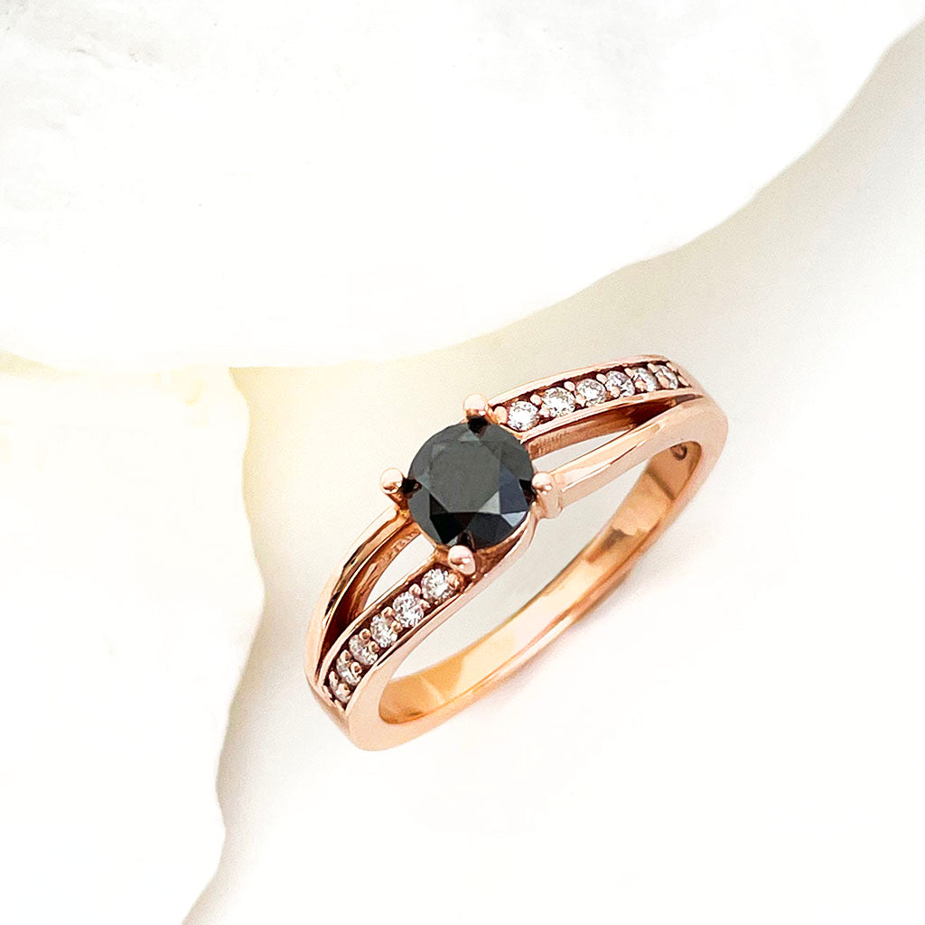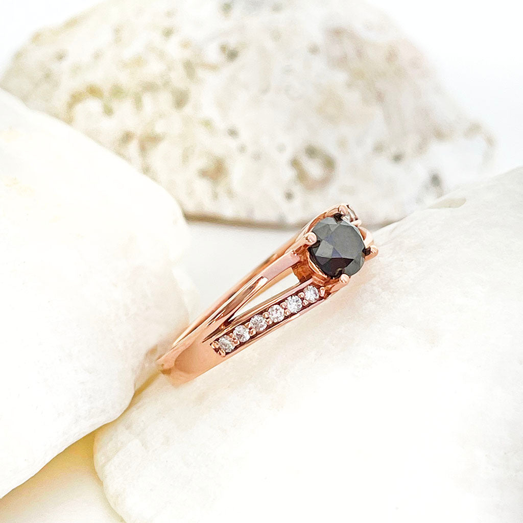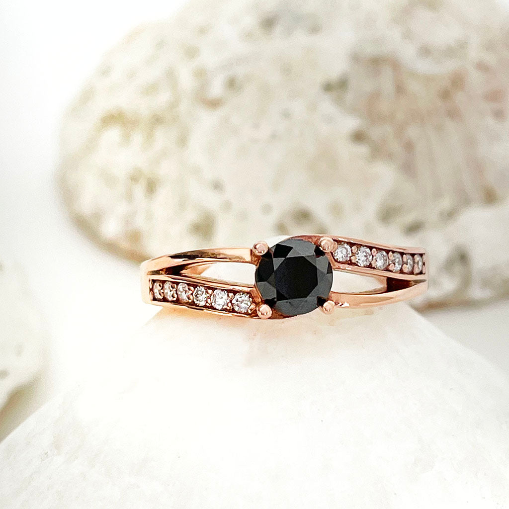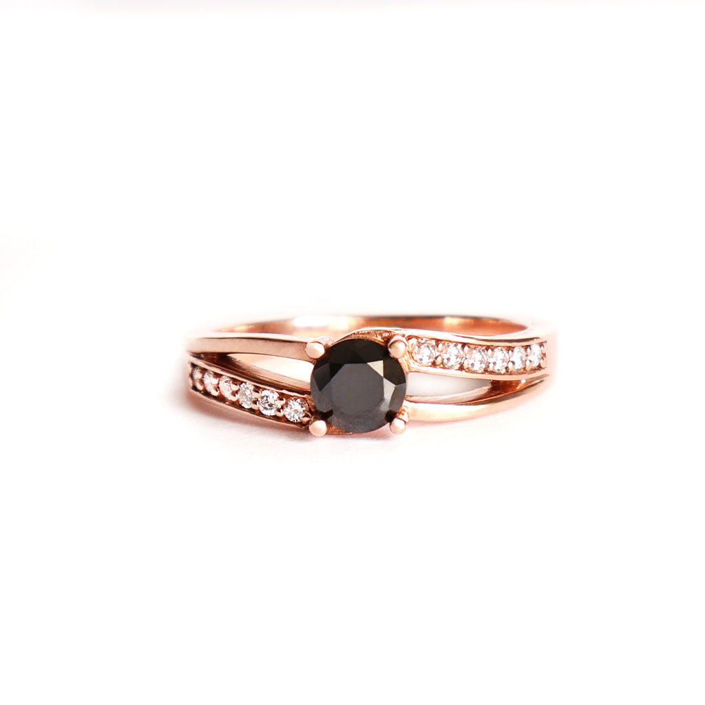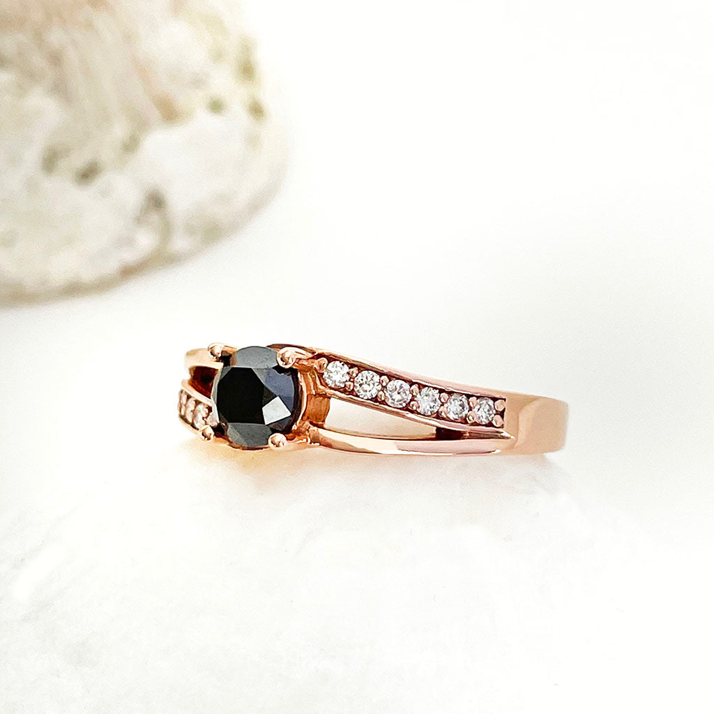 Delicious Black and White Diamond Open Band Twisted Rose Gold Ring