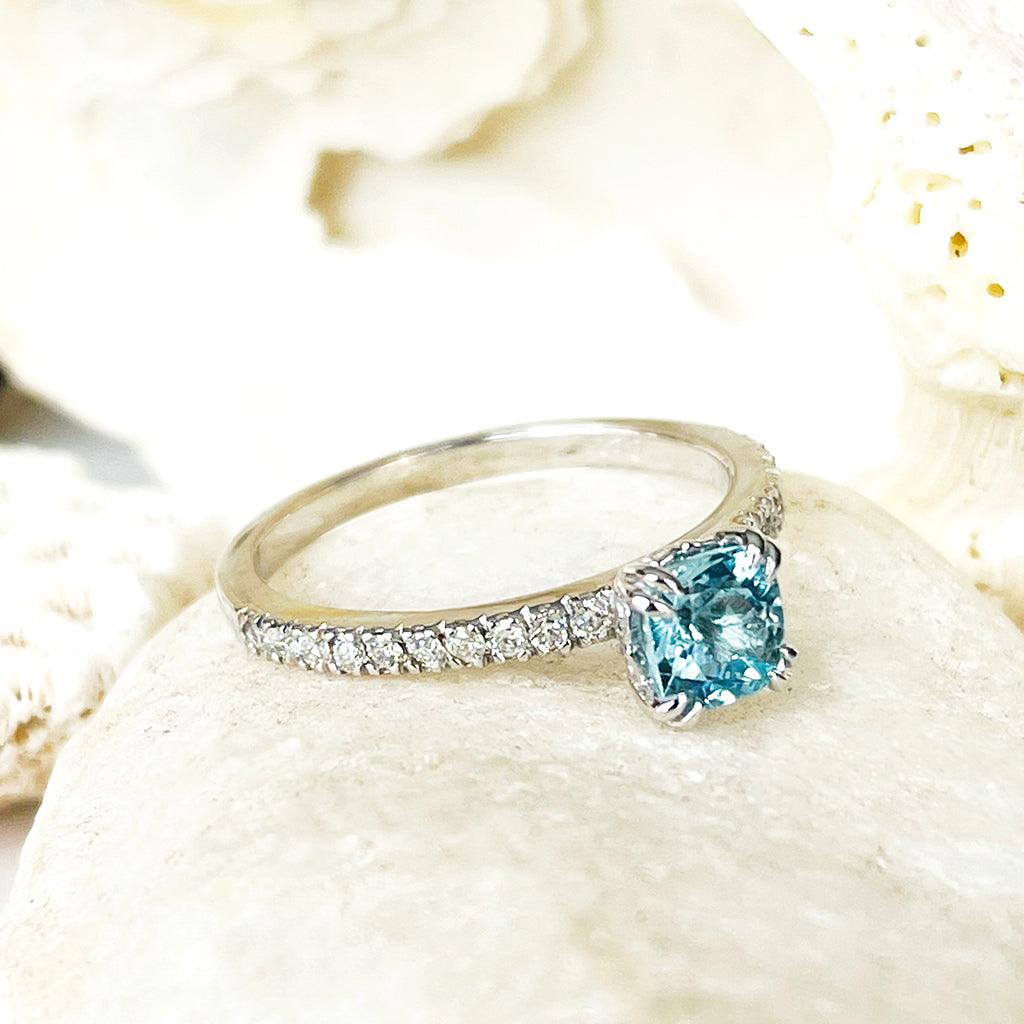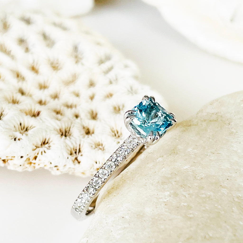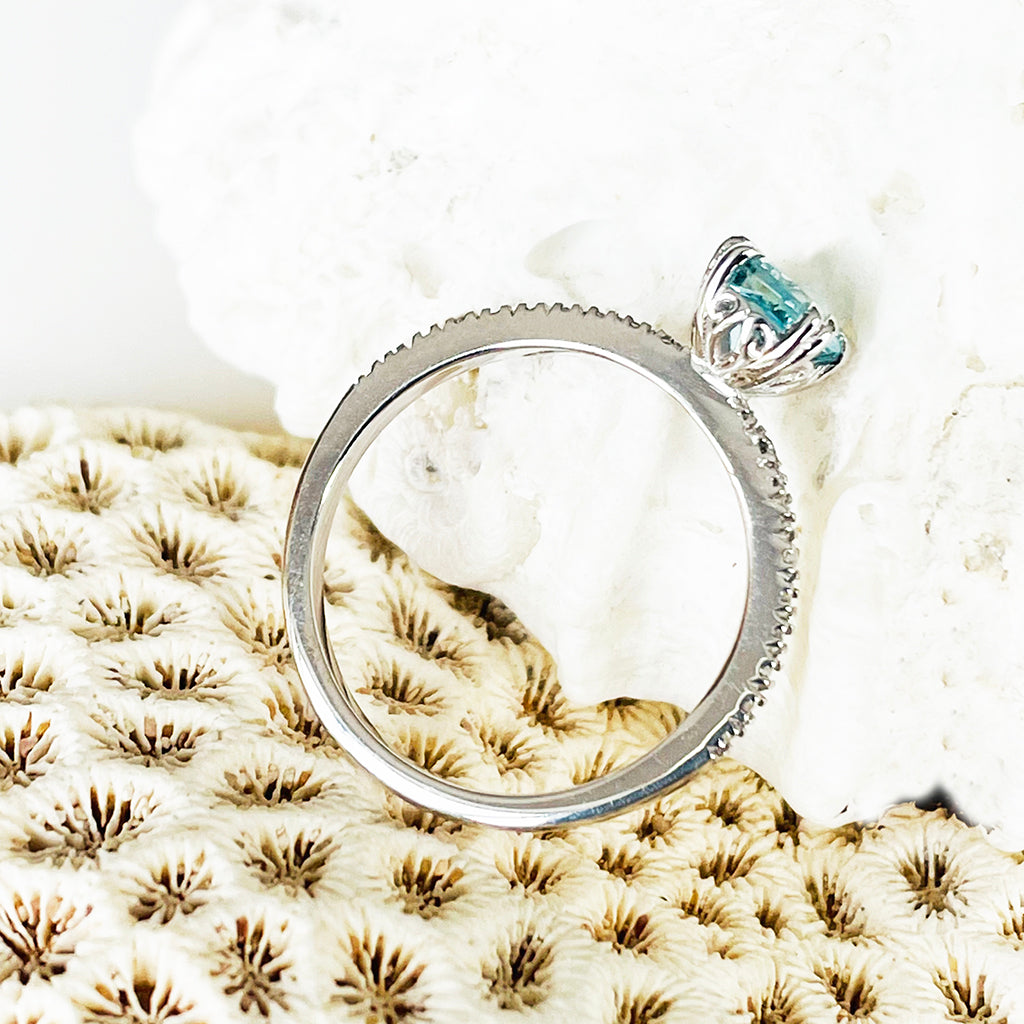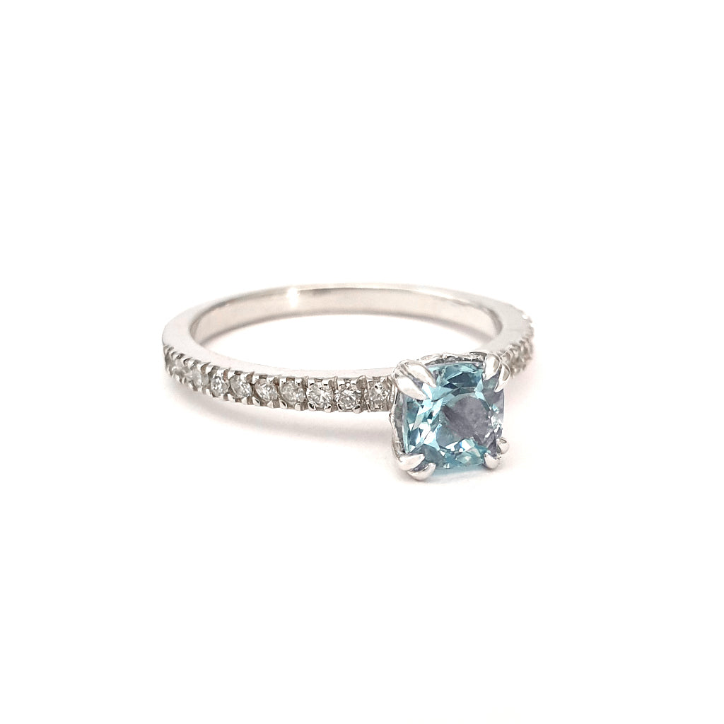 Delicious Double Claw Aquamarine and Diamond Band Ring