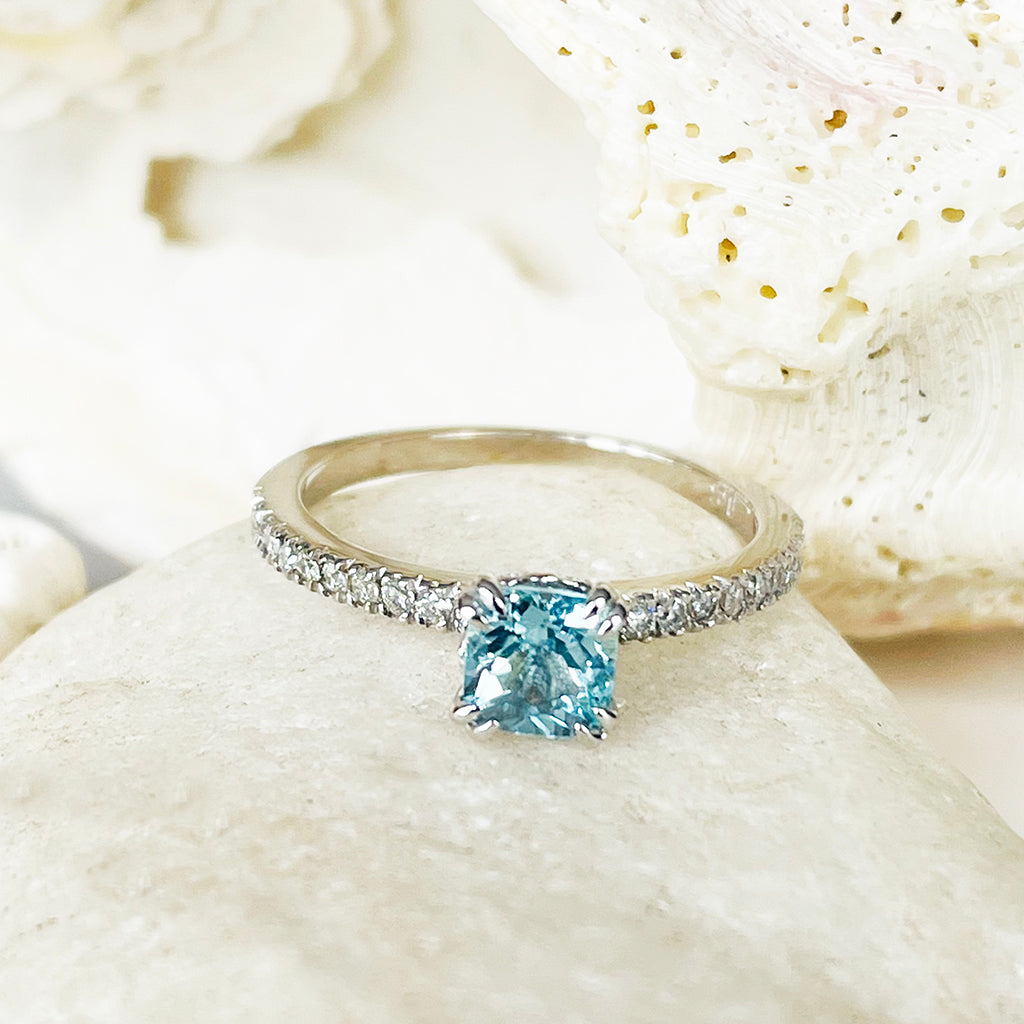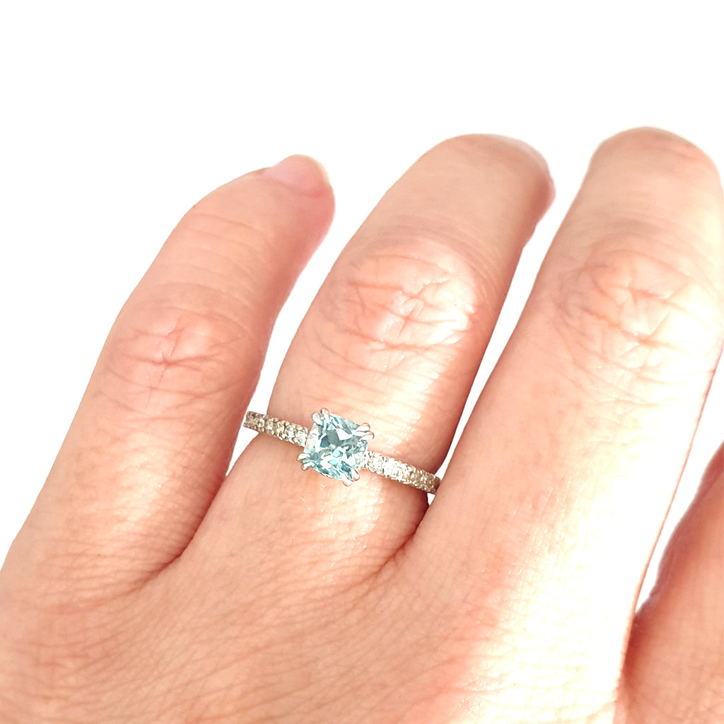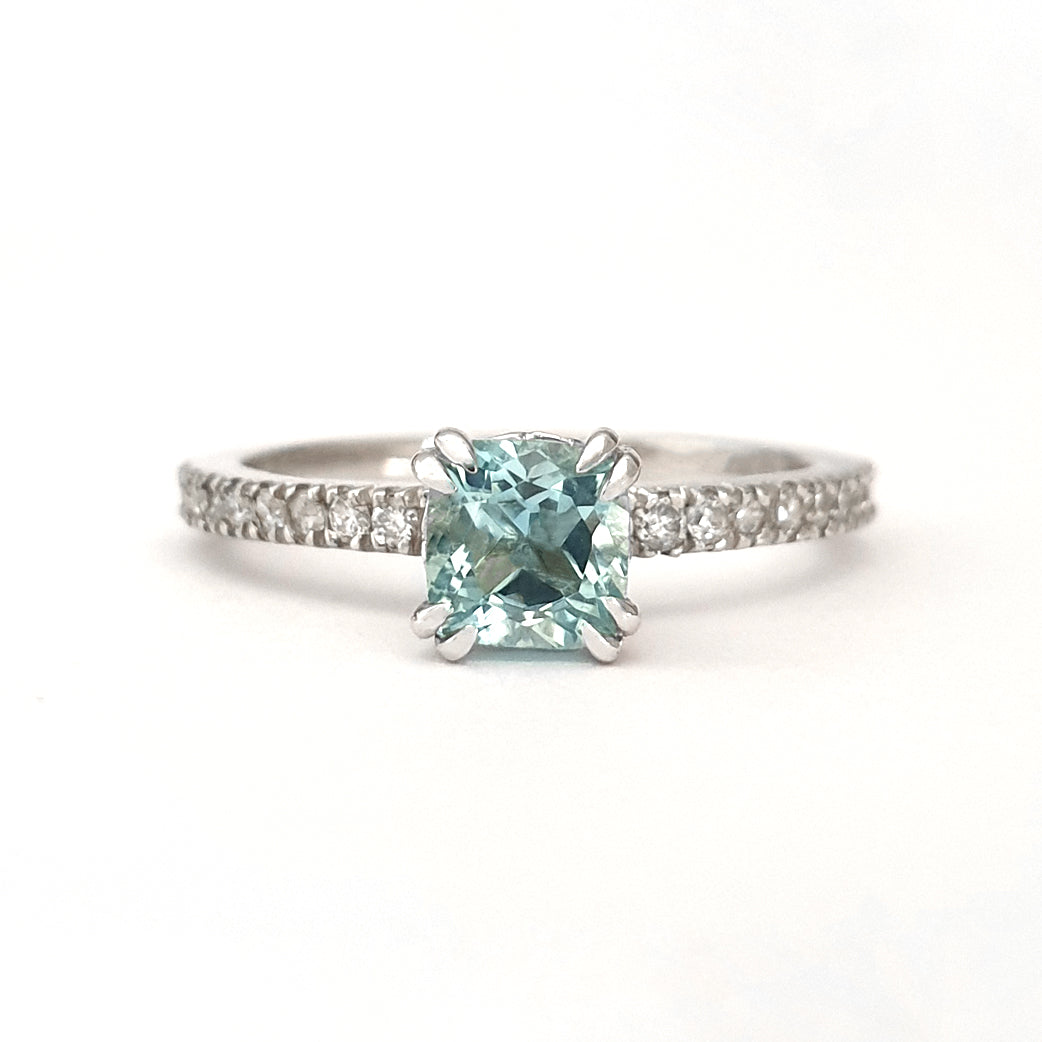 Delicious Double Claw Aquamarine and Diamond Band Ring