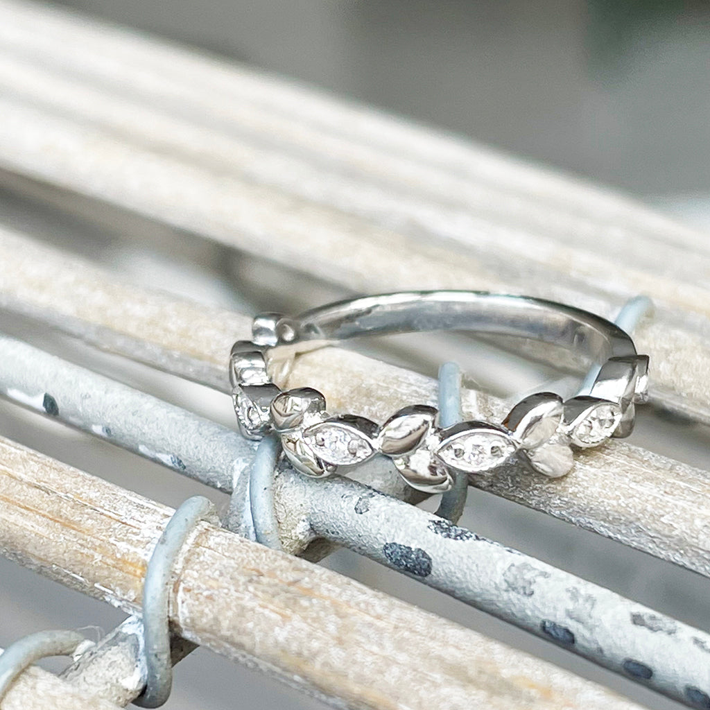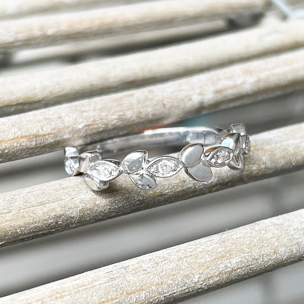 Diamond Leaf White Gold Ring