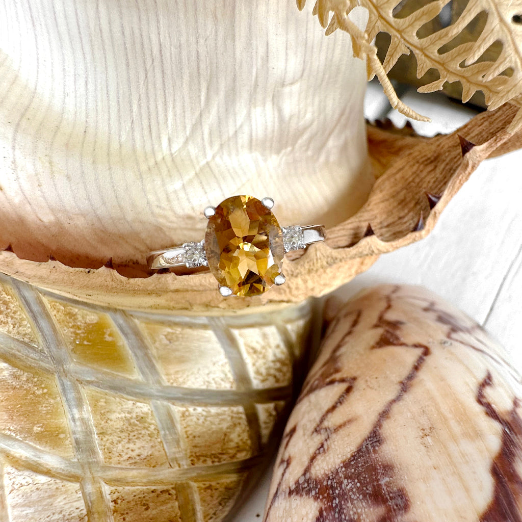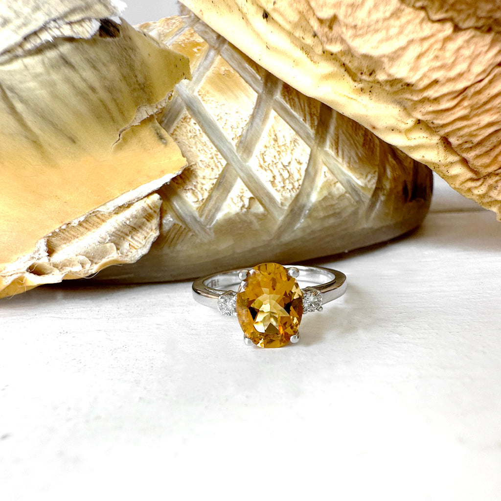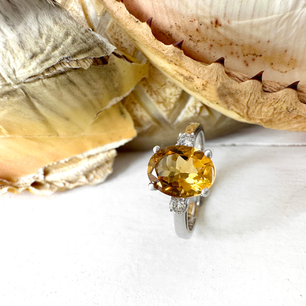 Divine Oval Citrine and Diamond Shoulder Highlight White Gold Ring