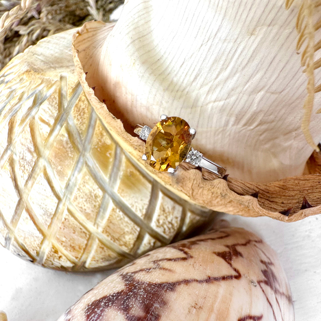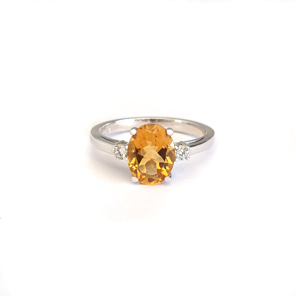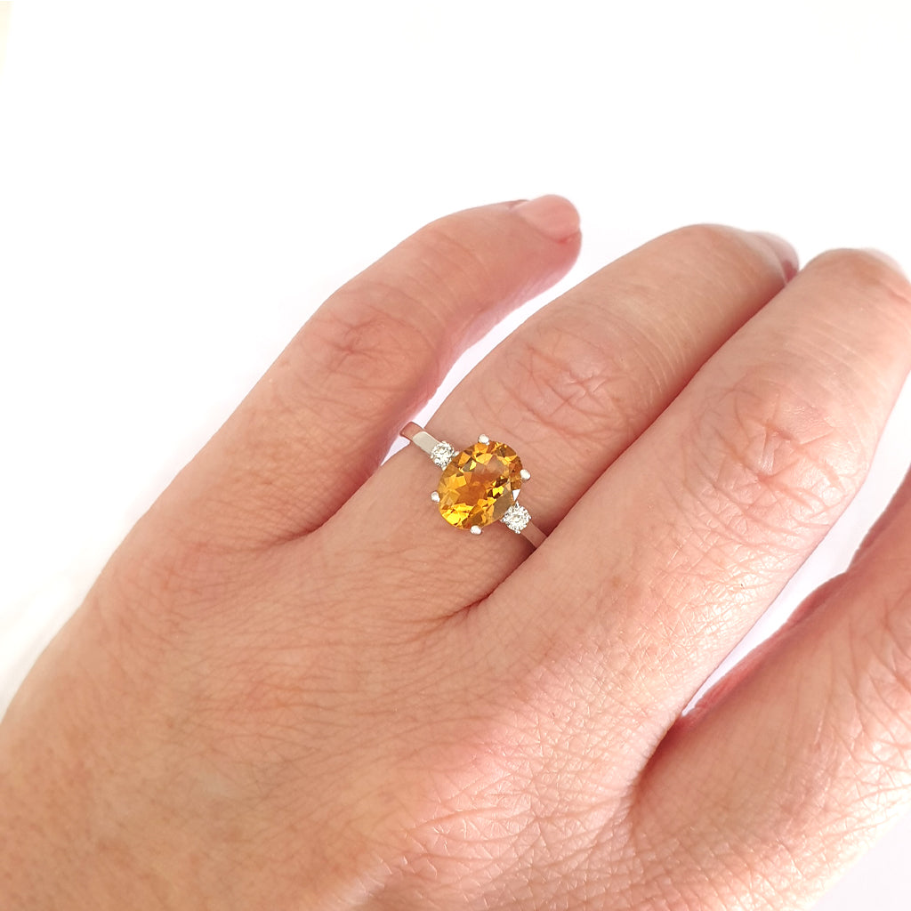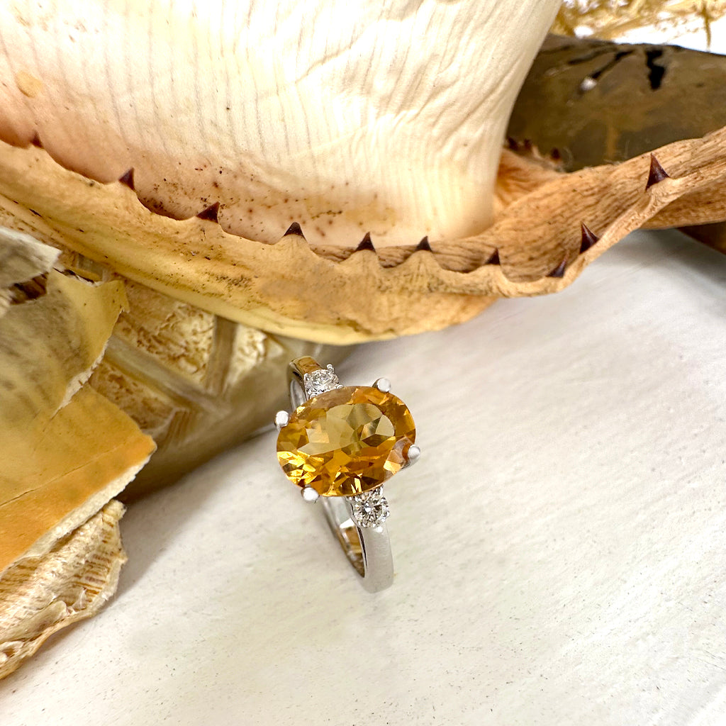 Divine Oval Citrine and Diamond Shoulder Highlight White Gold Ring