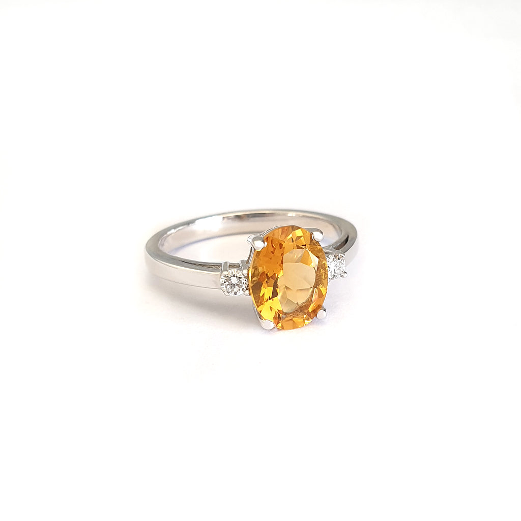 This graceful ring is elegant and delicate while still possessing glam show-stopping quality thanks to the richly coloured citrine. Shimmering white diamonds at the shoulders add fire and sparkle to the lush warmth of the classically cut gem, creating a radiant focal point that instantly captures attention.