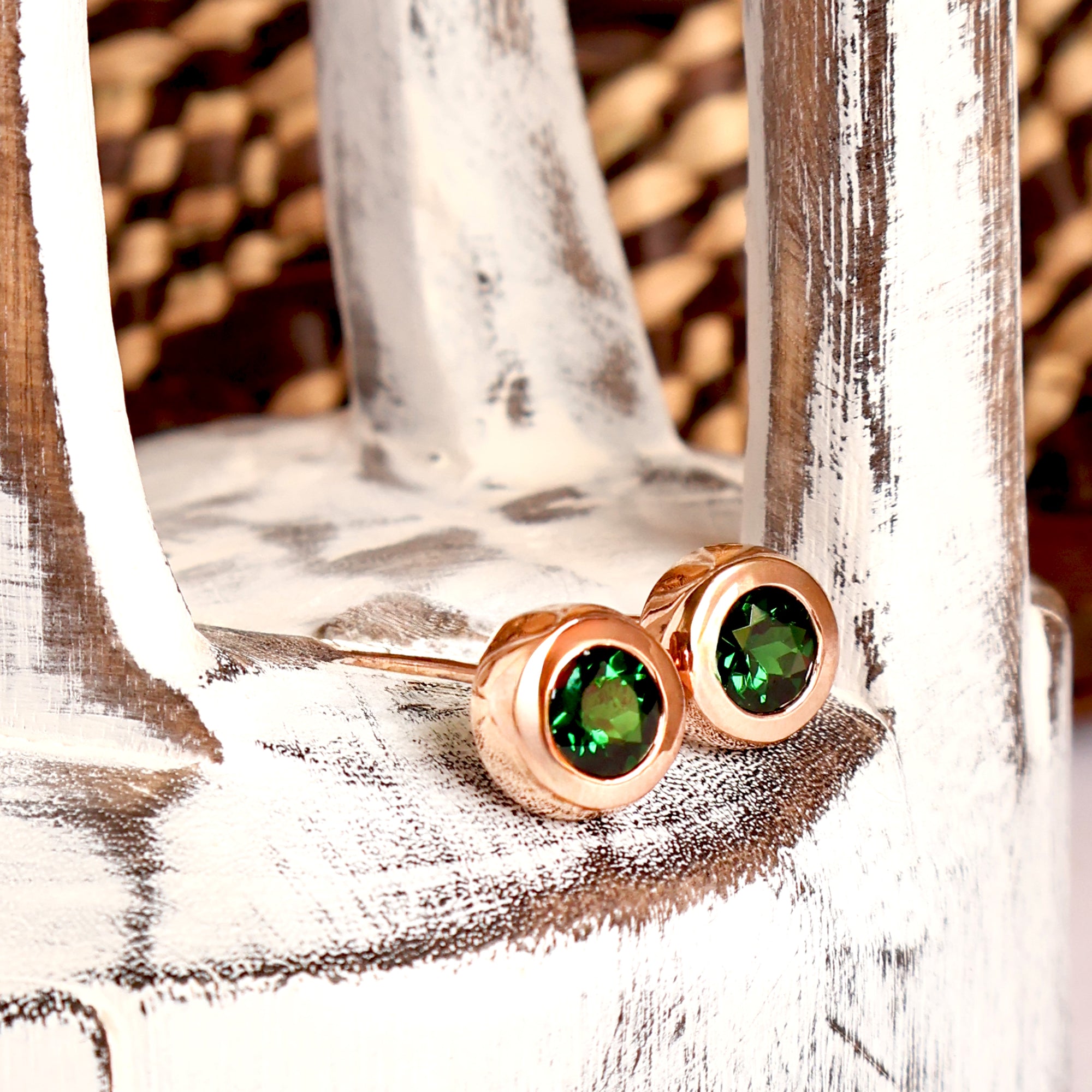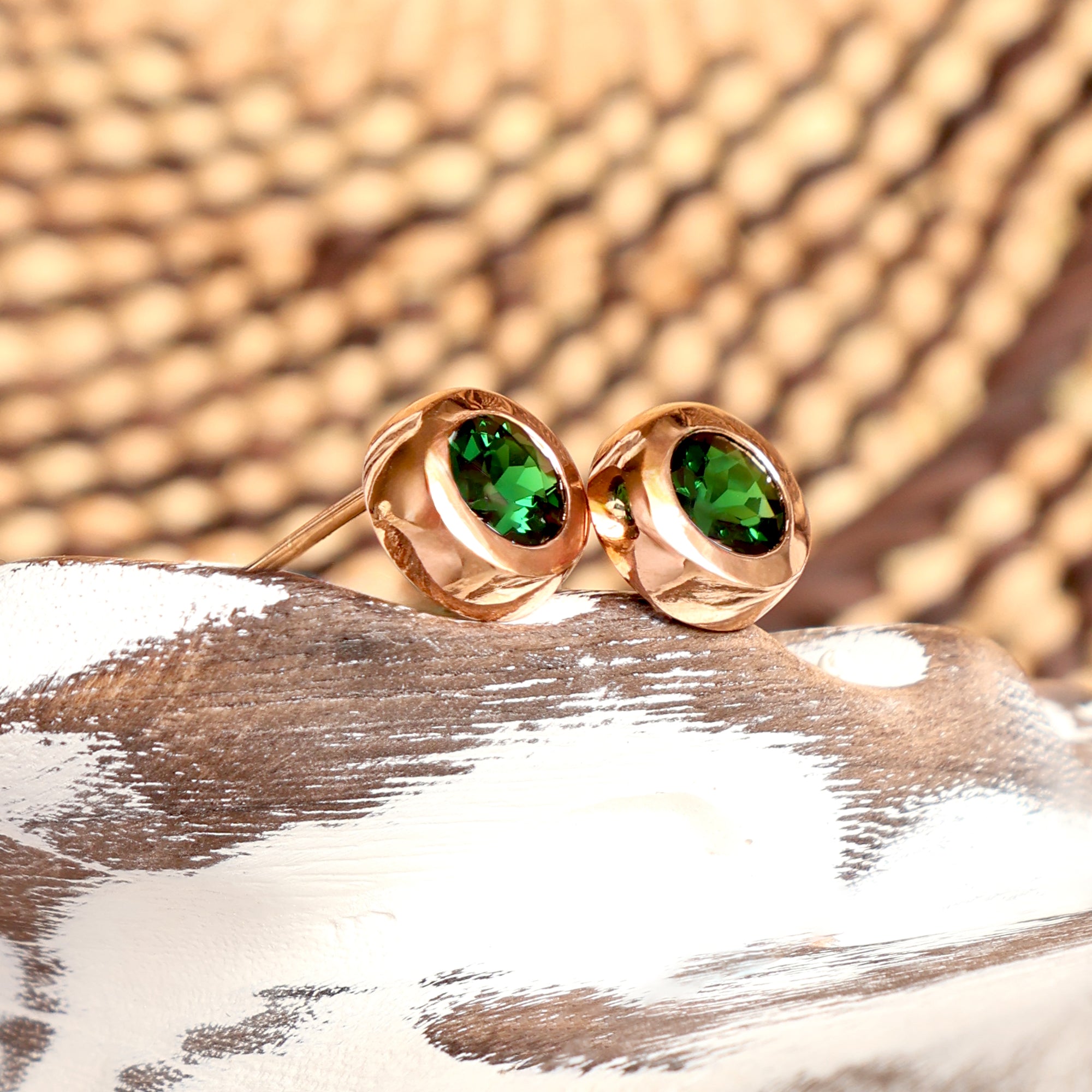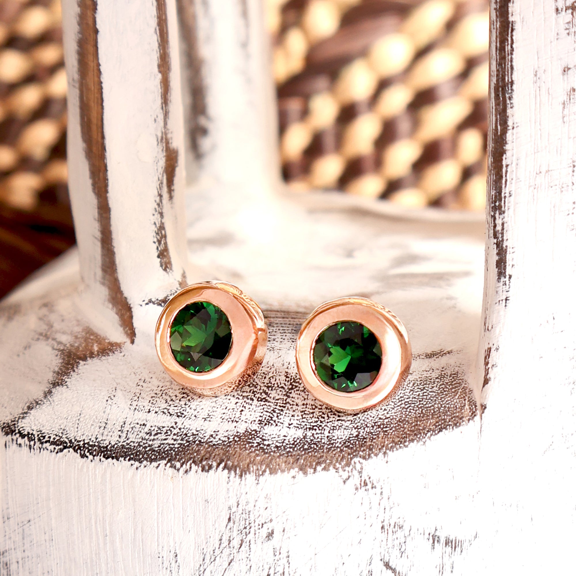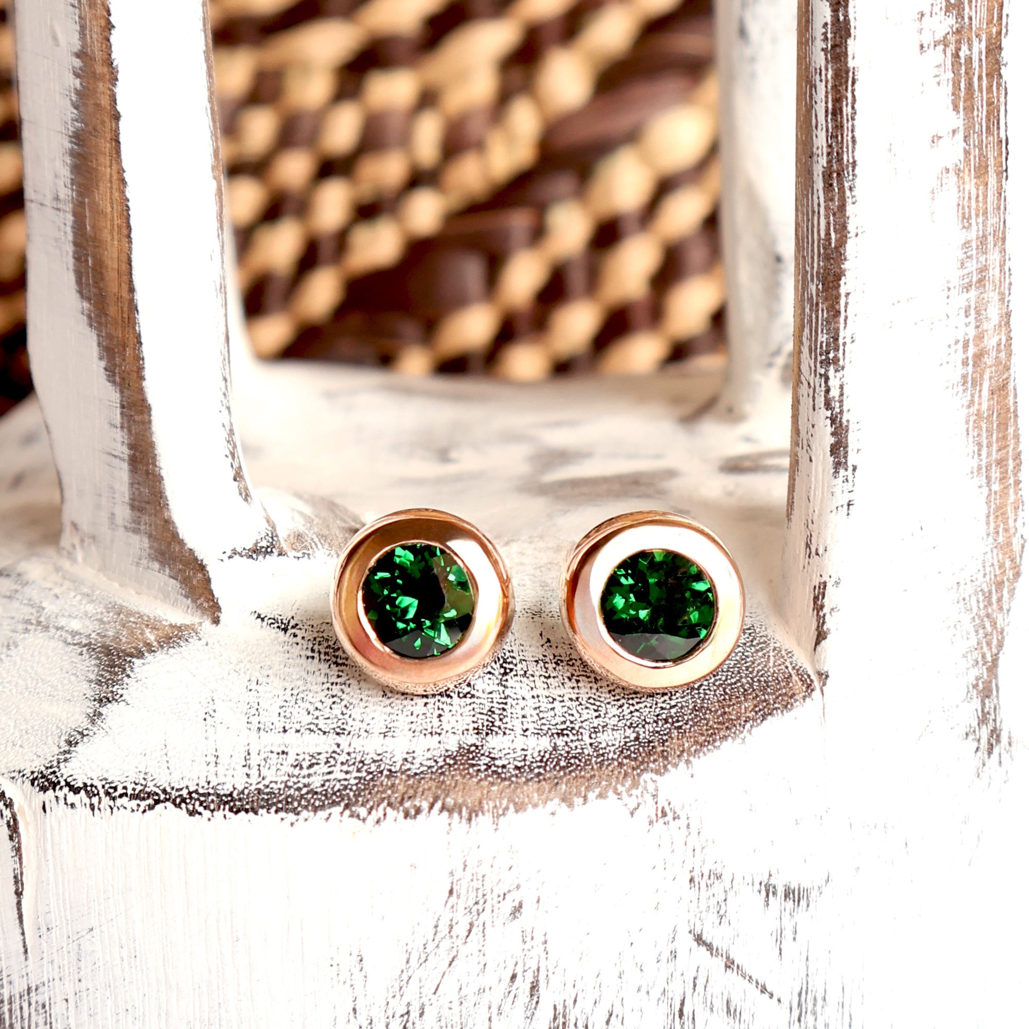 Divinely Deep Green Bezel Set Tsavorite Rose Gold Studs