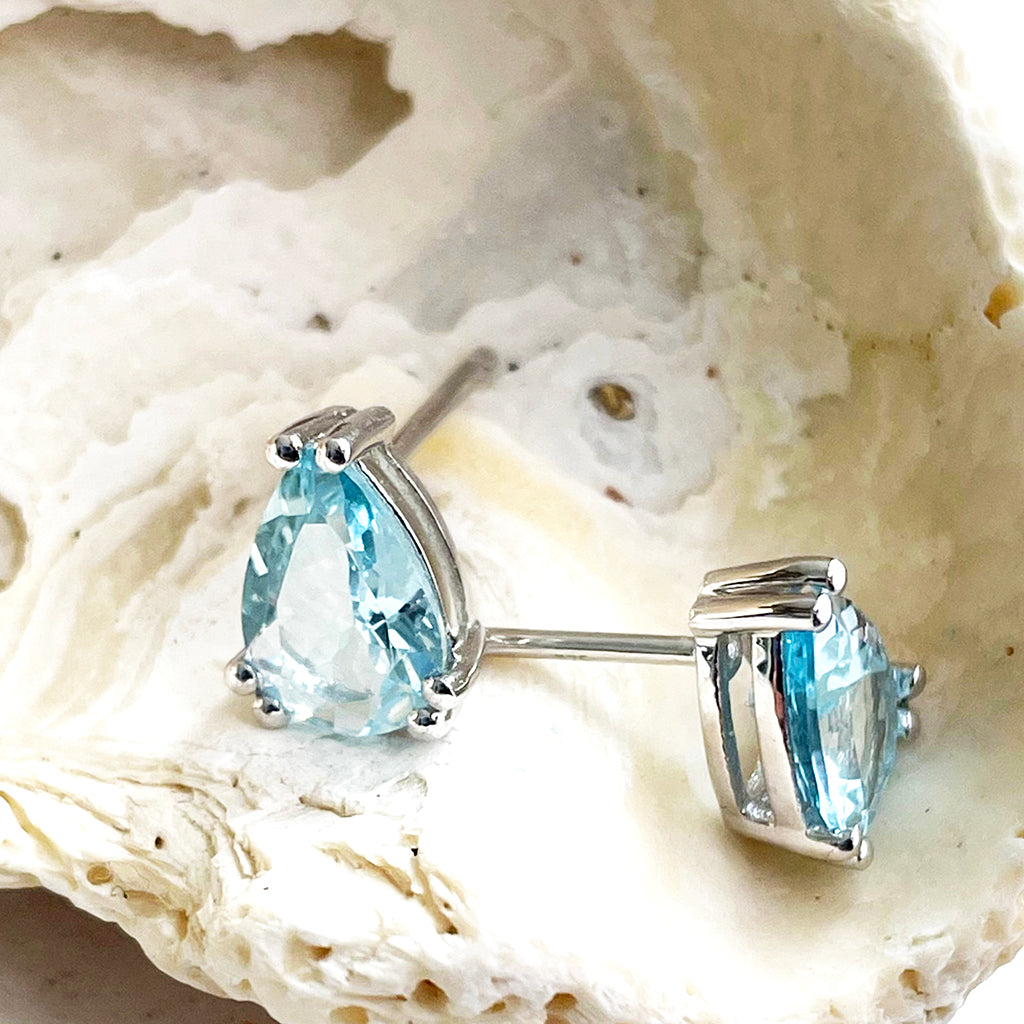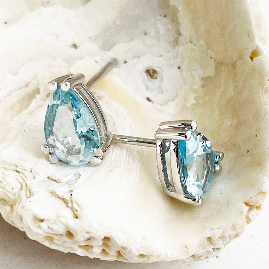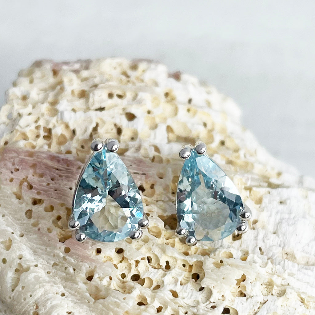 Double Claw Aquamarine Pear Cut White Gold Studs