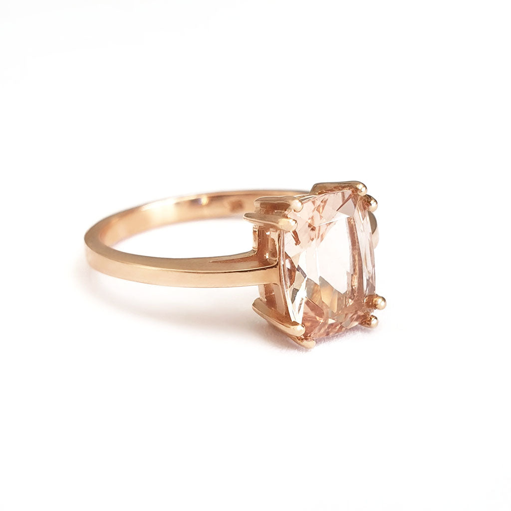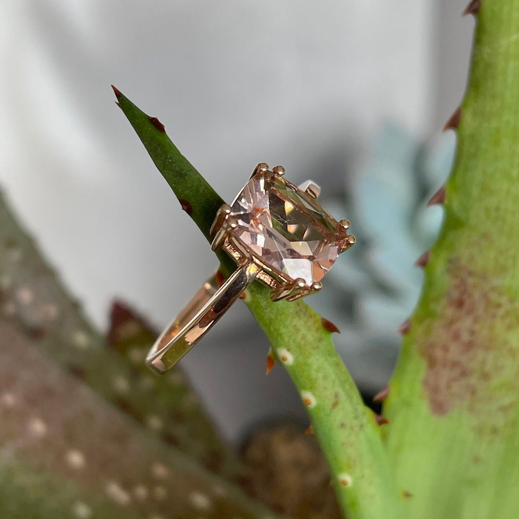 Double Claw Cushion Cut Morganite Rose Gold Ring