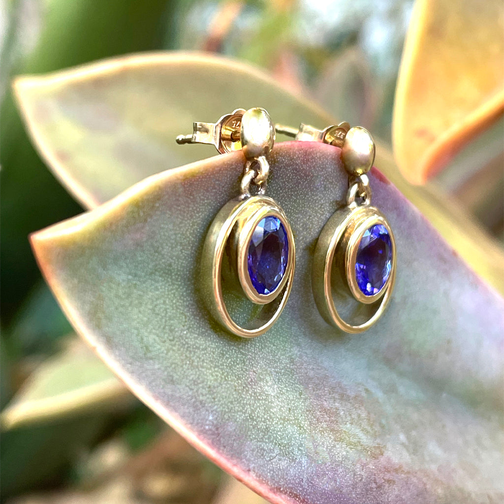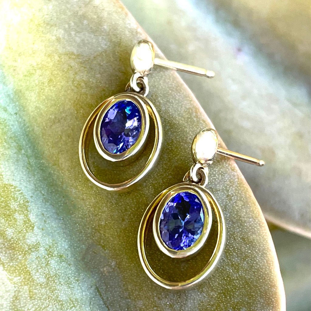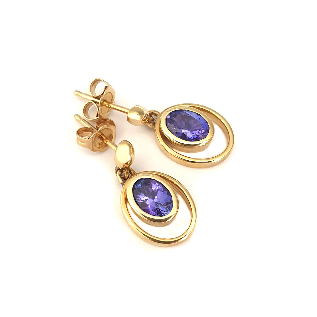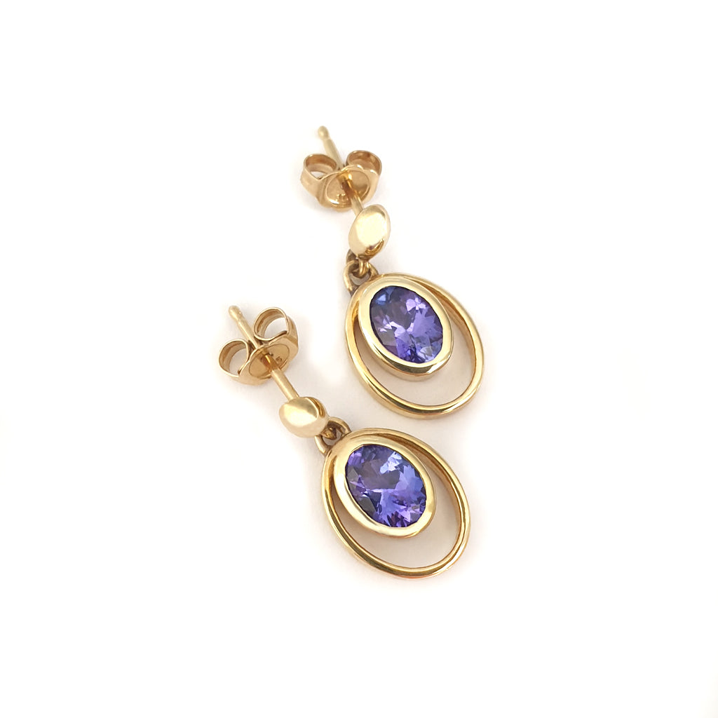 Double Hoop Oval Cut Bezel Set Tanzanite Drop Earrings