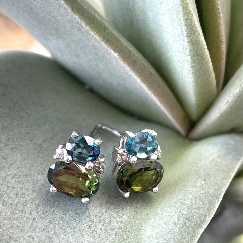 Double Oval Cut Blue Green and Green Tourmaline Earrings