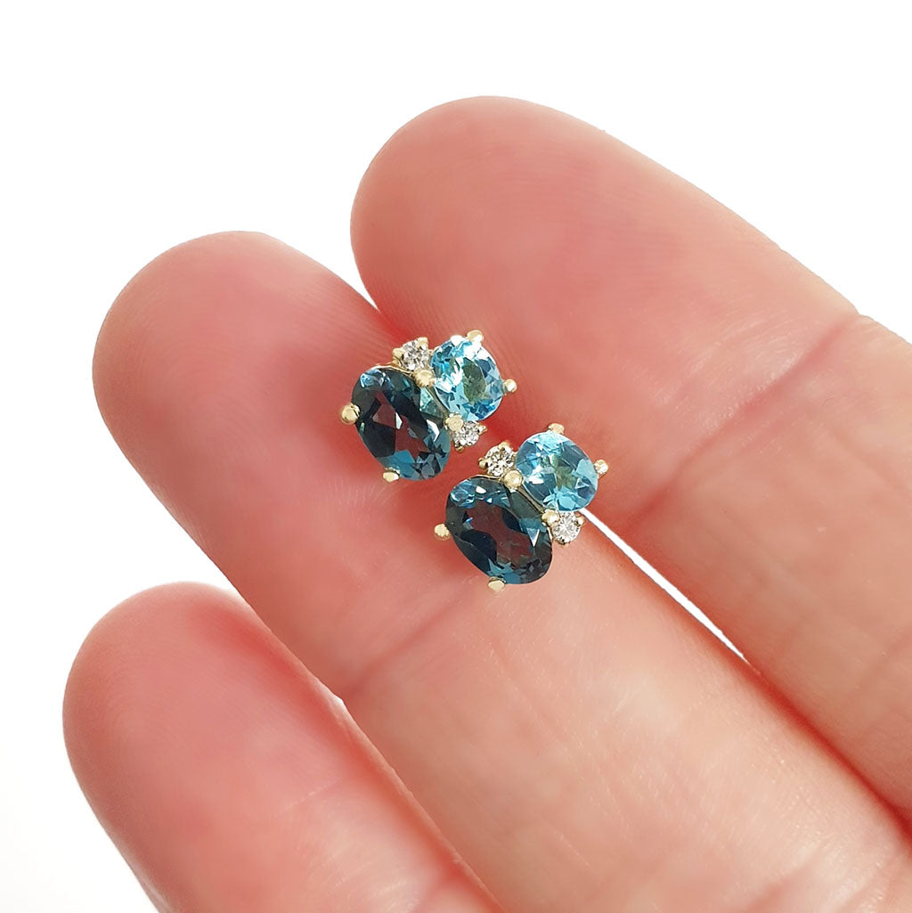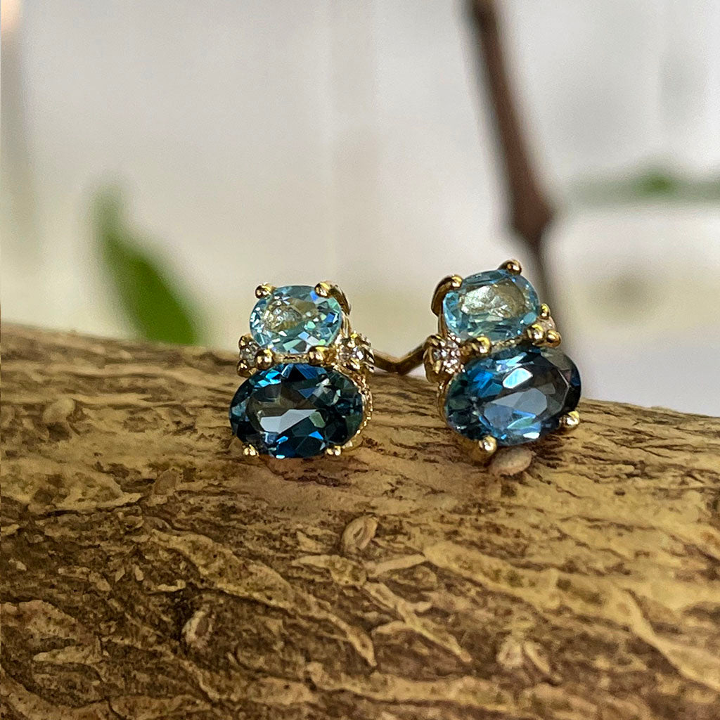 Double Oval Cut London Blue and Blue Topaz Earrings