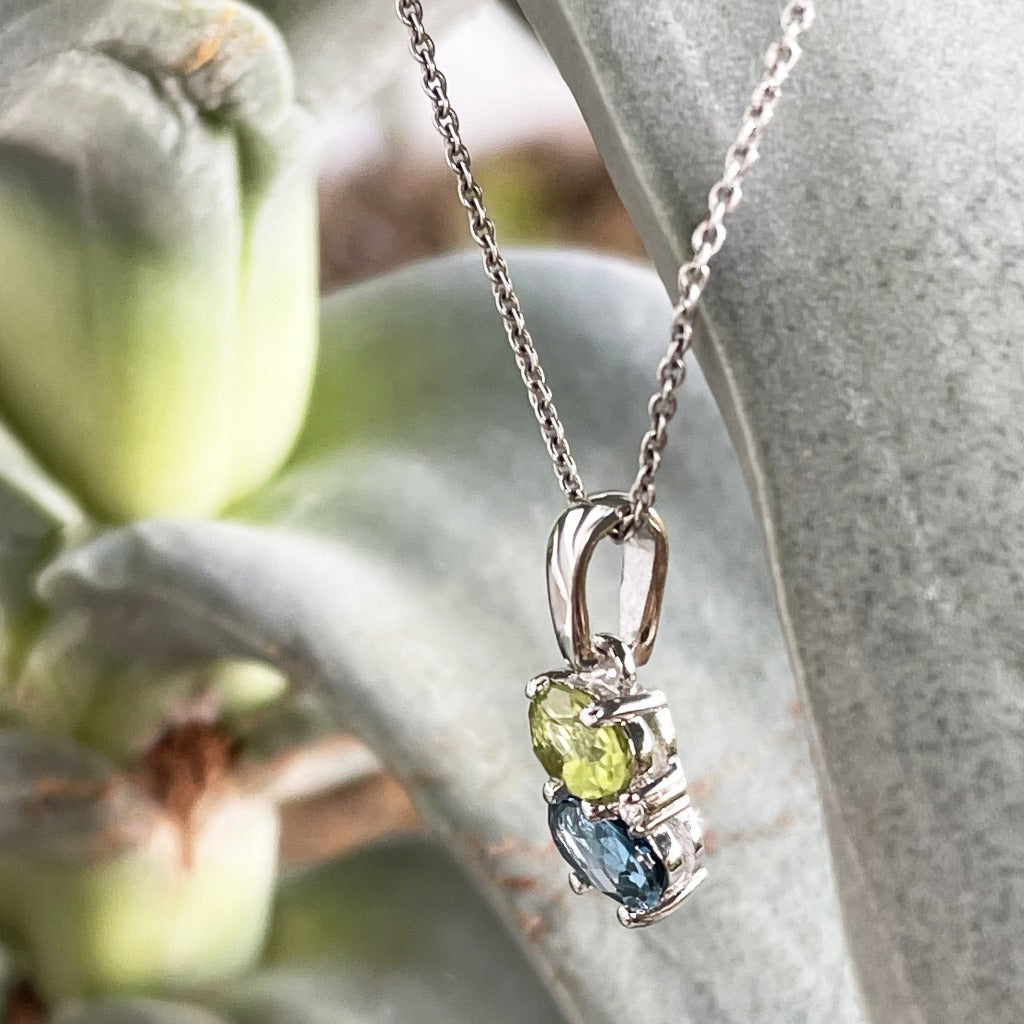 Double Oval Peridot and London Blue Topaz Pendant with Diamond Highlight