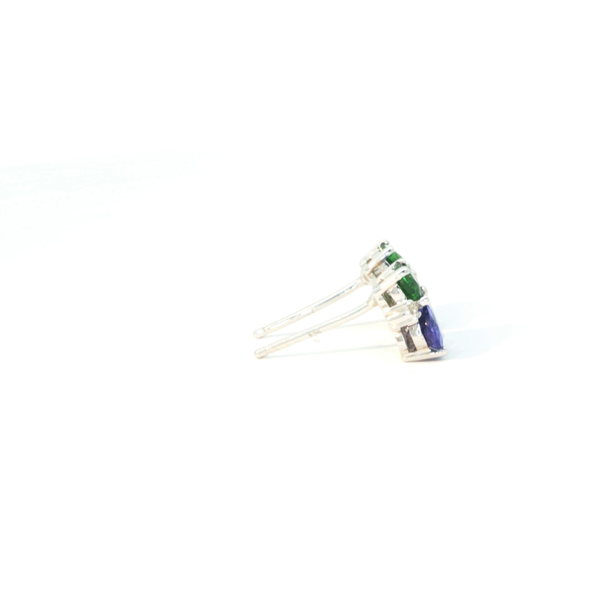 Double Oval Tsavorite and Tanzanite Earrings with Diamond Highlights