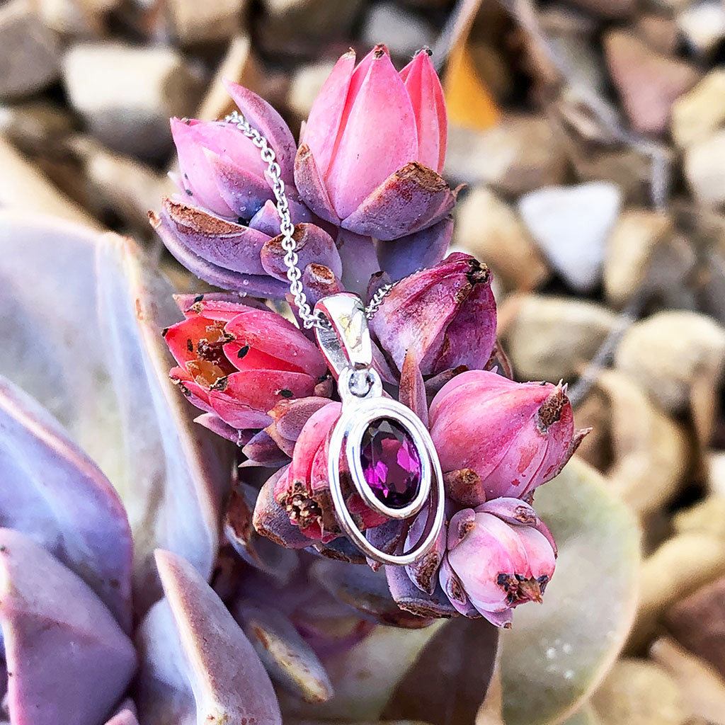 Double White Gold Oval Grape Garnet Pendant