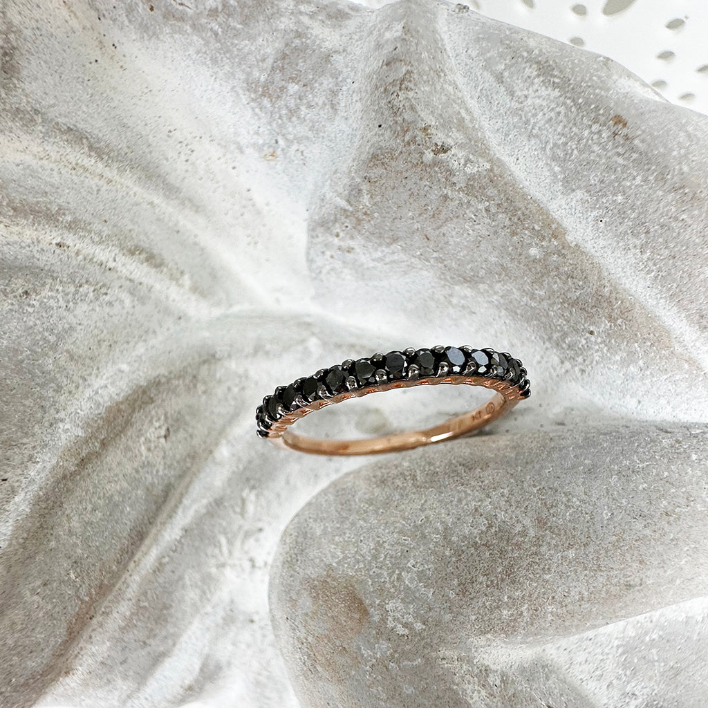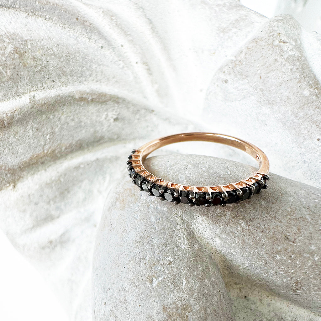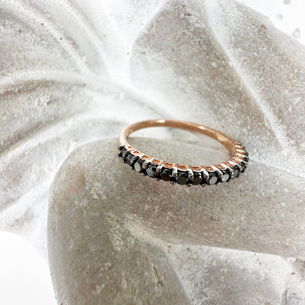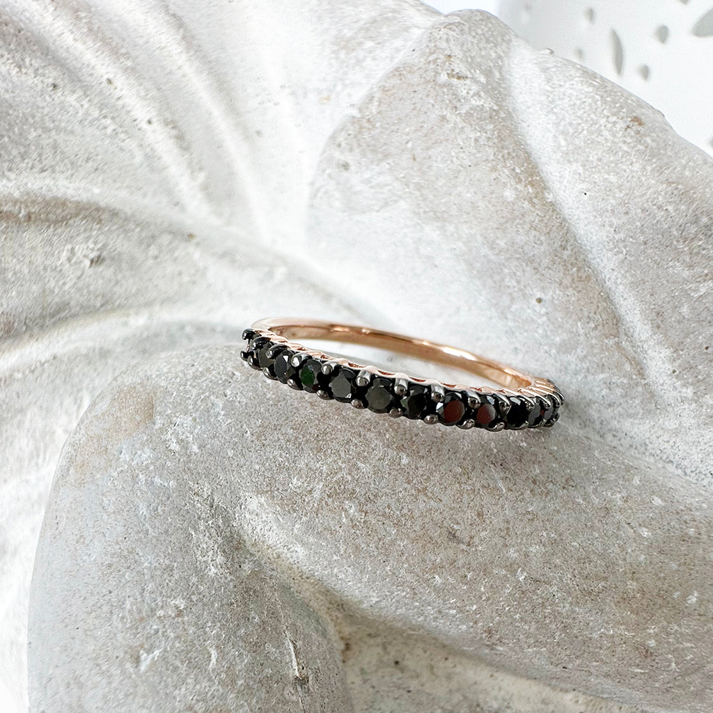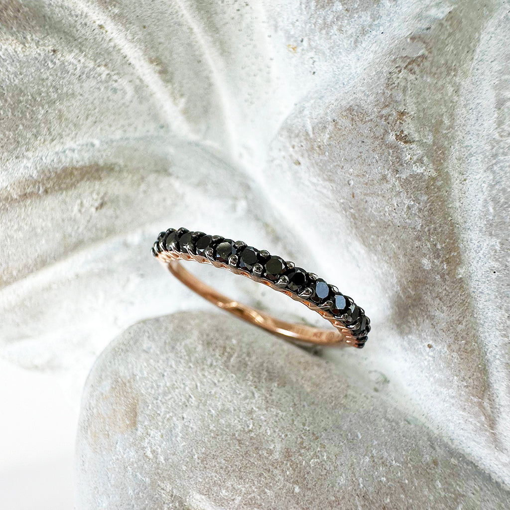 Dramatic Eternity Styled Black Diamond with Black Claws Rose Gold Ring