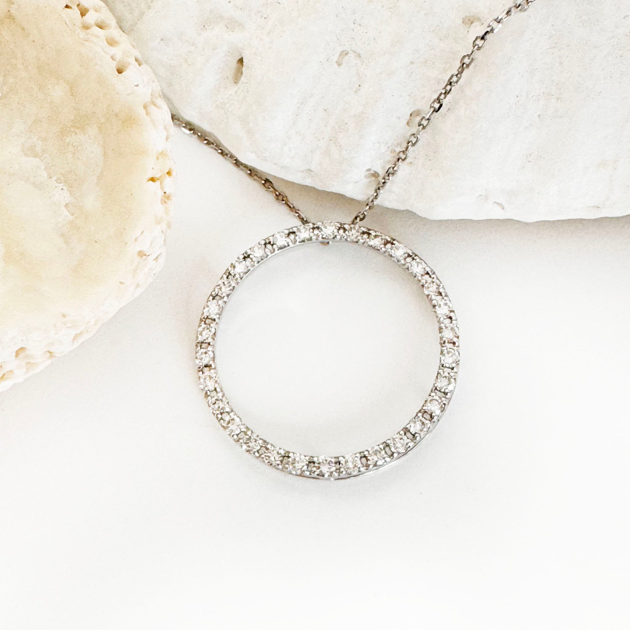 Elegance Defined White Diamond in White Gold Halo Pendant