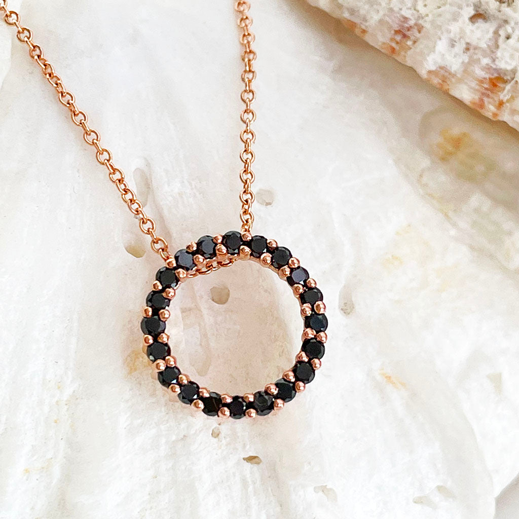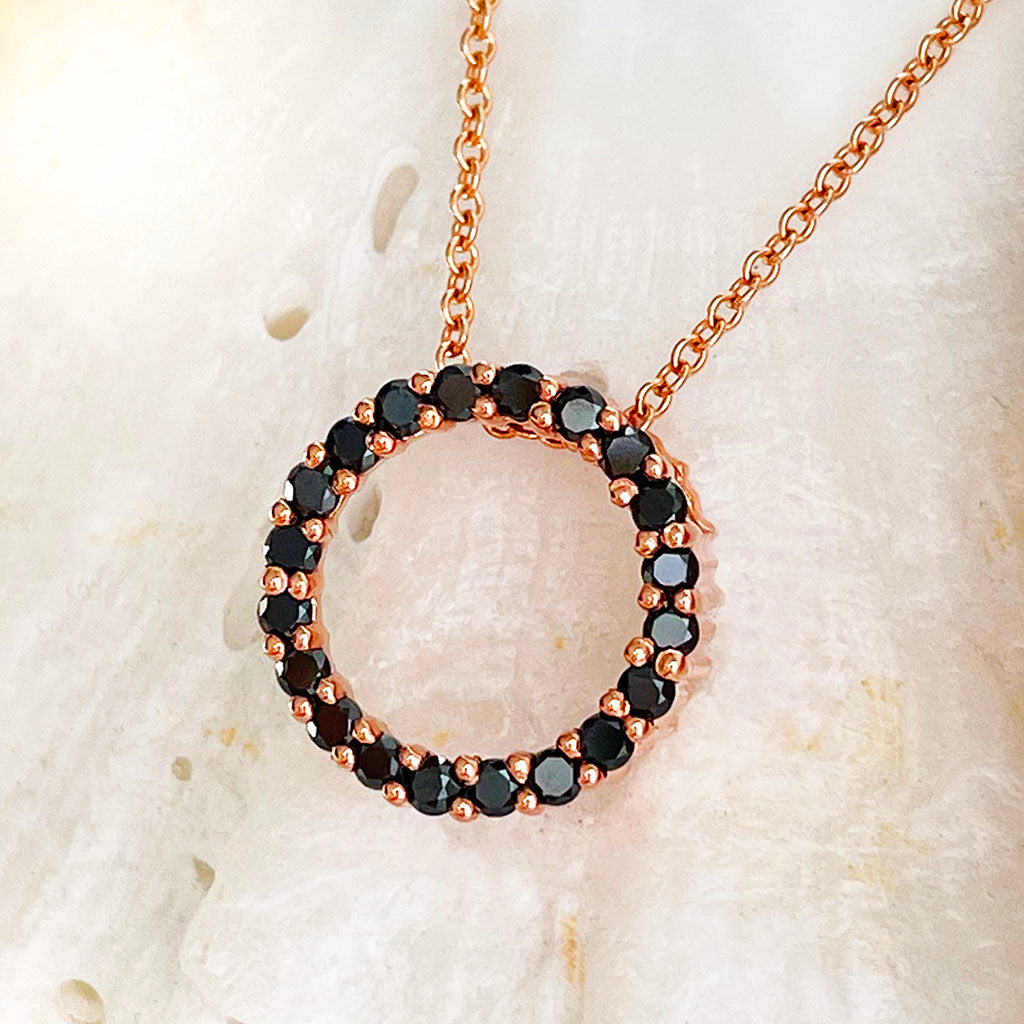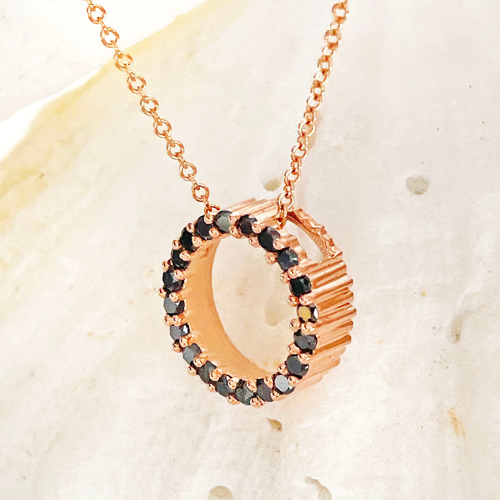Elegance Is Rose Gold Black Diamond Halo Pendant