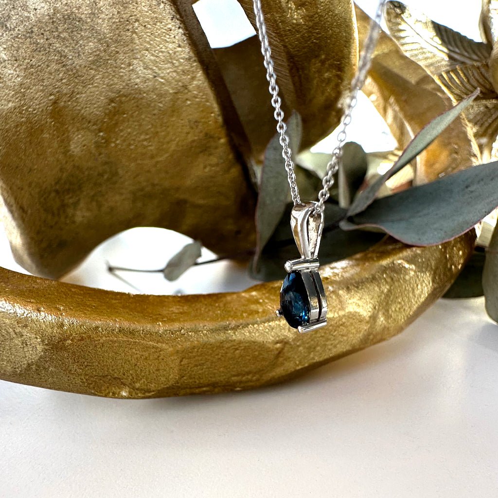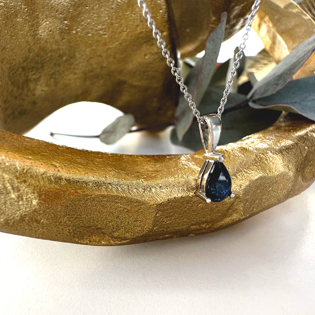 Elegant Claw Set Pear Cut Sapphire White Gold Pendant