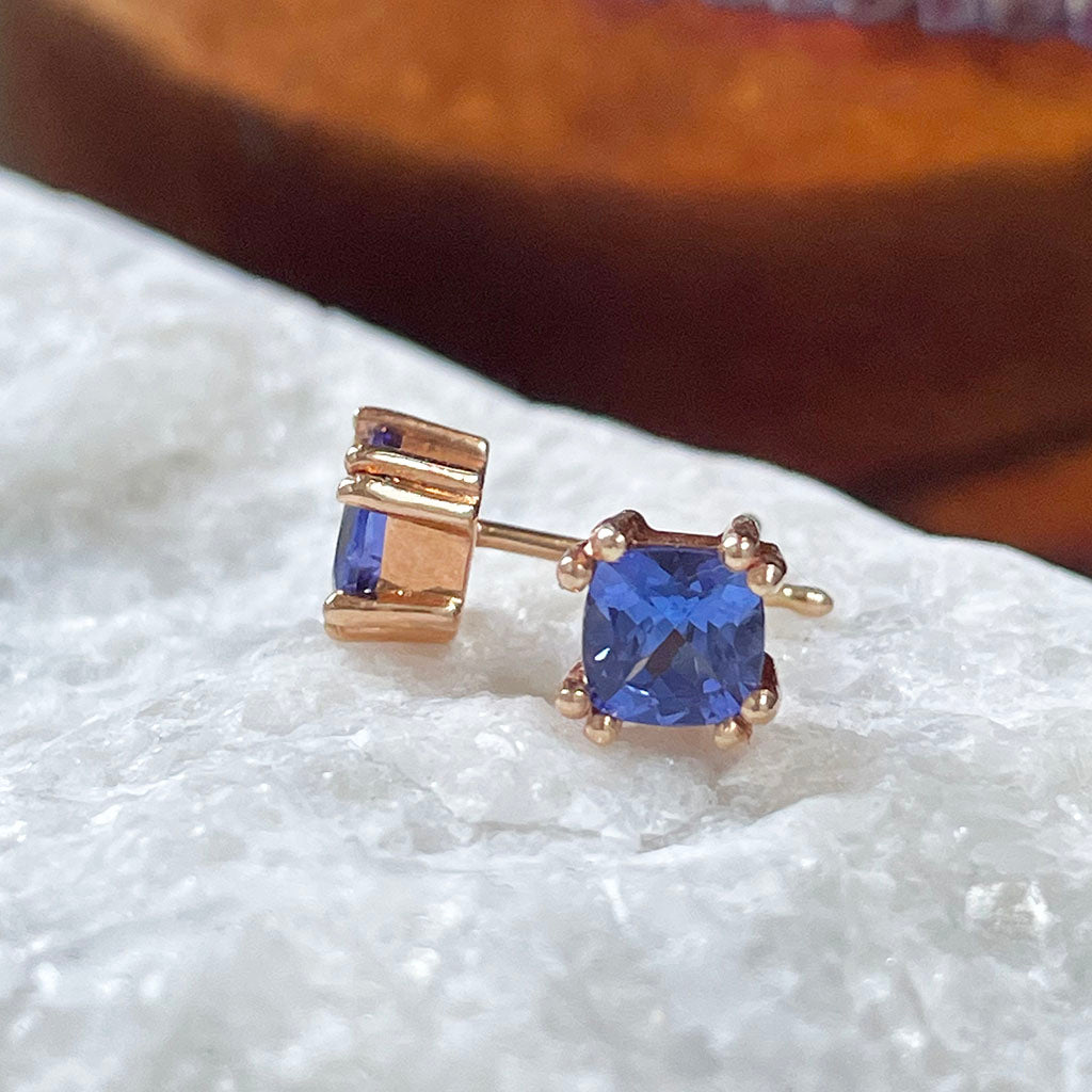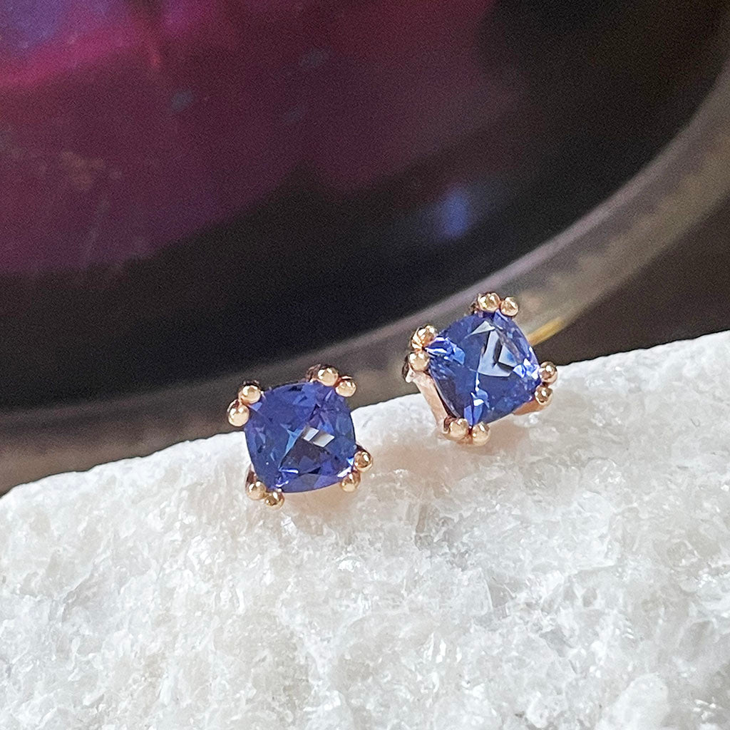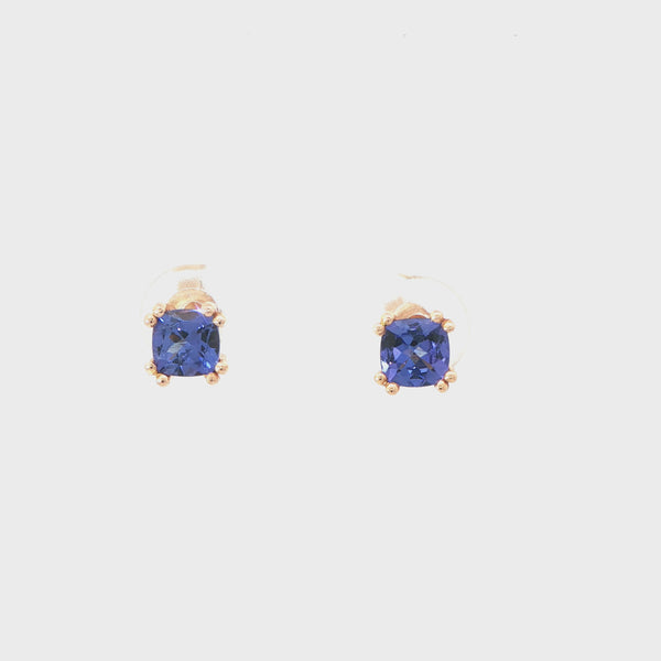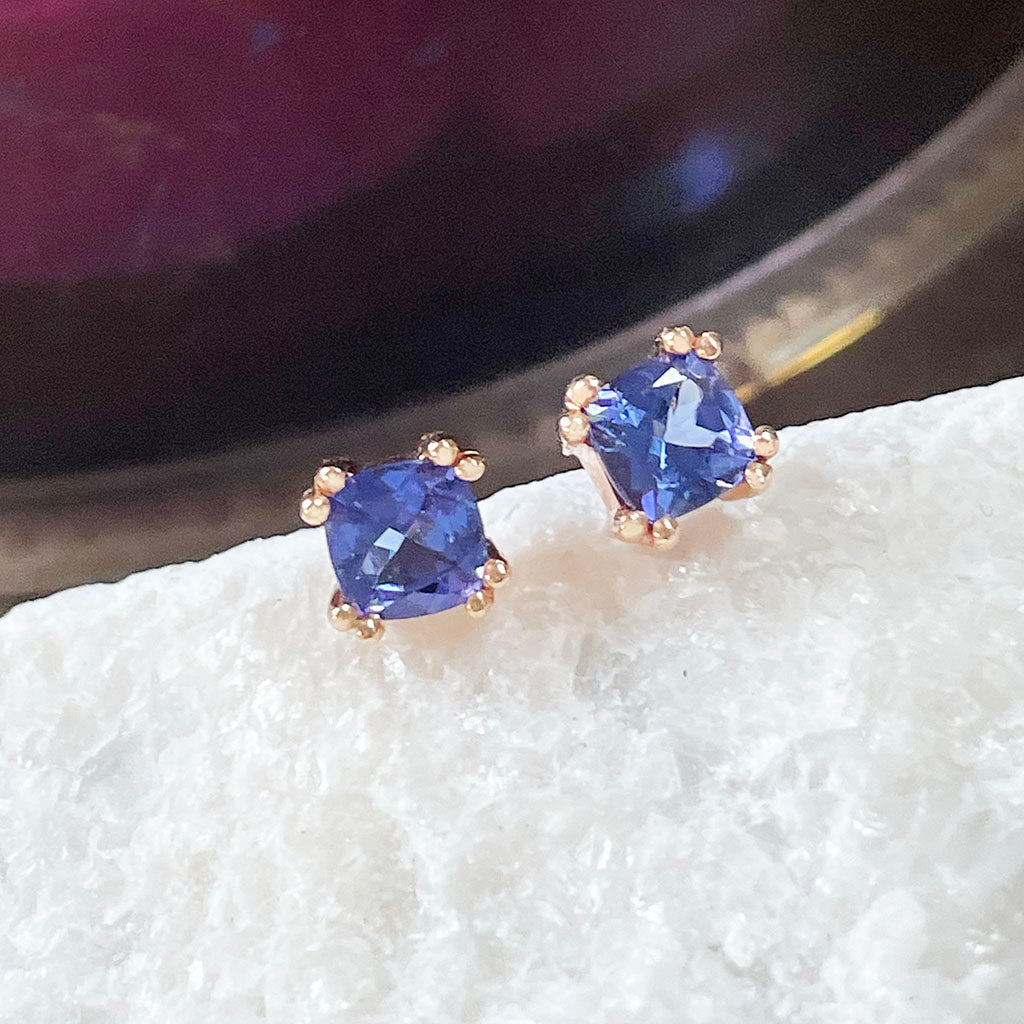 Elegant Double Claw Cushion Cut Rose Gold Tanzanite Studs