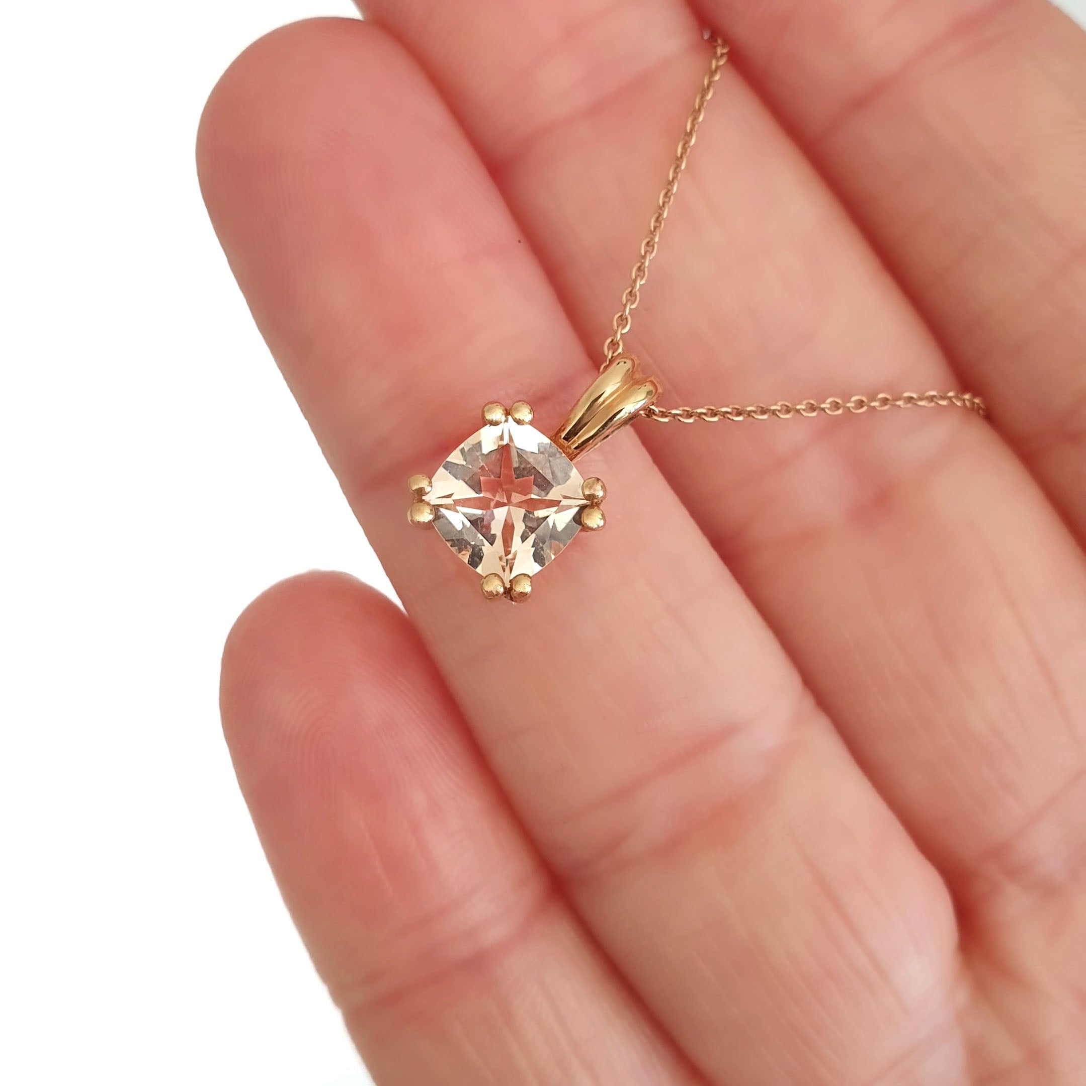 Elegant Morganite Cushion Cut Double Claw Pendant