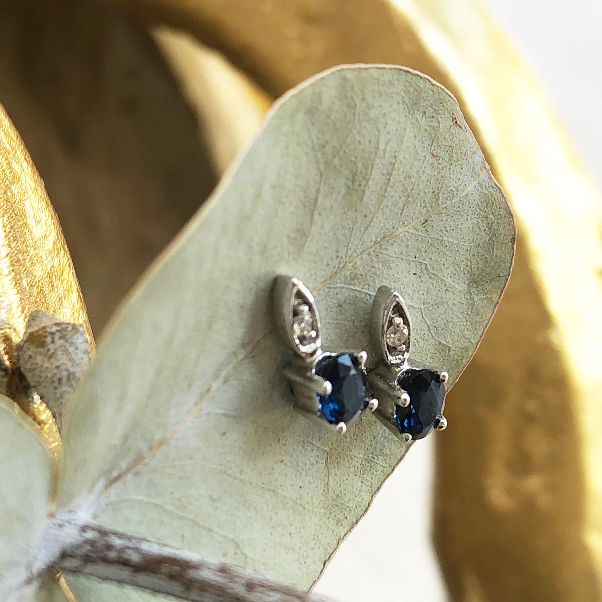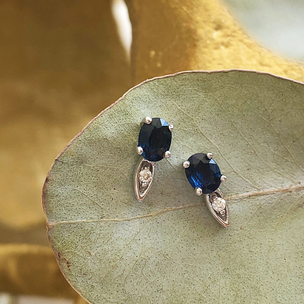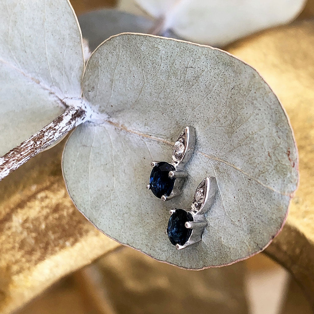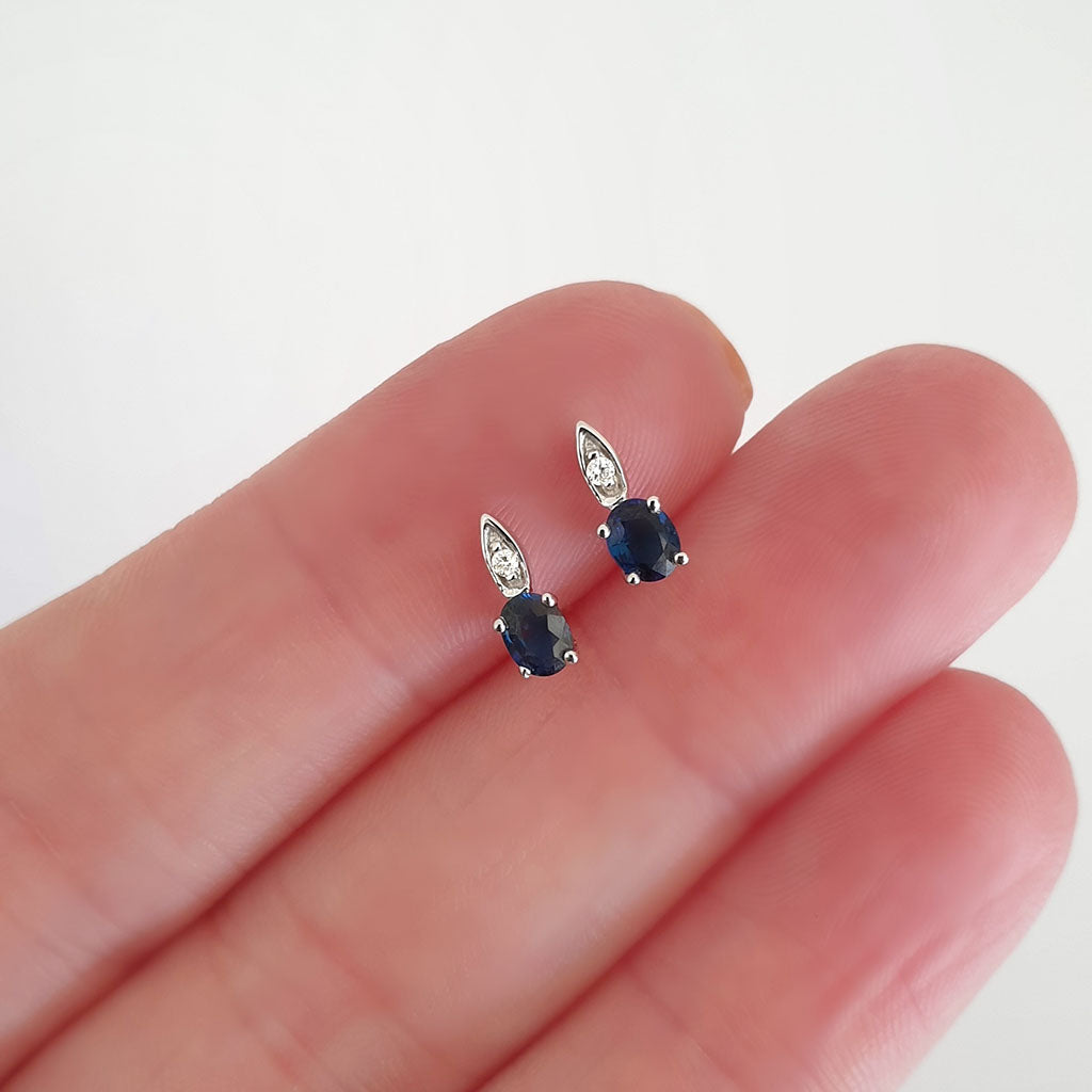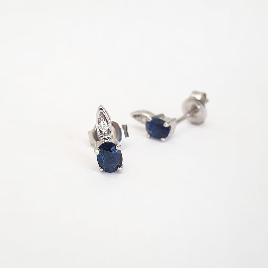 Elegant Oval Blue Sapphire and Diamond Studs