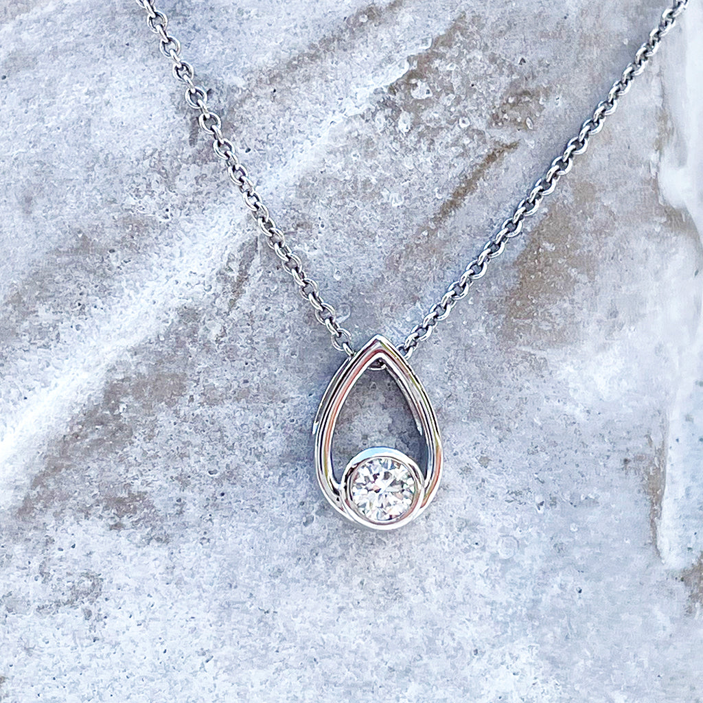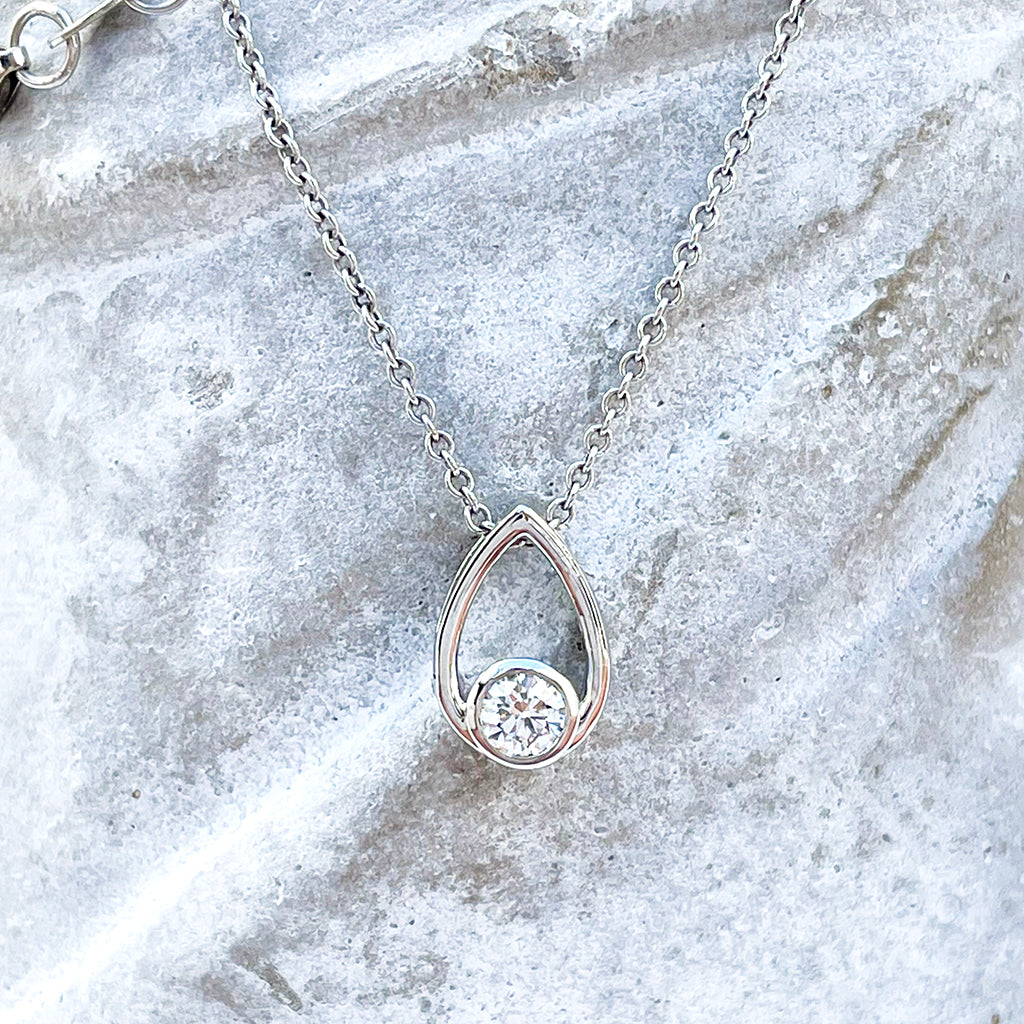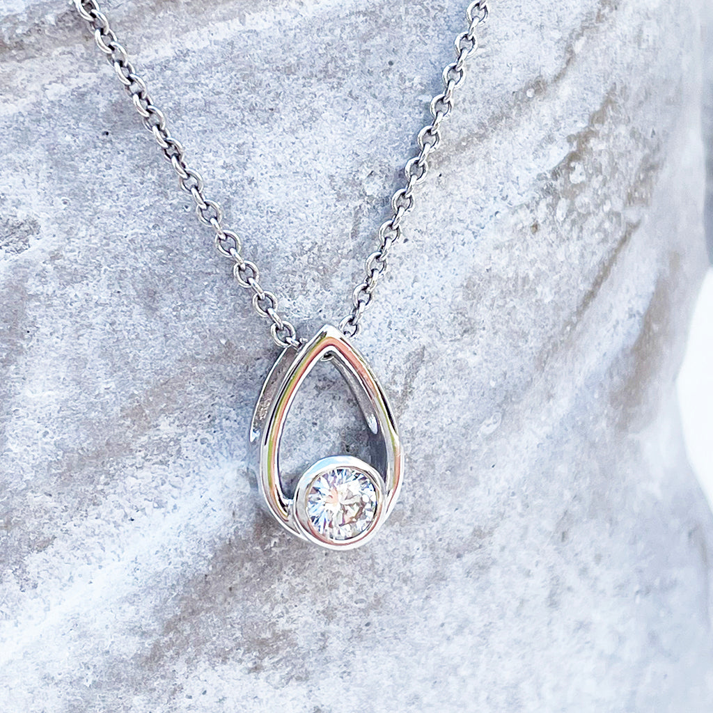 Elegant Petite White Diamond Droplet Pendant