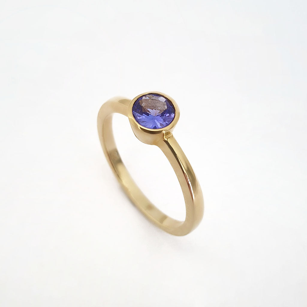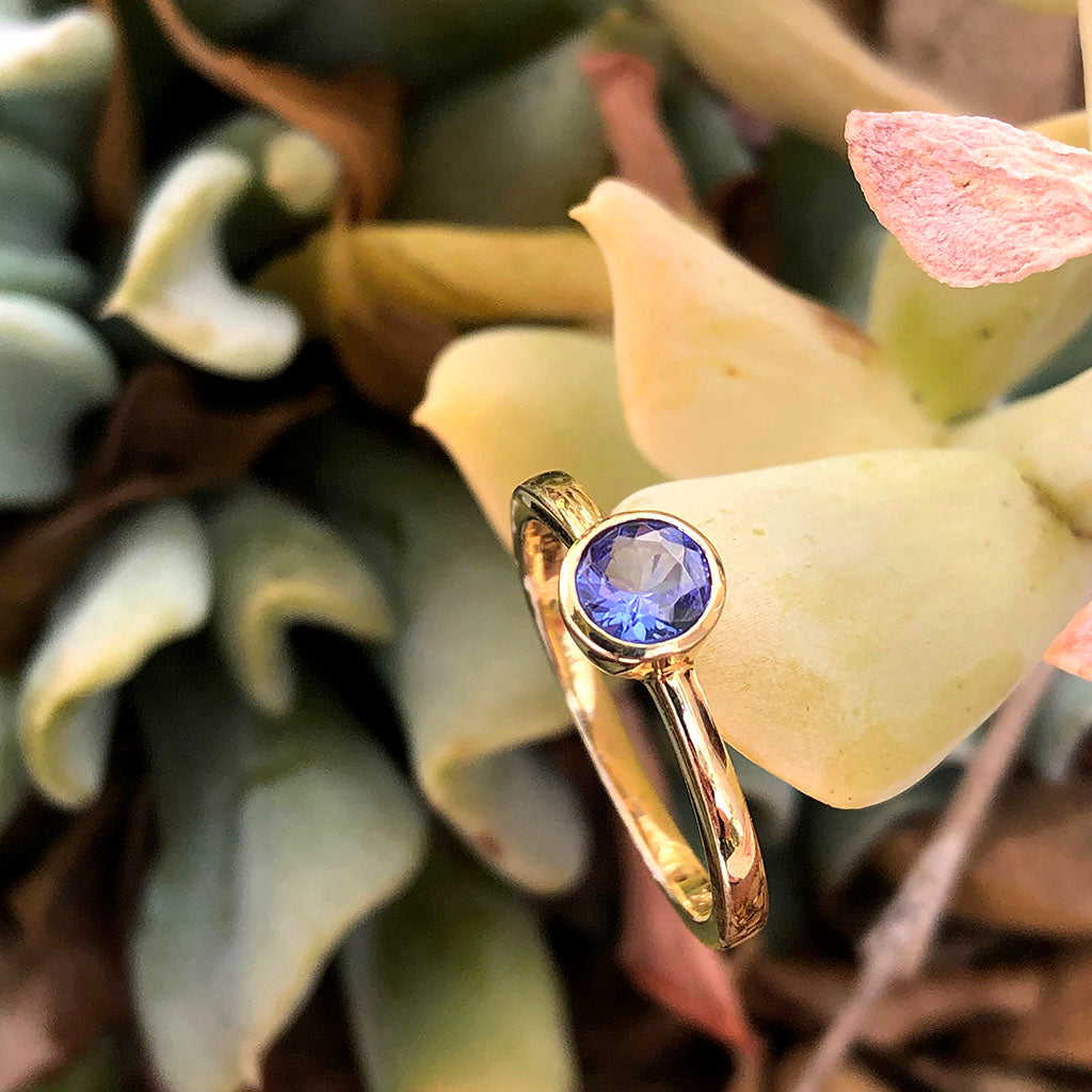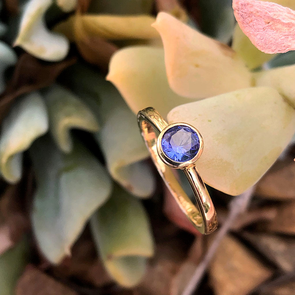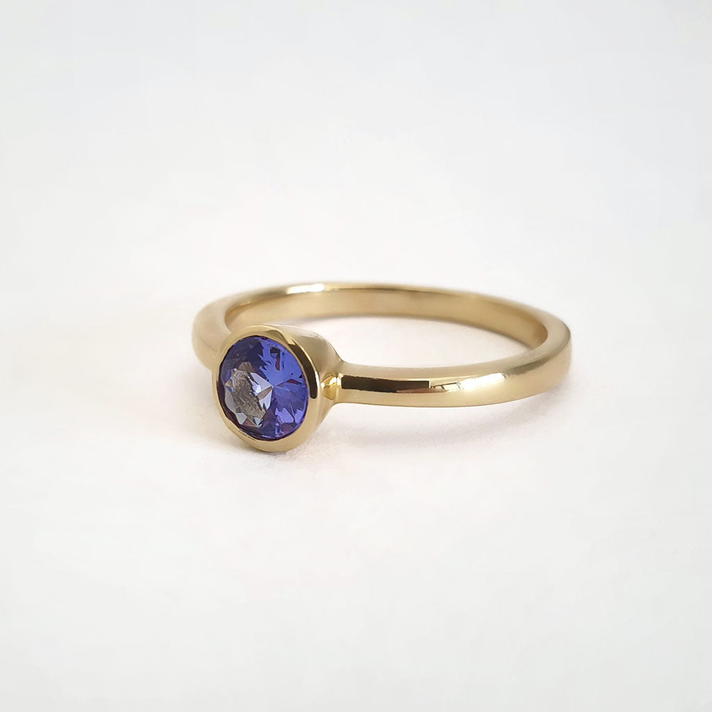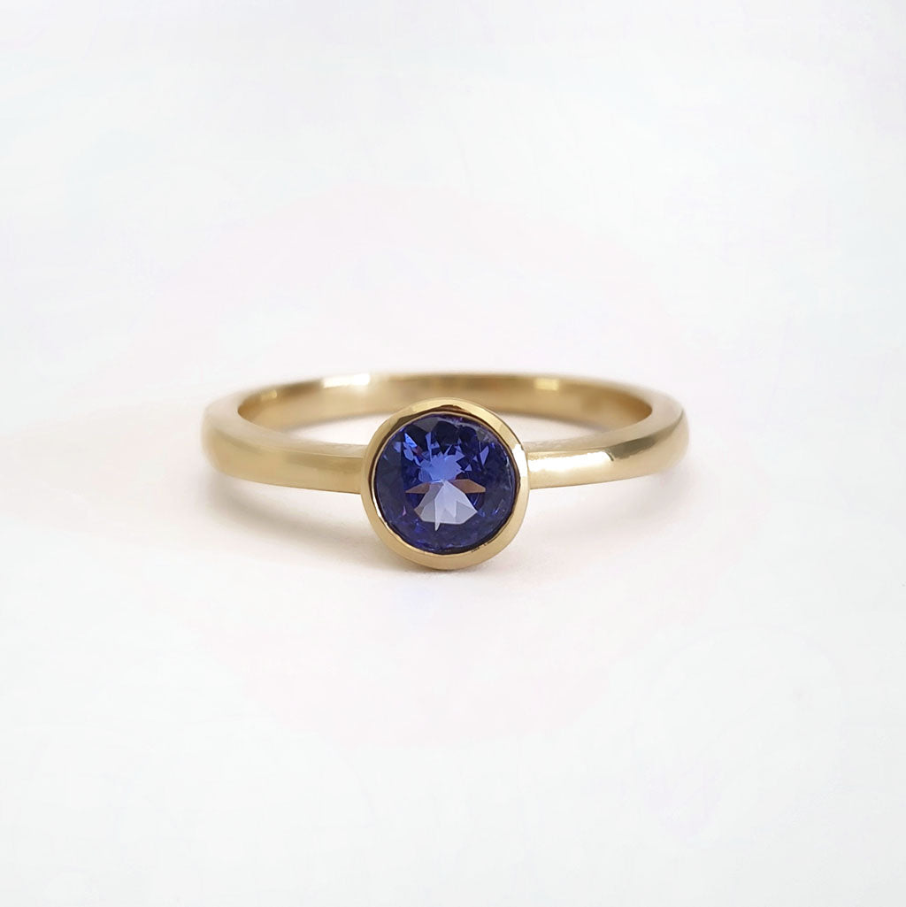Elegant Round Cut Bezel Set Solitaire Tanzanite Ring