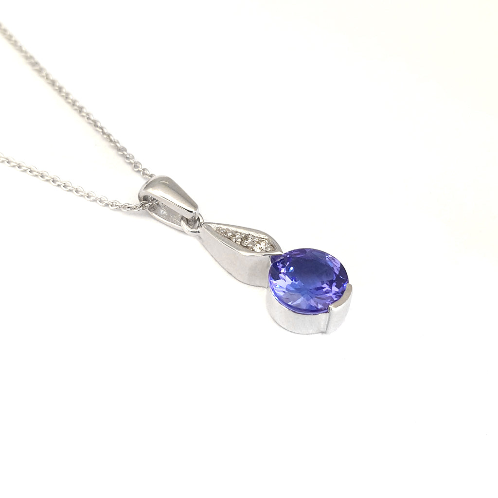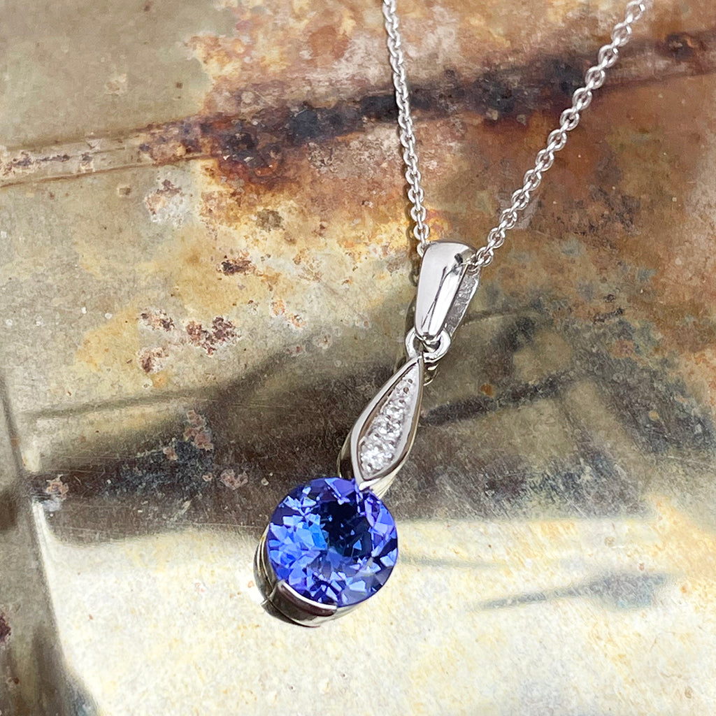 Elegant Round Tanzanite with Diamond Droplet Pendant