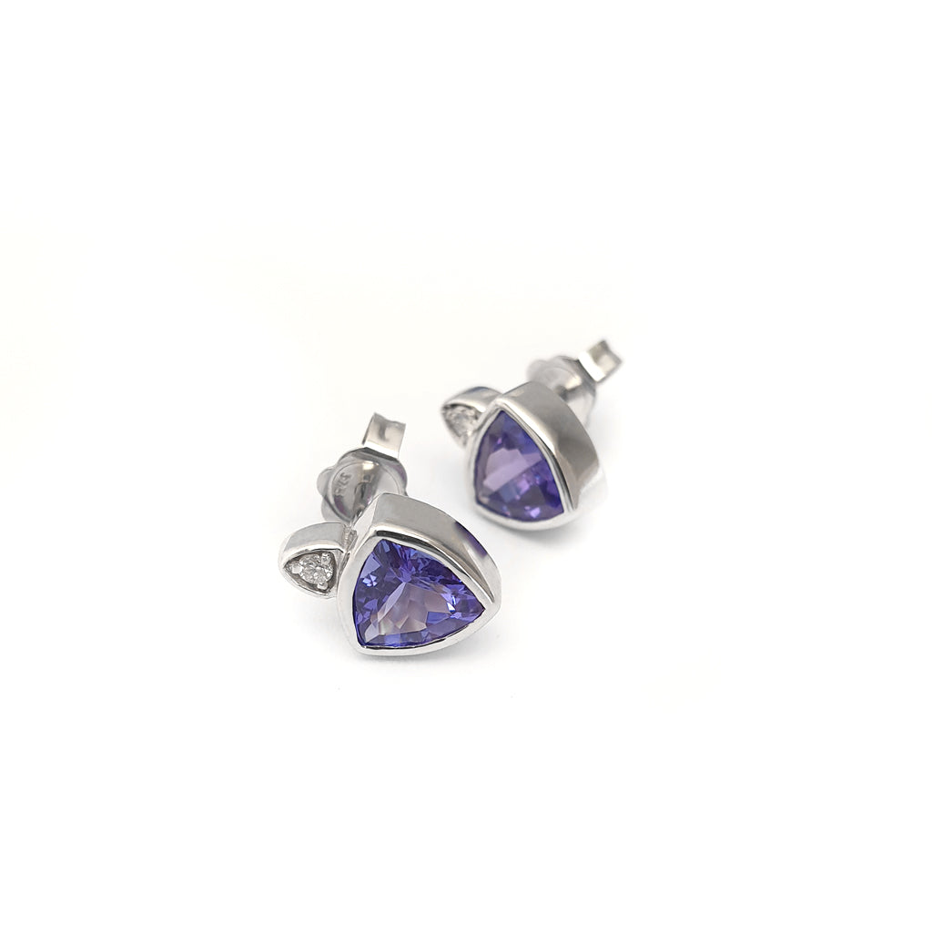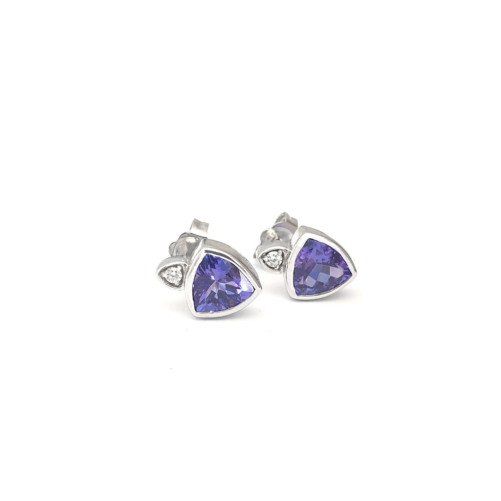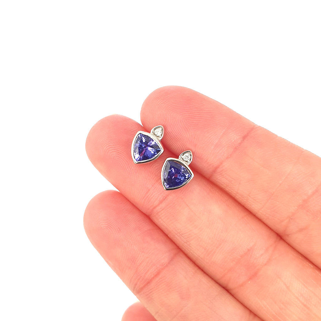 Elegant Trilliant Bezel Set Tanzanite and White Diamond Studs