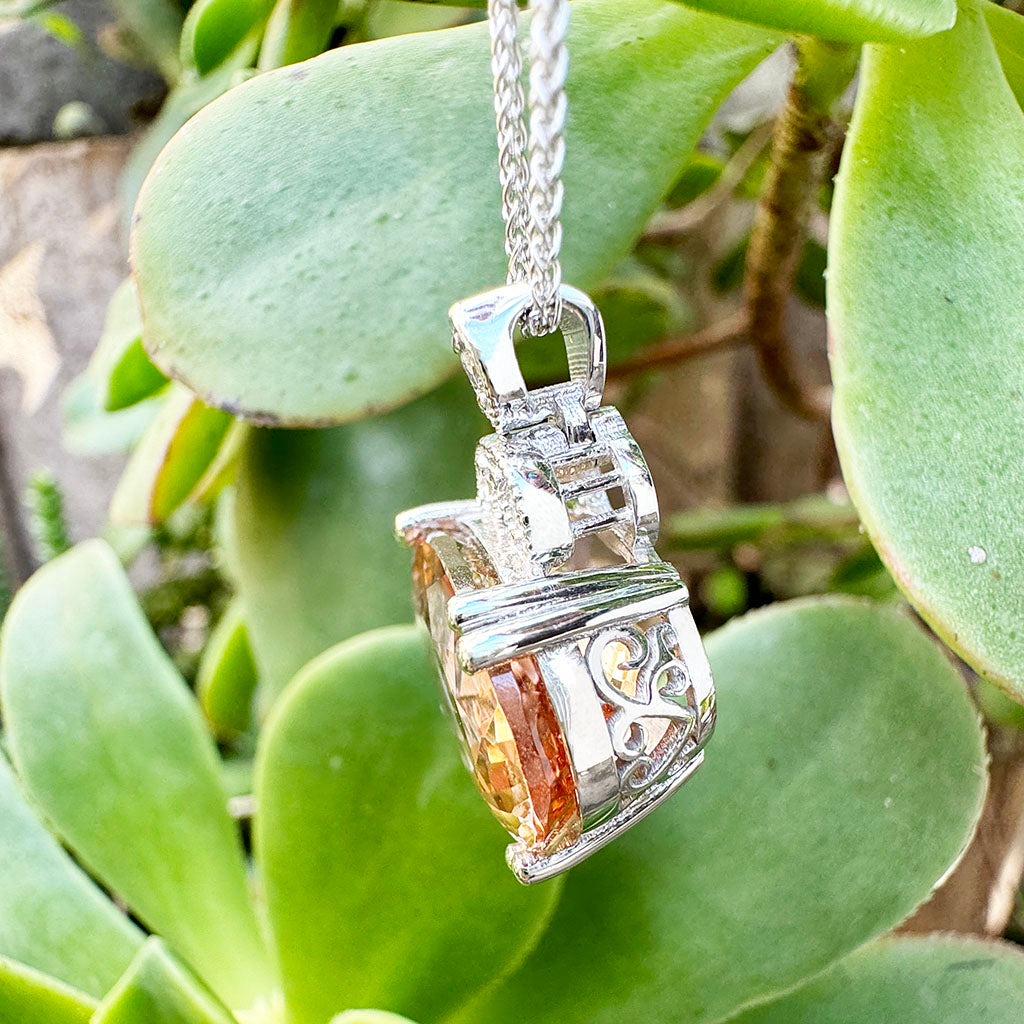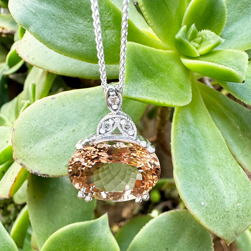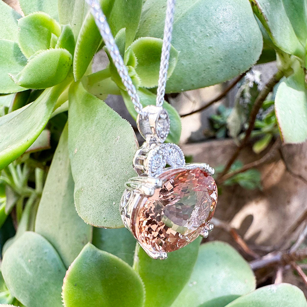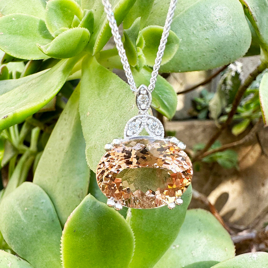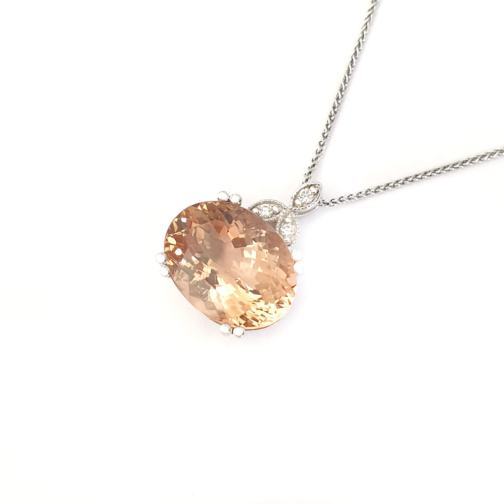 Elegantly Regal Peach Oval Morganite and Decorative Diamond Bale Pendant