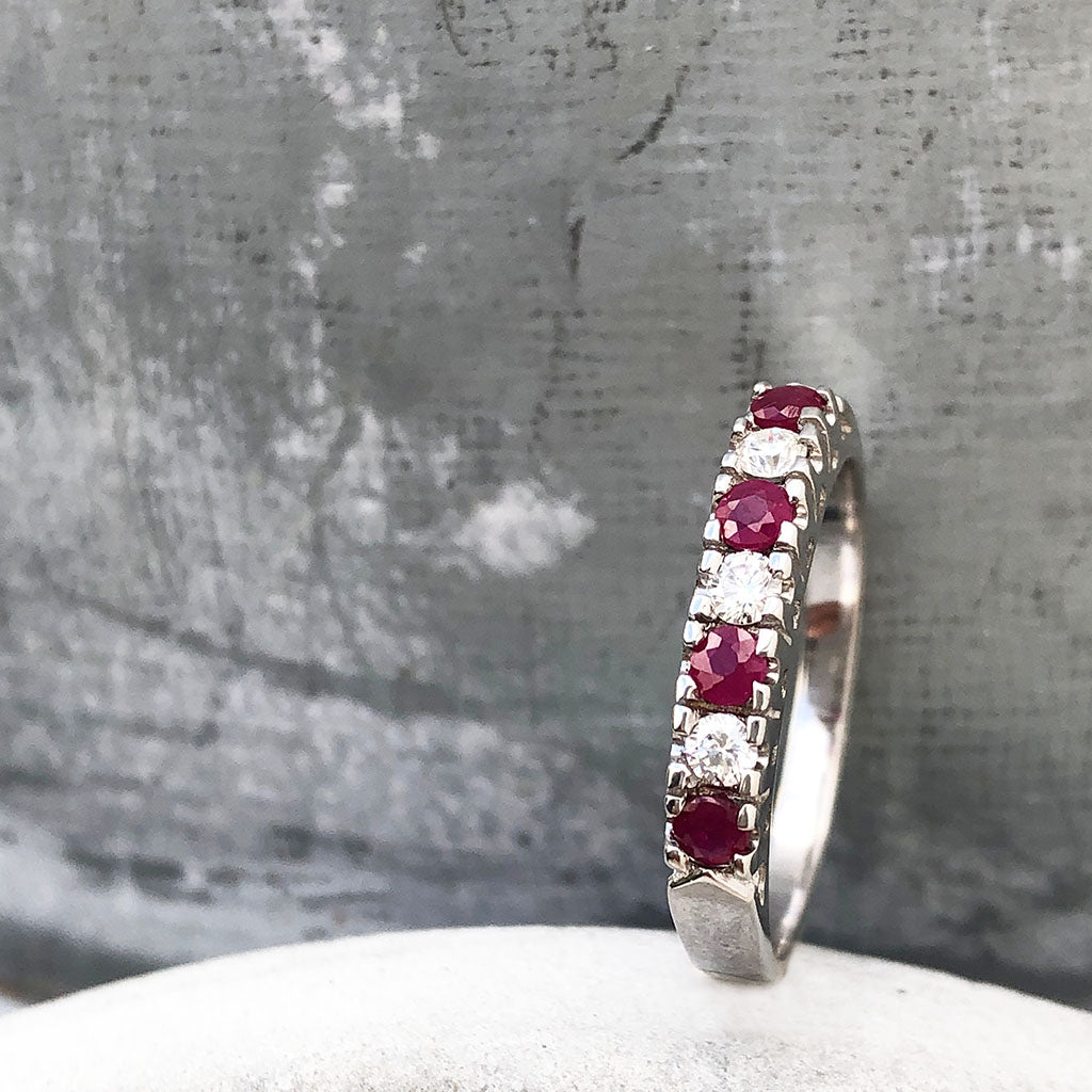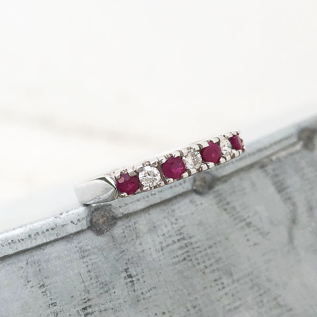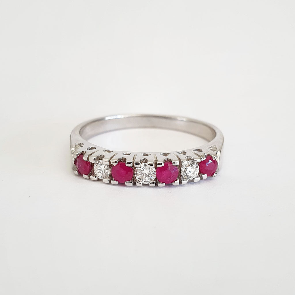 Contemporary Four Claw Ruby and Diamond White Gold Ring