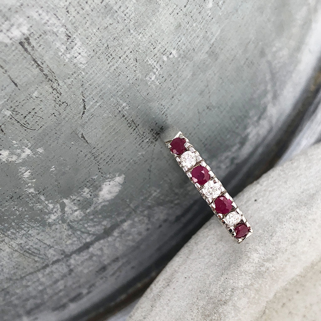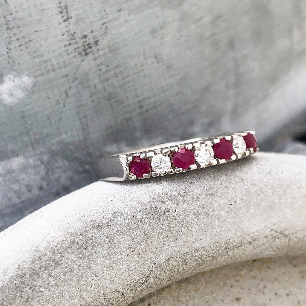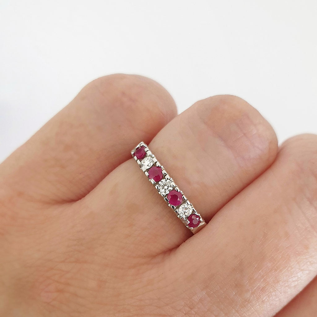 Contemporary Four Claw Ruby and Diamond White Gold Ring