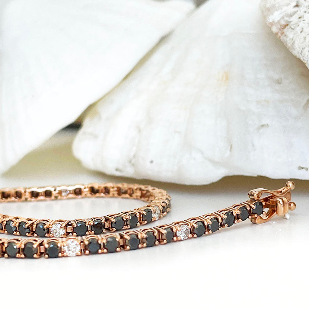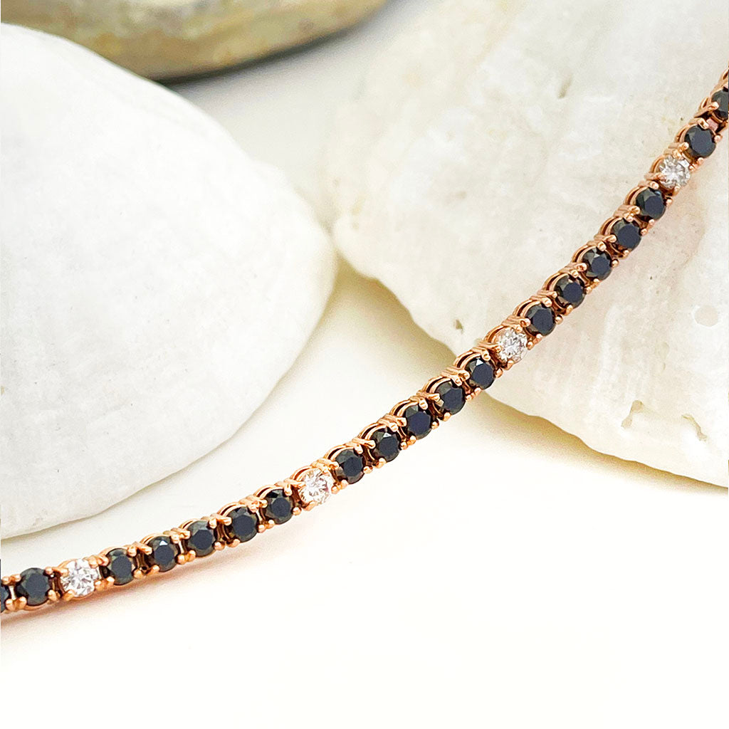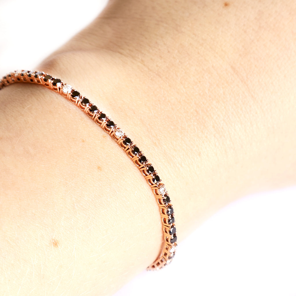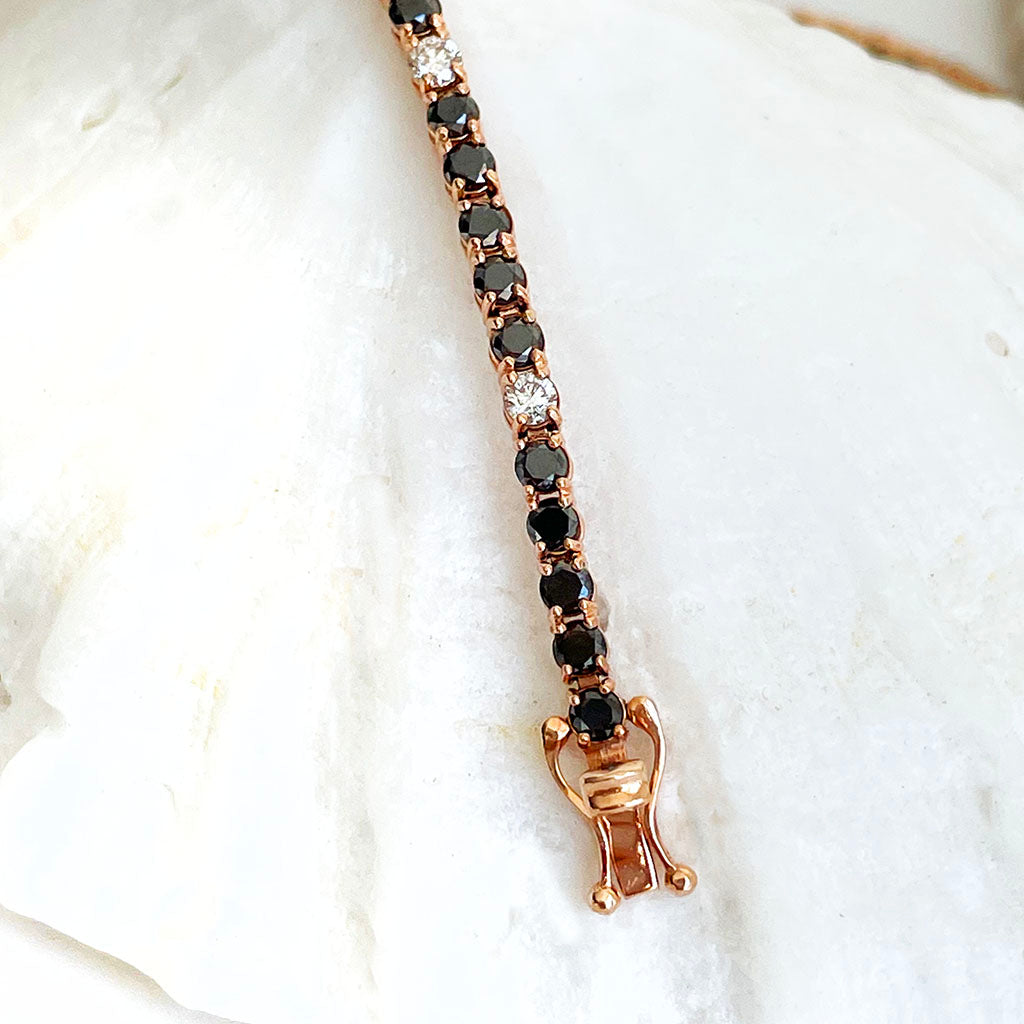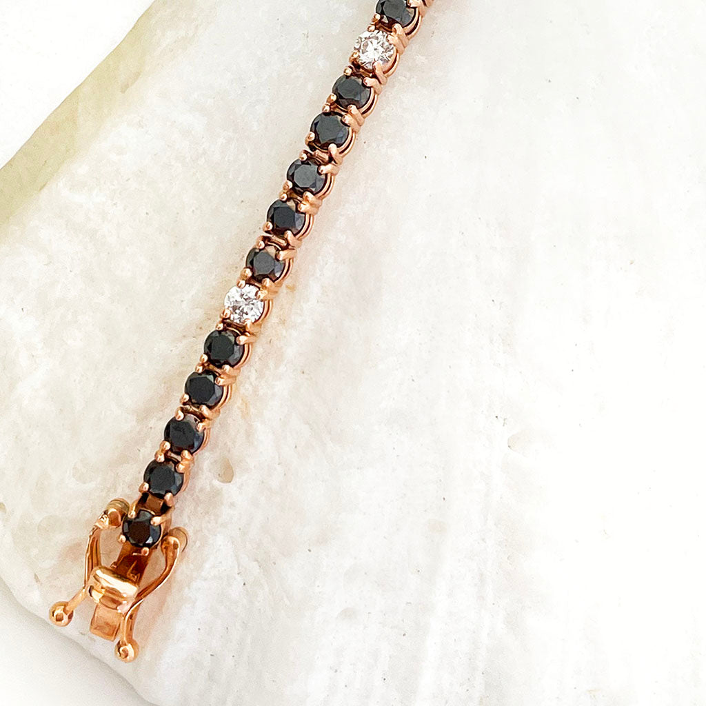 Elongated Black Diamond And Flashes of White Diamond Rose Gold Tennis Bracelet