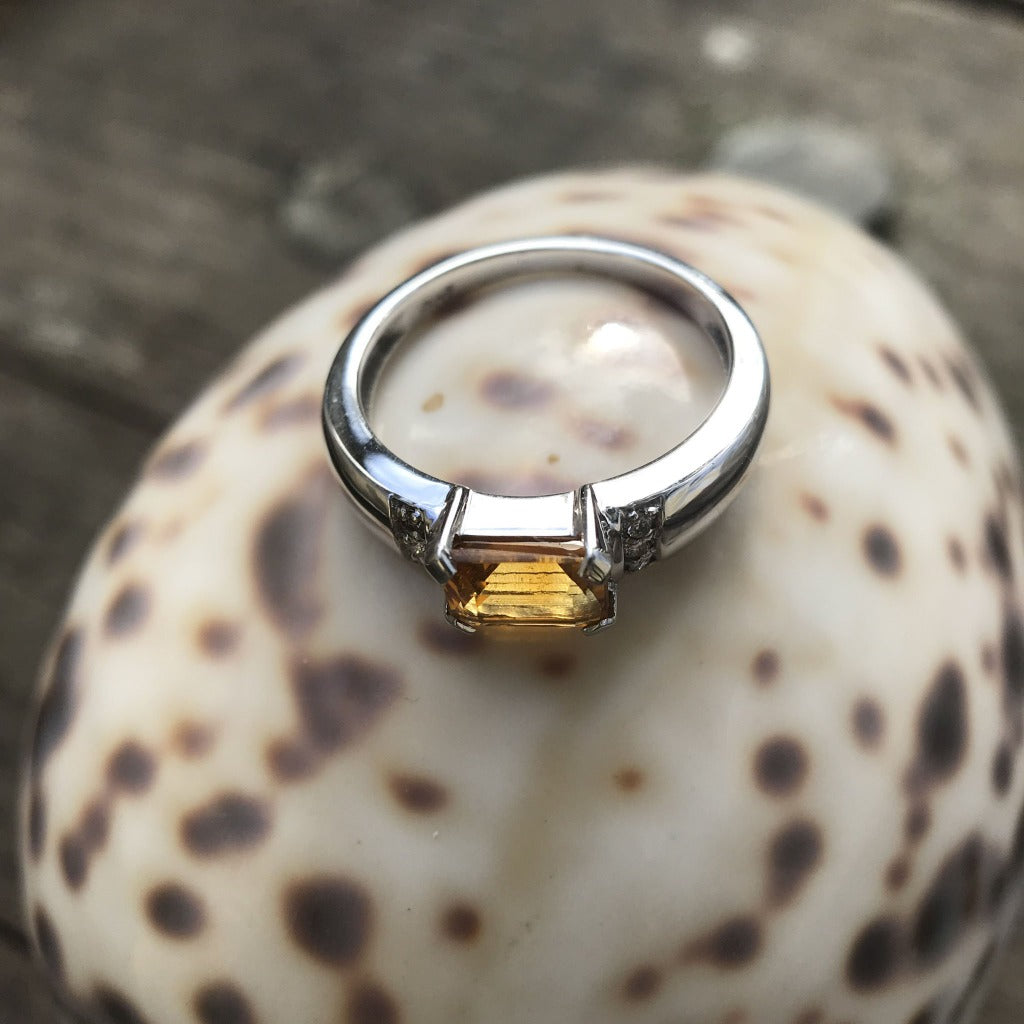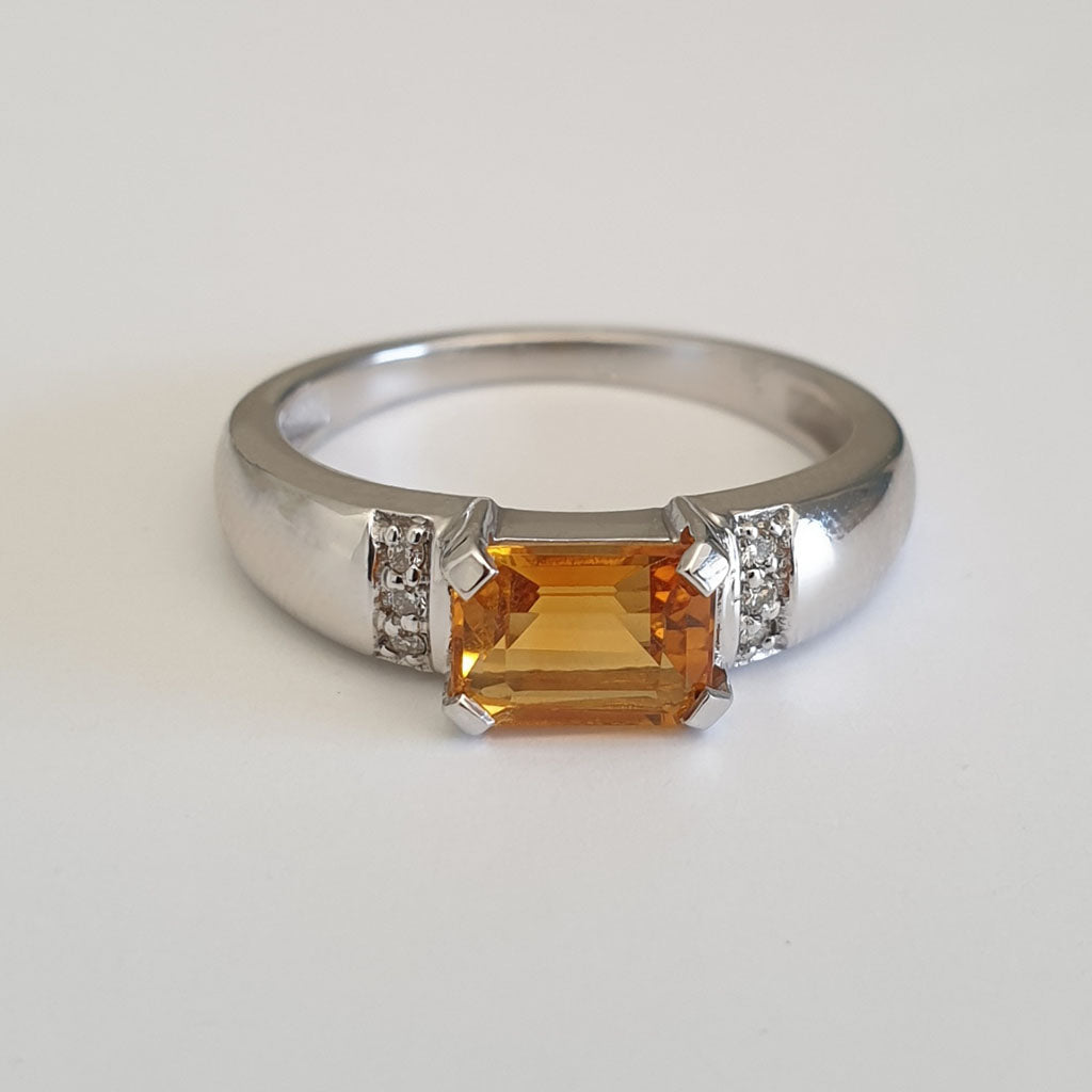 Emerald Cut Citrine Ring with Diamond Accent