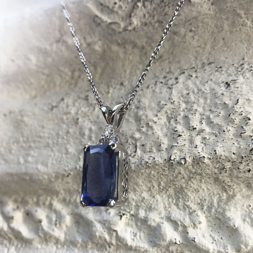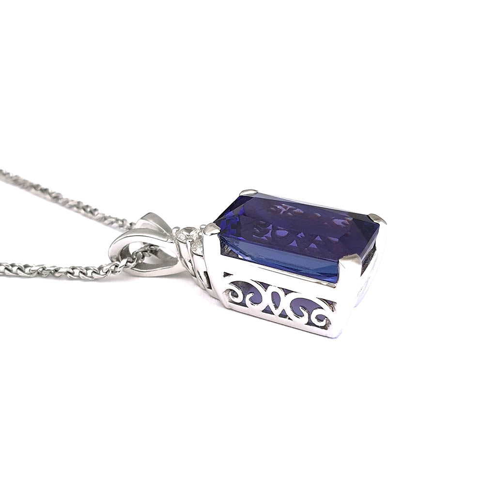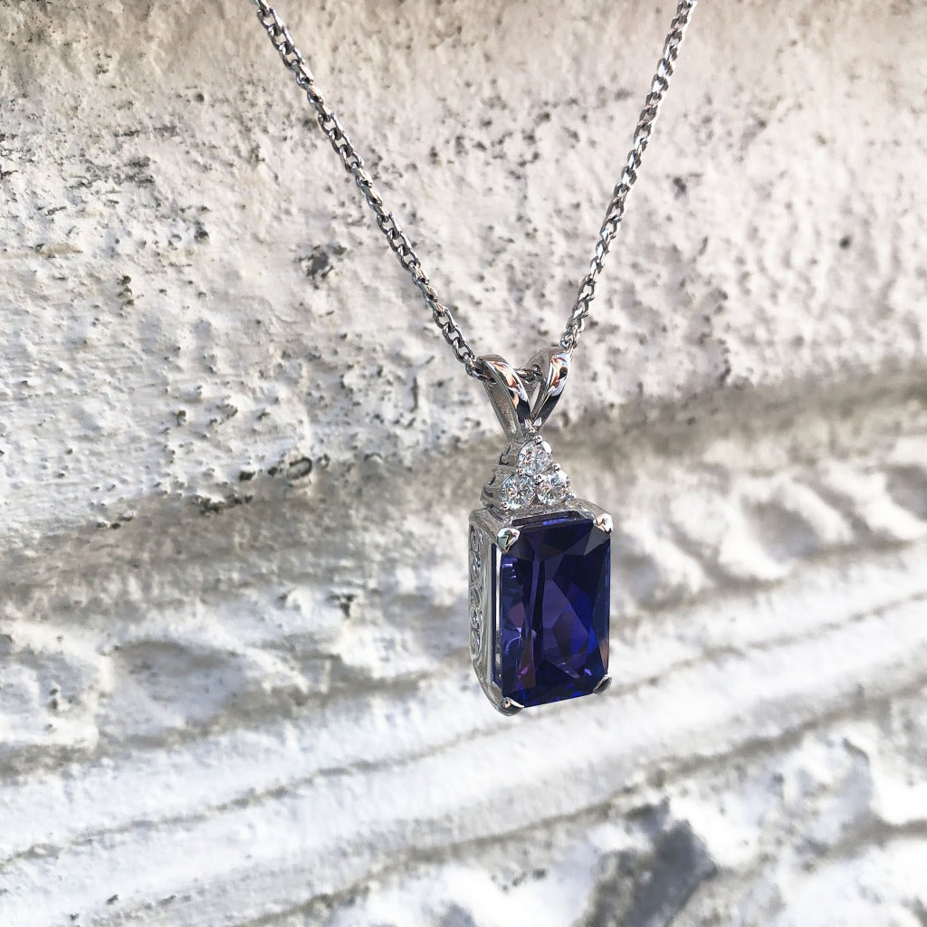 Emerald Cut Tanzanite with Trilogy Accent Diamond Pendant