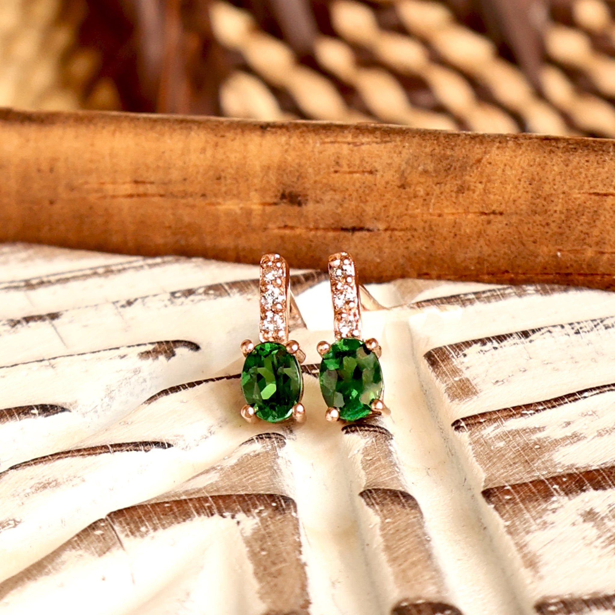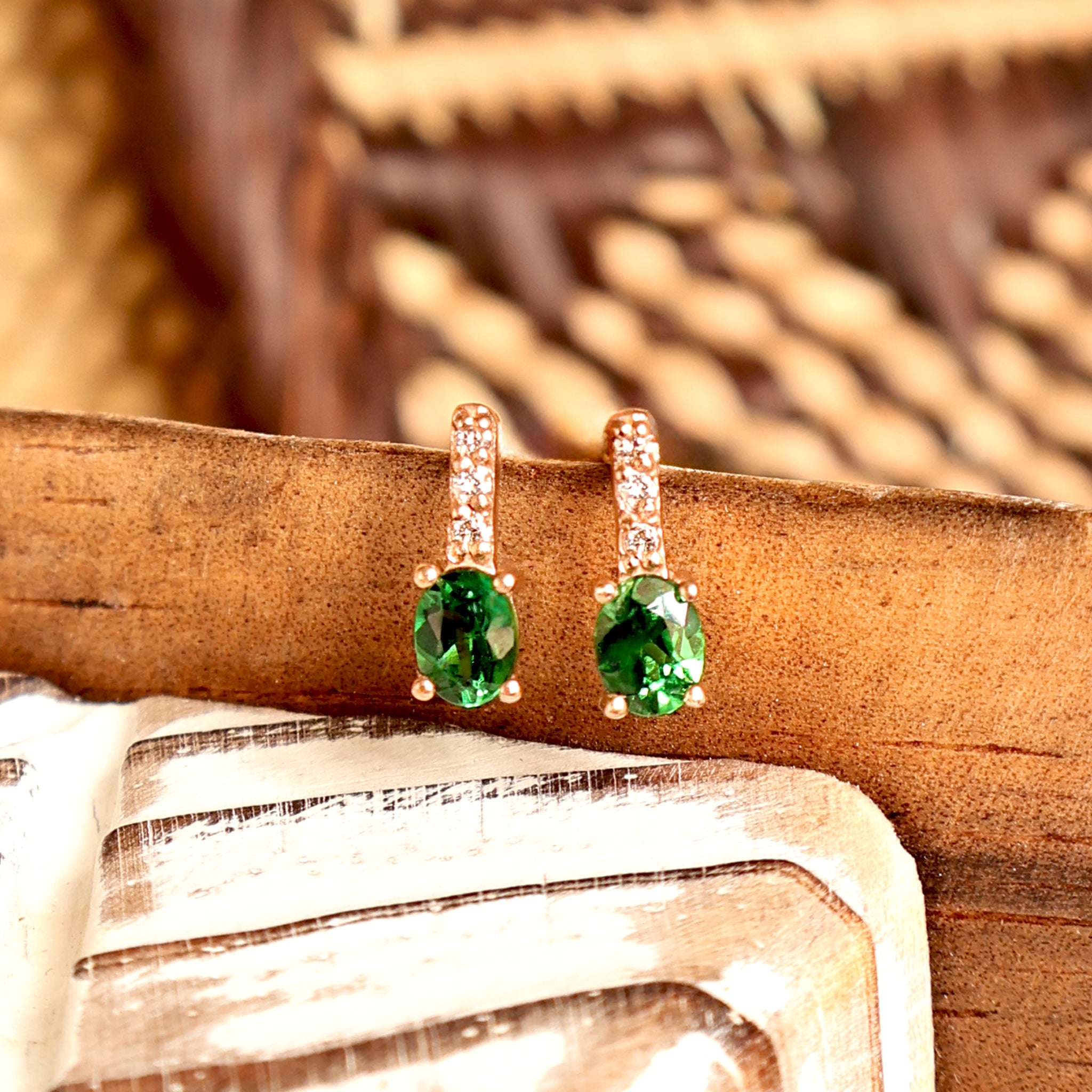 Enchanting Petite Tsavorite and White Diamond Drop Rose Gold Studs