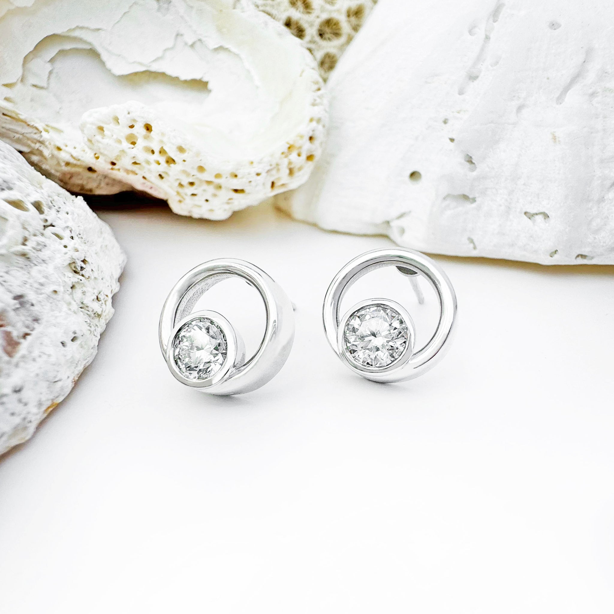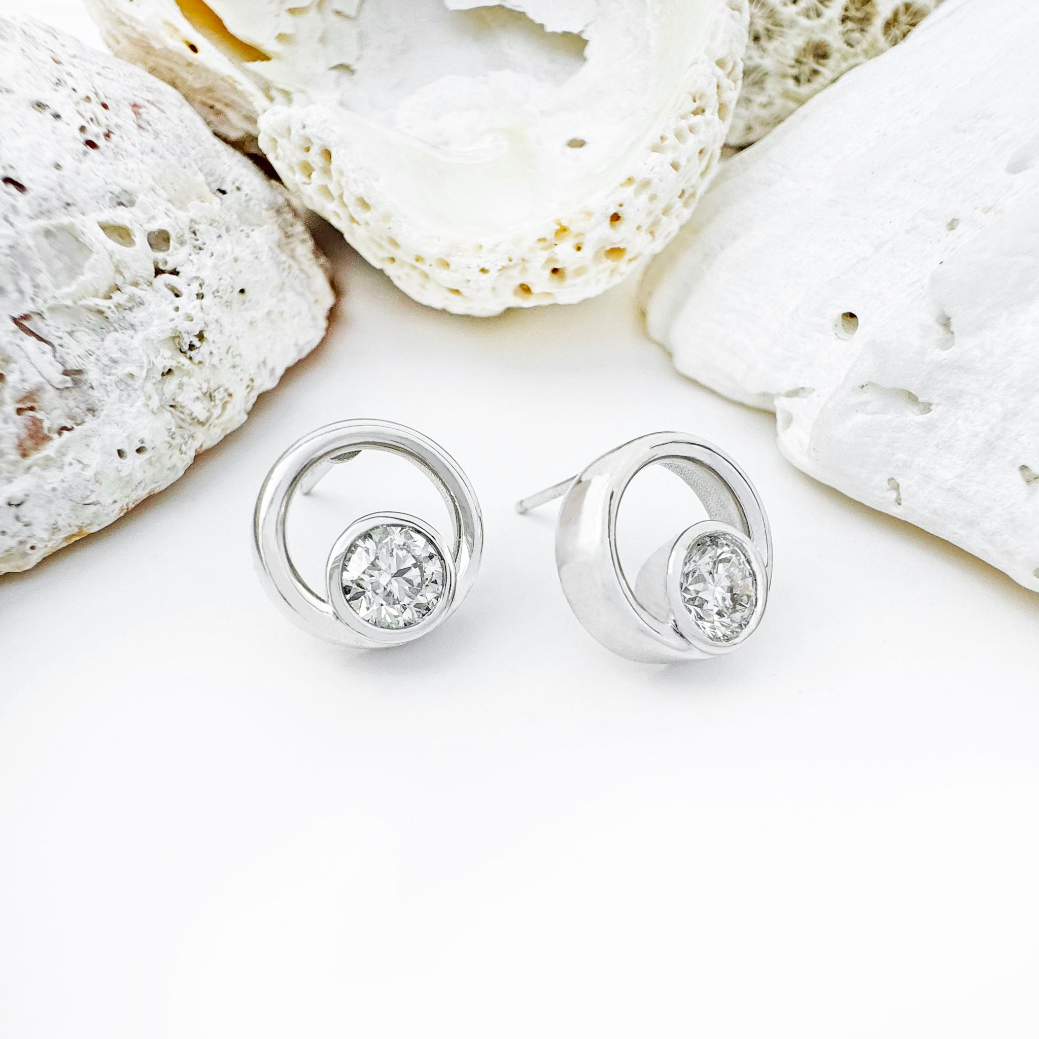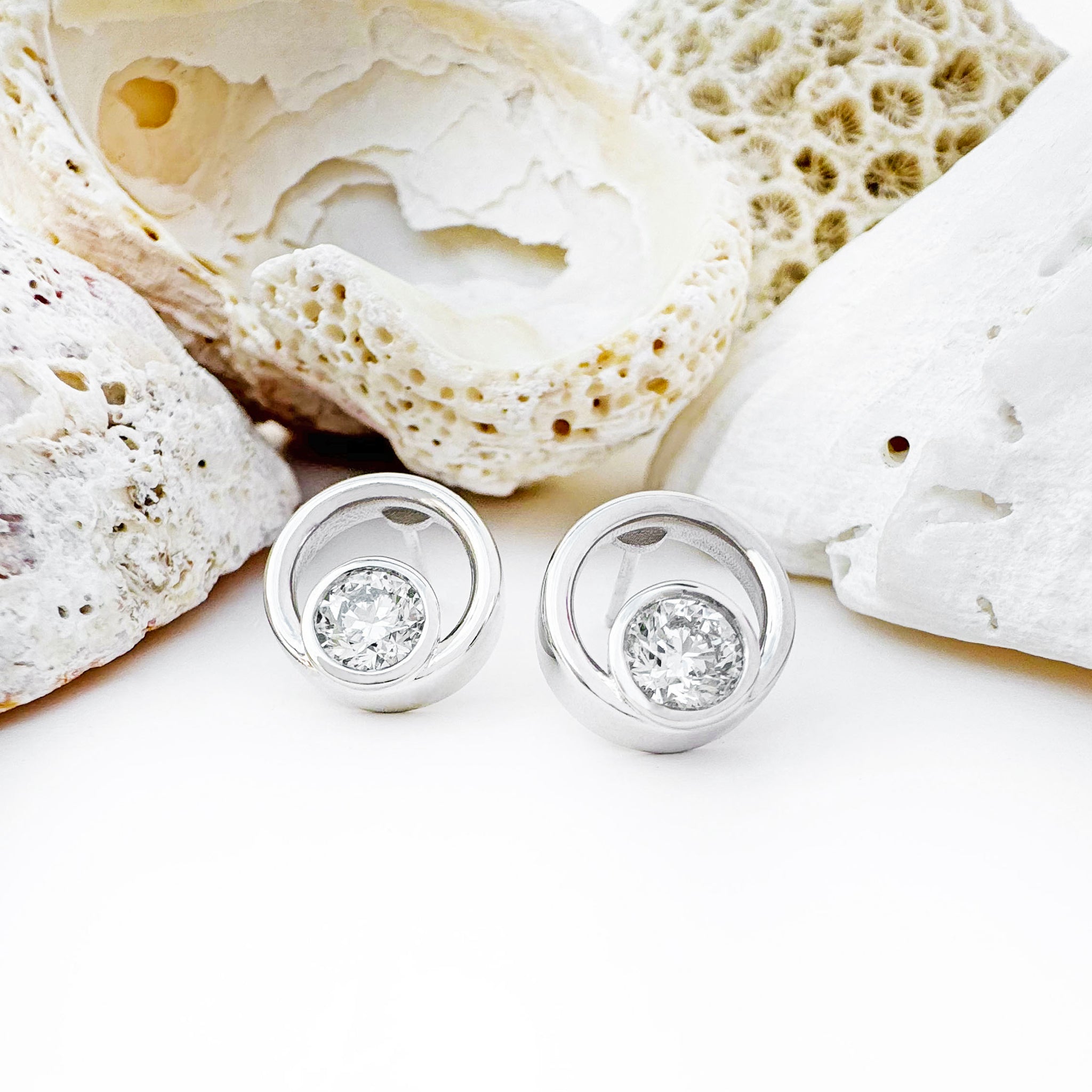 These exquisite diamond and white gold earrings each boast generously sized diamonds totalling one carat in combined weight. Expertly tube-set within lustrous white gold circles, these earrings radiate sophistication and timeless elegance. The brilliance of the diamonds is heightened by the clean lines of the setting, creating a captivating play of light with every movement.