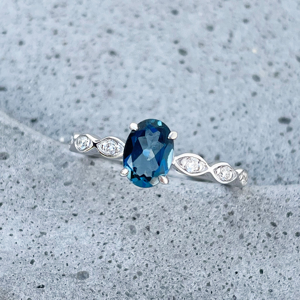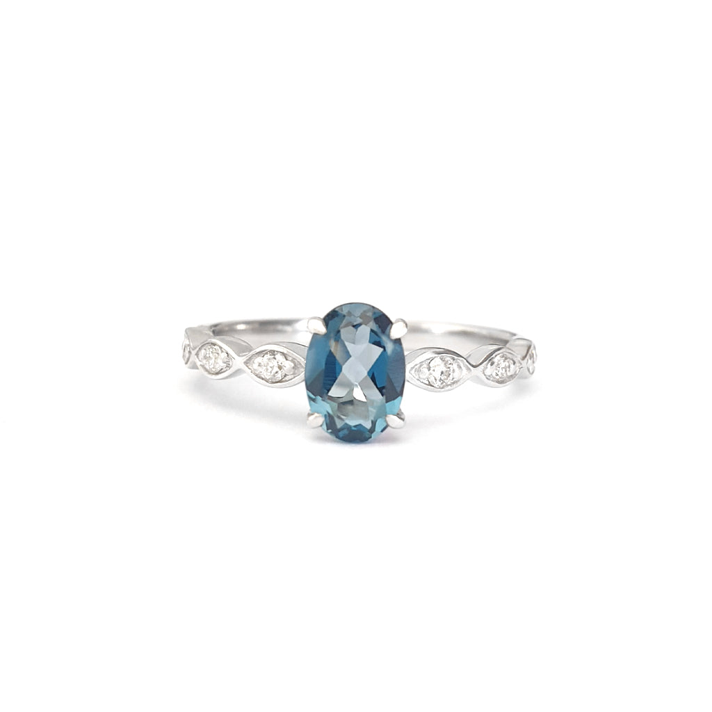 Exquisite London Blue Topaz And Marquise Tapered Band and Diamond Highlight Ring