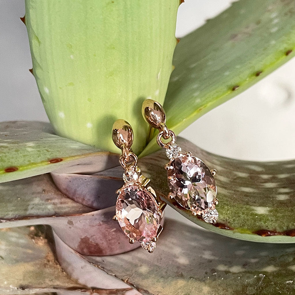 Exquisite Oval Morganite and Diamond Highlight Drop Earrings