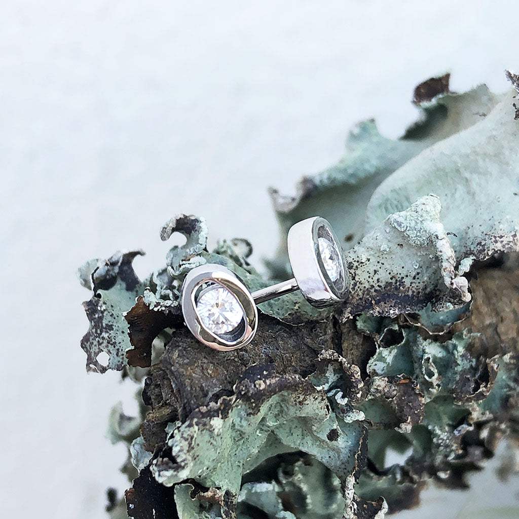 Feature stones: 2 x 0.10ct Diamonds; weight: 0.20ct (combined); cut: round; colour: G/H; clarity: VS/SI