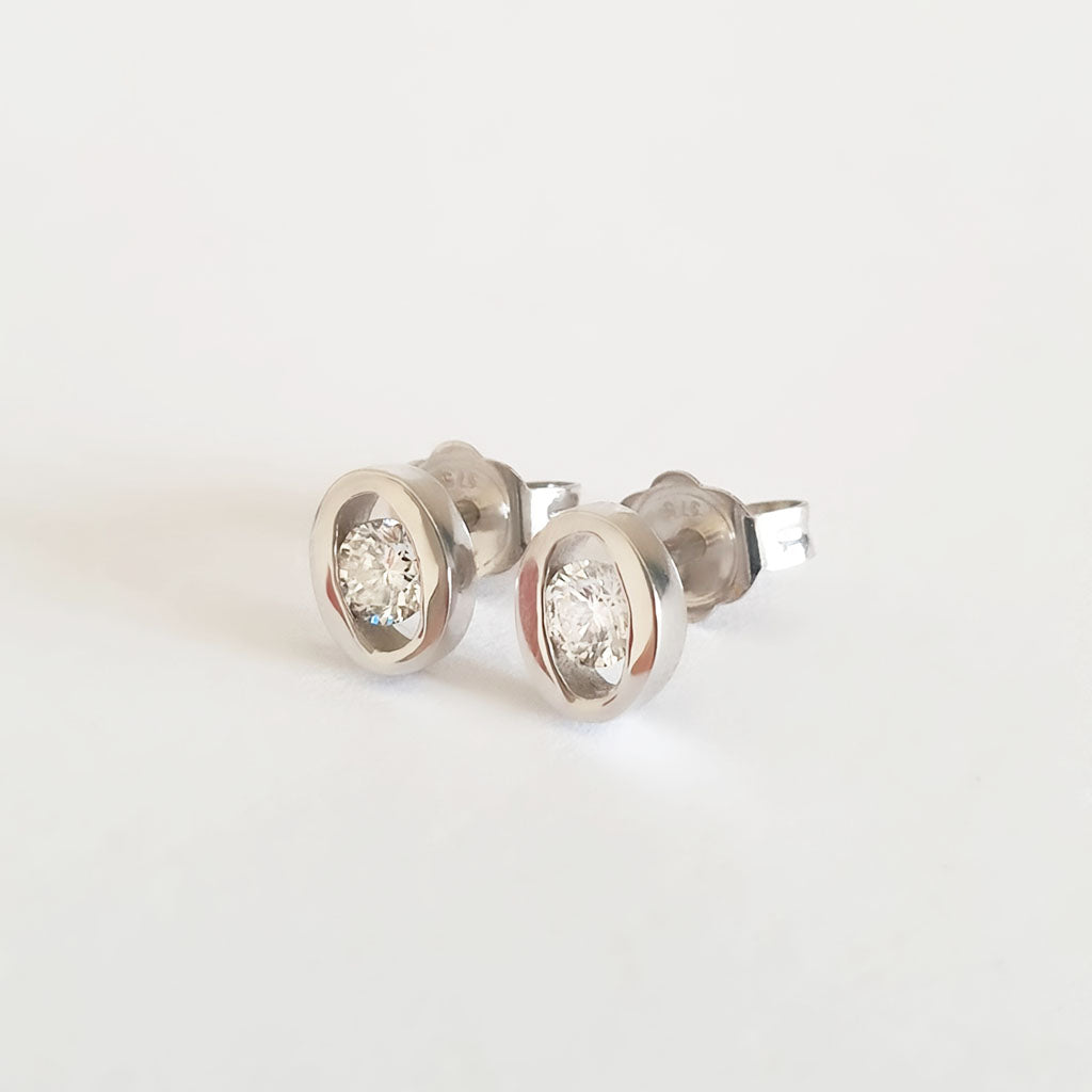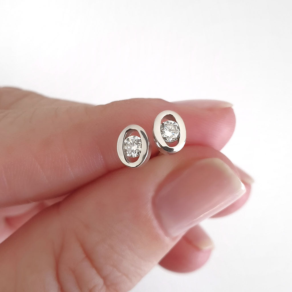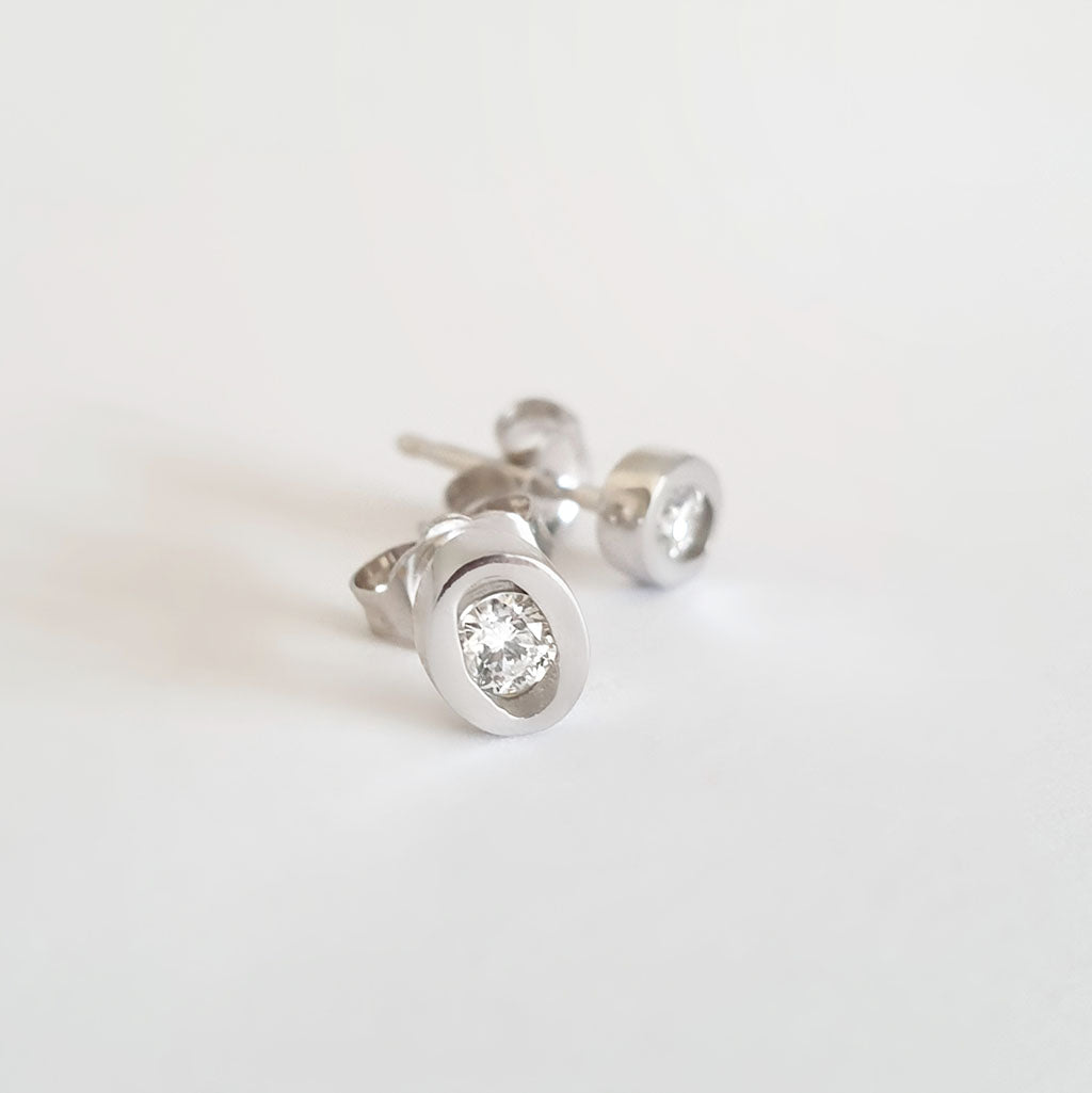 Sparkling white diamonds have been channel set into gleaming contemporary white gold ovals for a distinctive pair of studs. Wear them with the perfect little black dress to tell the world your love is hard-won but worth the effort.