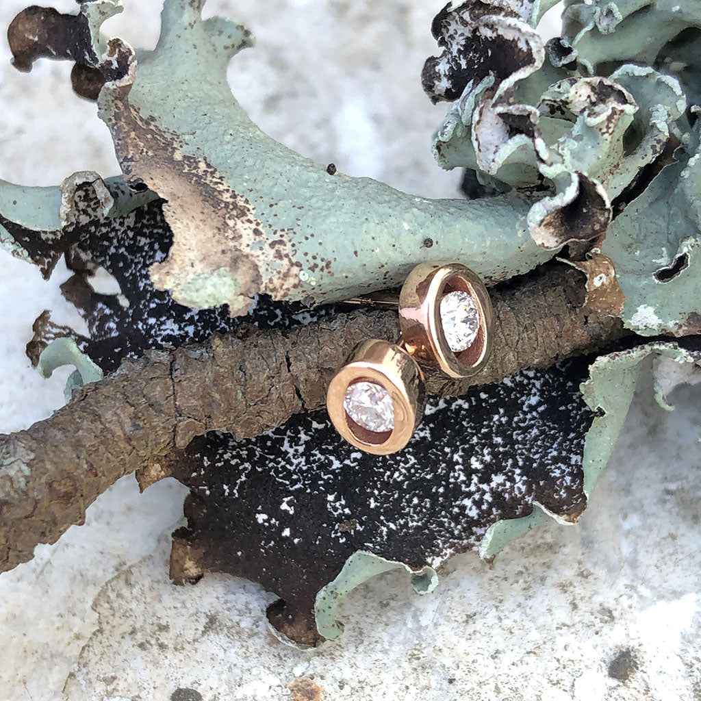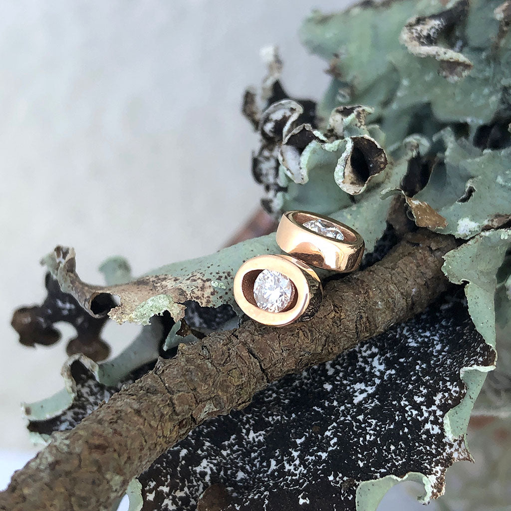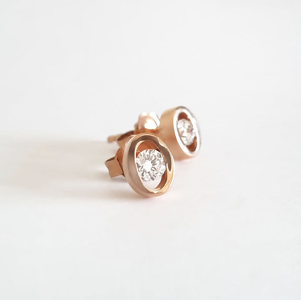 Sparkling white diamonds channel set into contemporary rose gold ovals make distinctive studs the perfect ear decor for when you want to tone it down without wallflowering into the background.