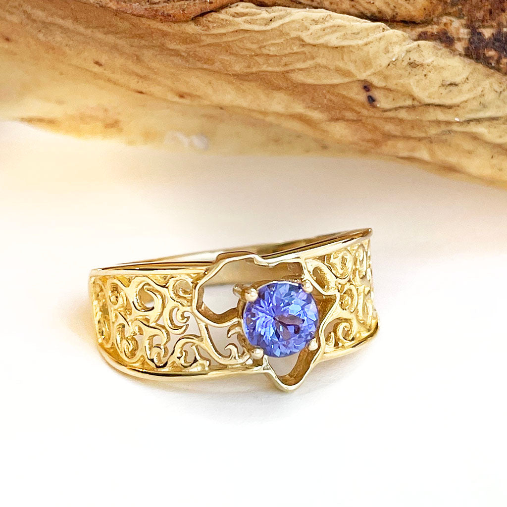 Filigree Africa Map Tanzanite Ring