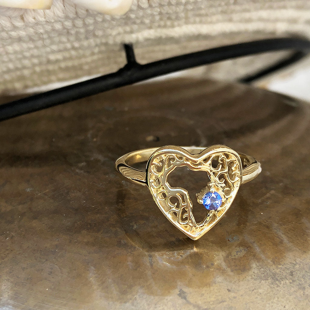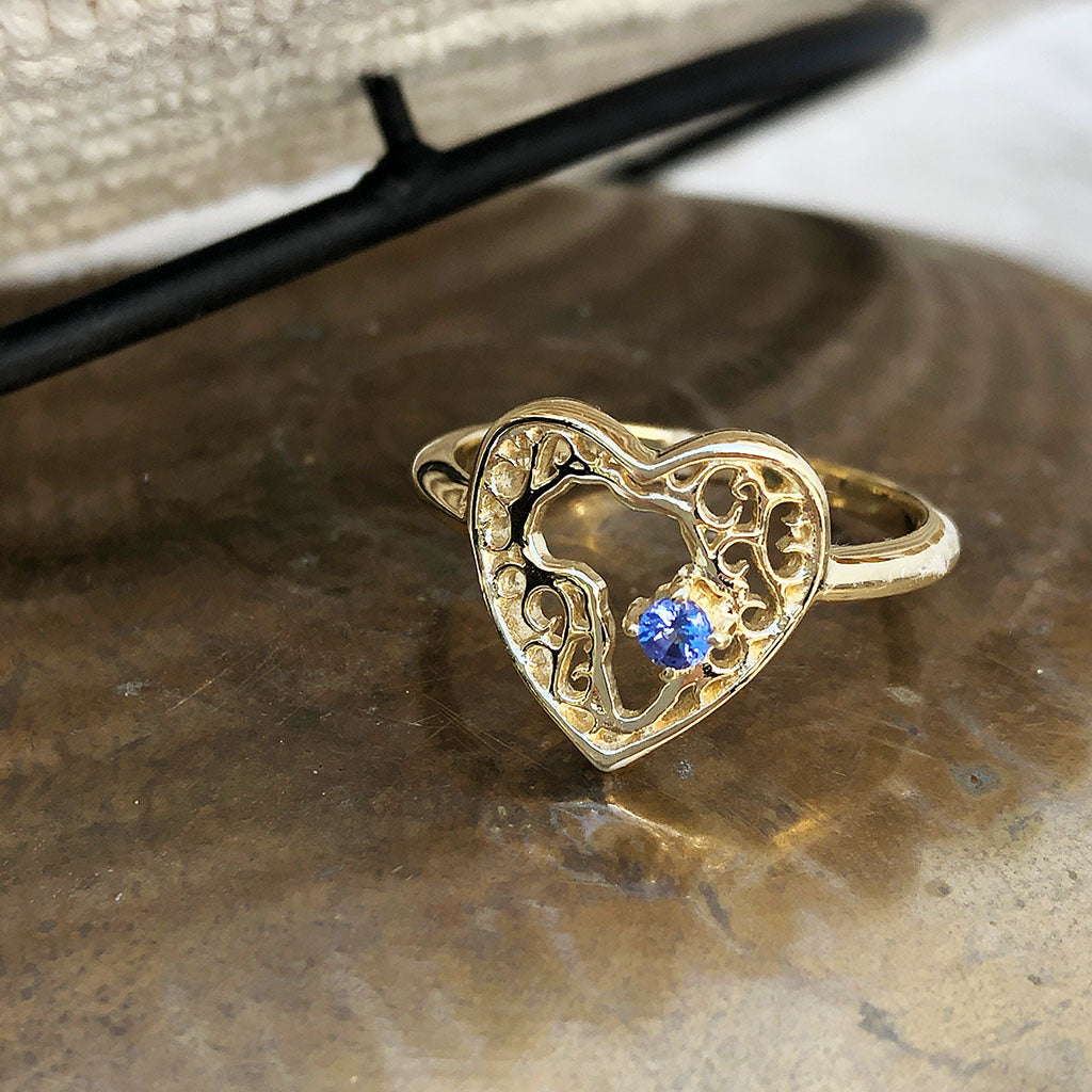 Filigree Heart Africa Tanzanite Ring