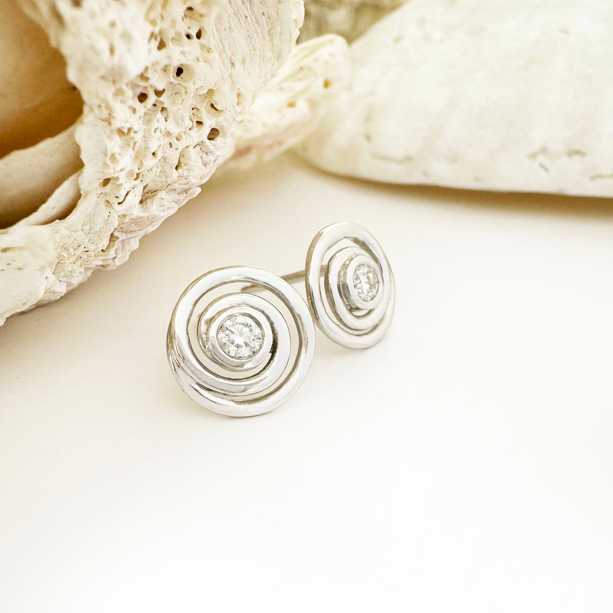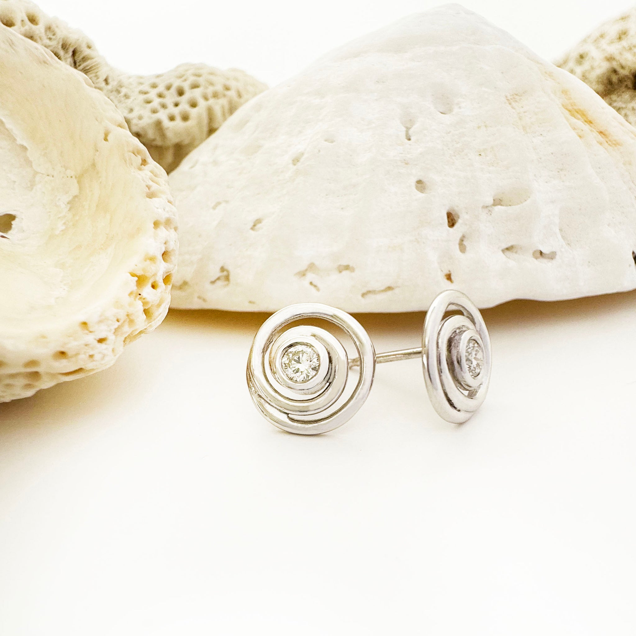 Fun and flirty and a nod to forever love, swirling white gold surrounds brilliant round diamonds in these luxurious studs. The swirl creates an infinite loop that symbolises the undying nature of true love around white diamonds that flash brilliance in the light; a playful wink that reminds us that the best kind of lover should make us laugh.