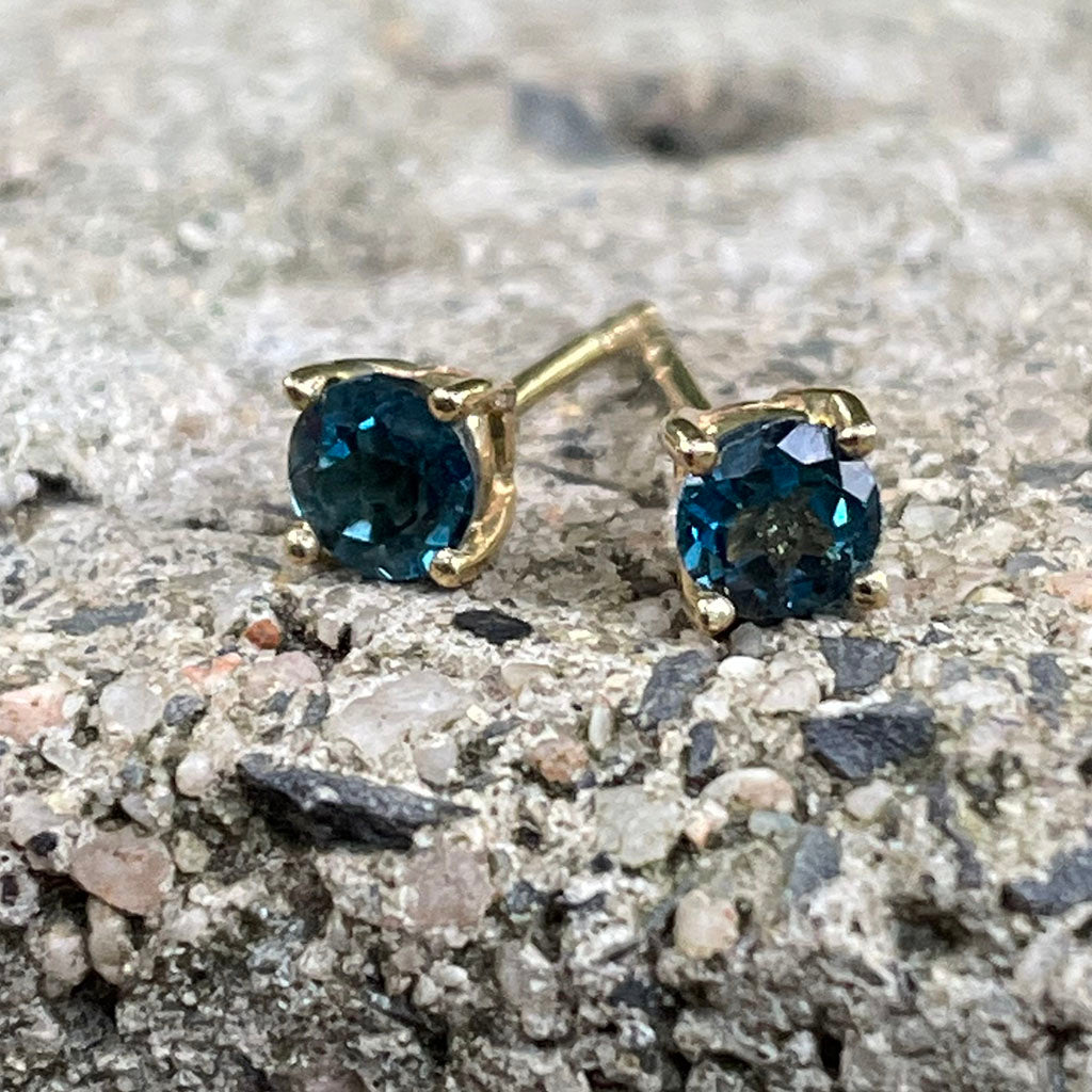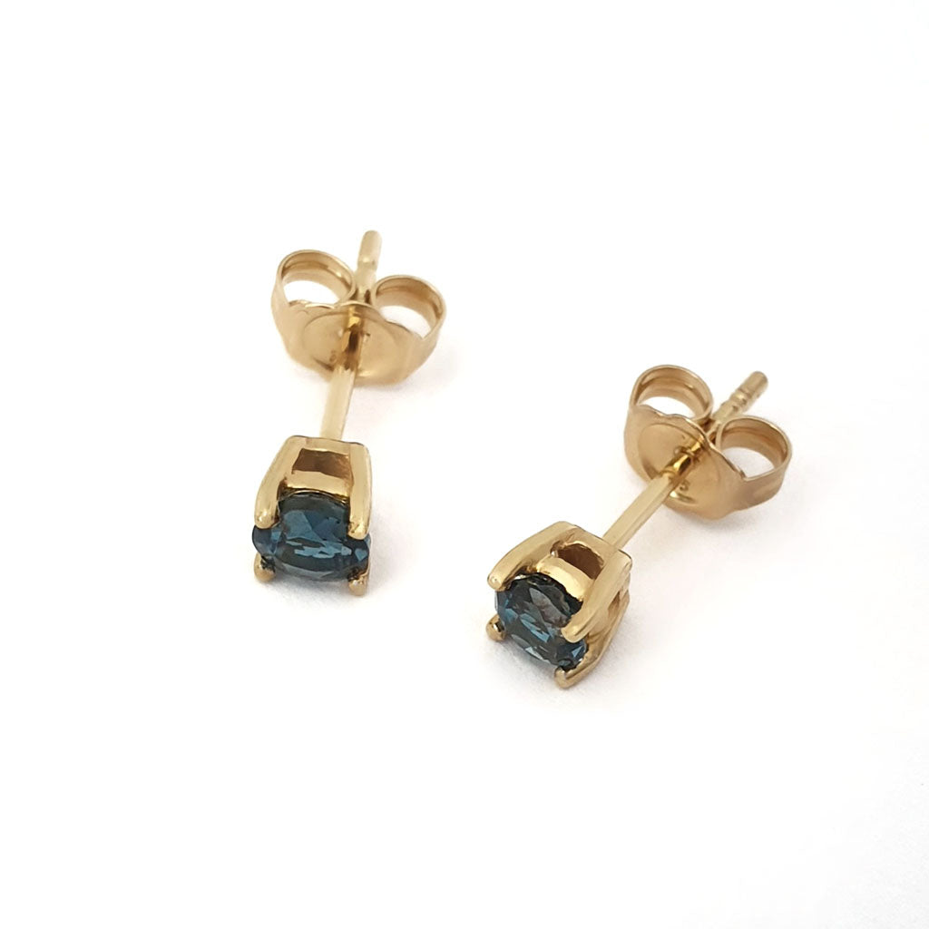 Four Claw Yellow Gold London Blue Topaz Earrings
