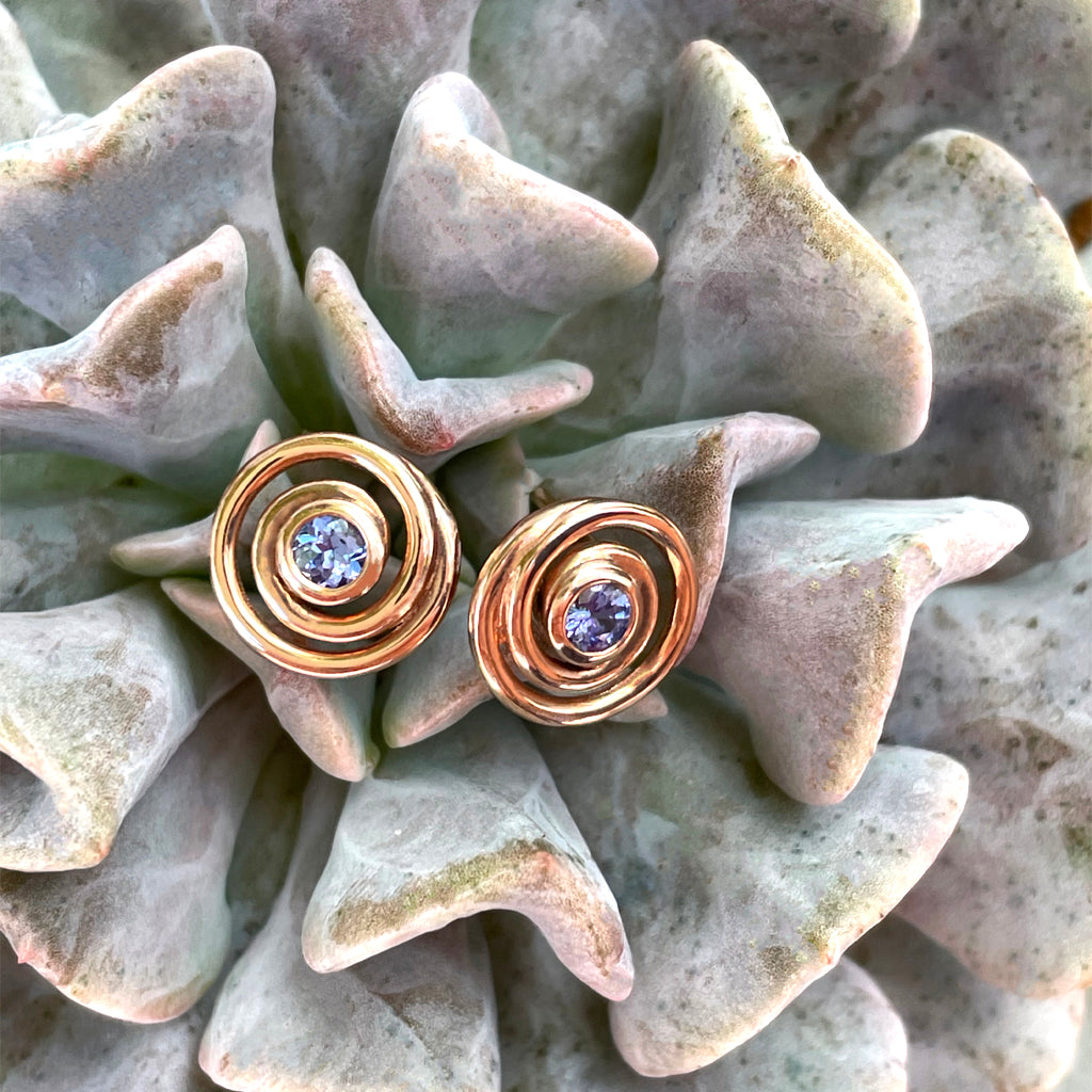 Flirty Infinity Rose Gold Swirl Tanzanite Studs