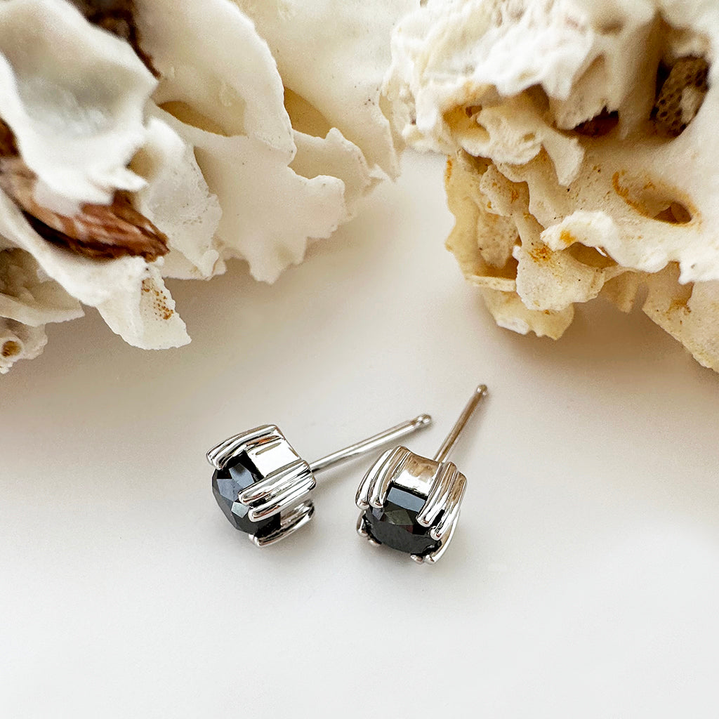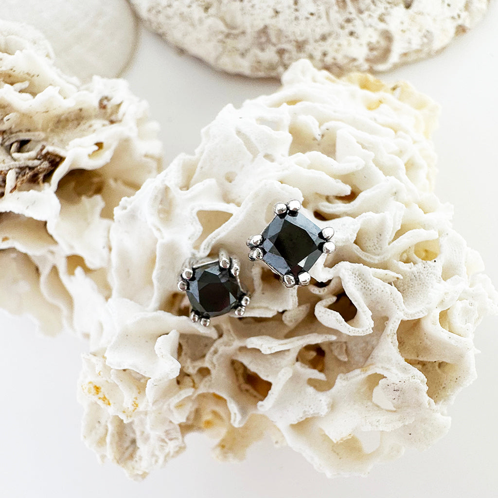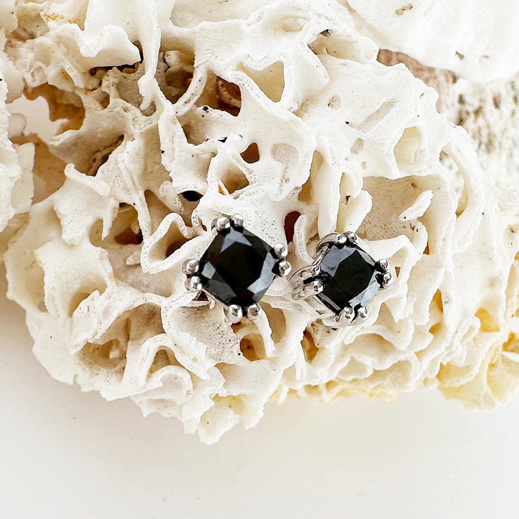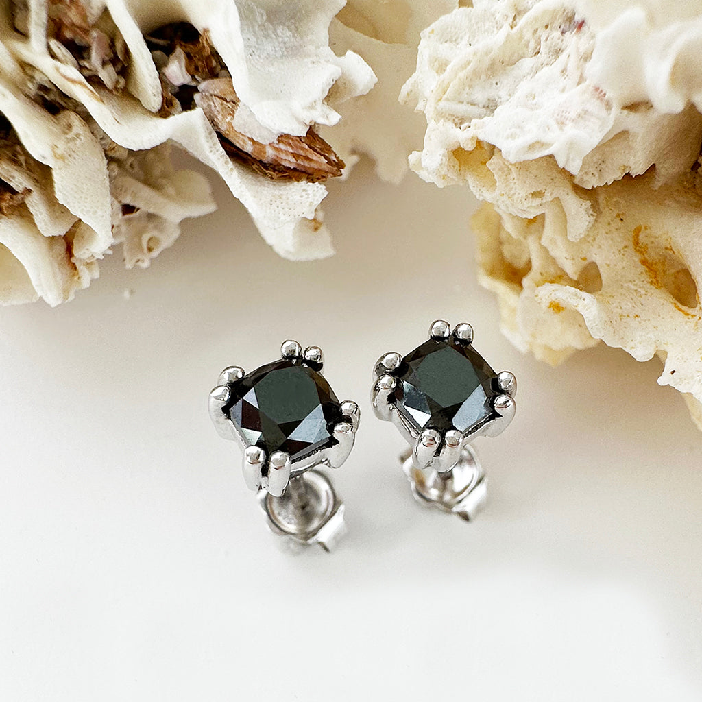 Generous Cushion Cut Double Claw Black Diamond Studs