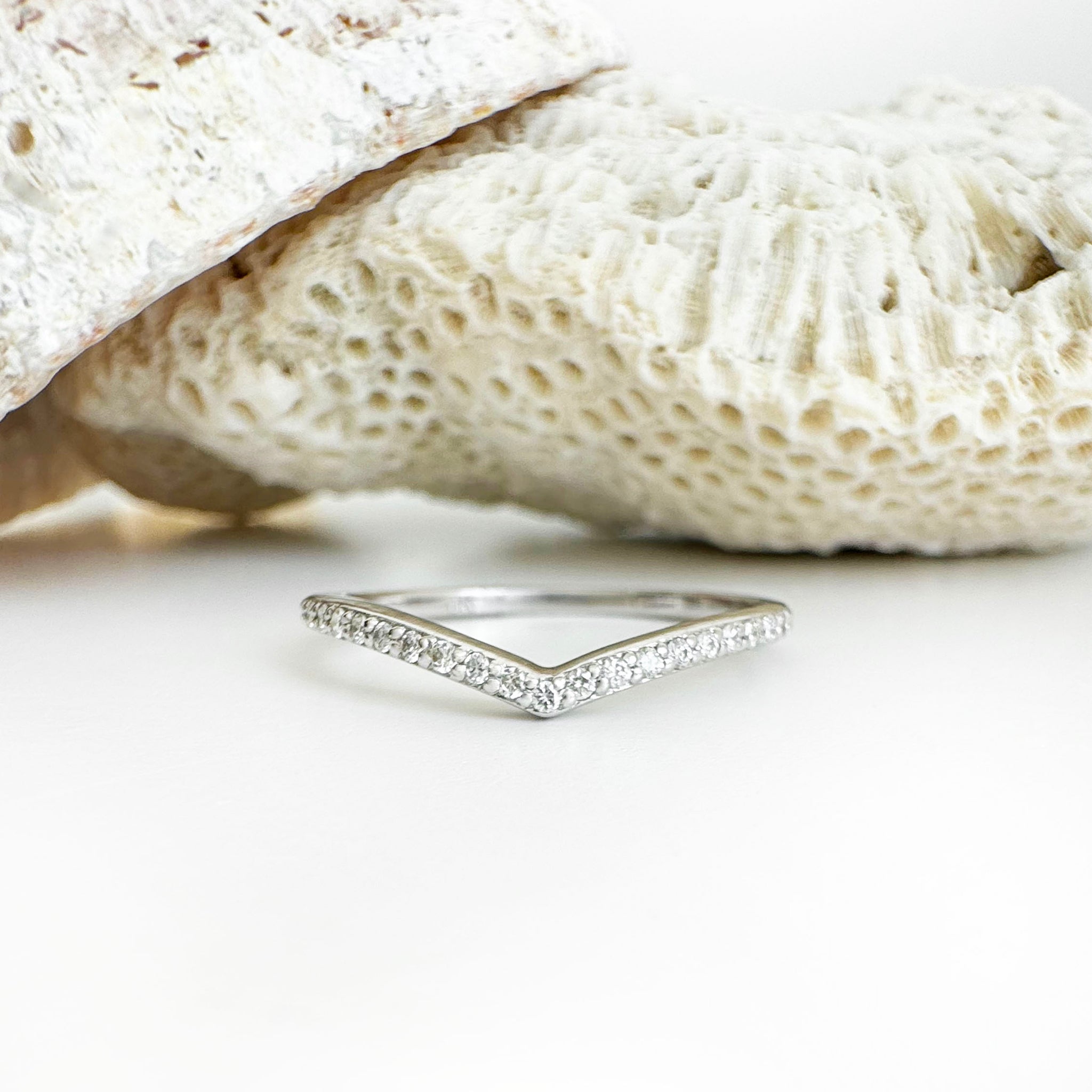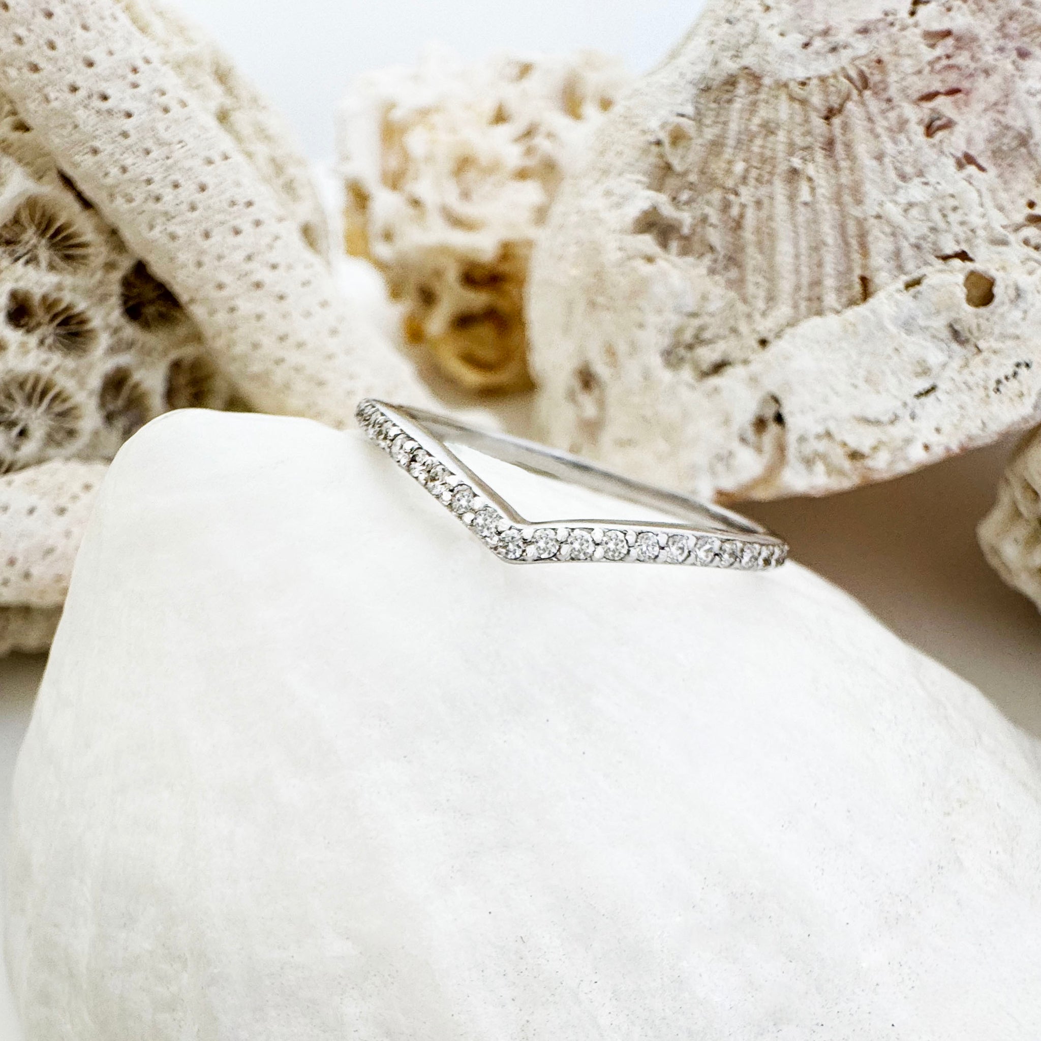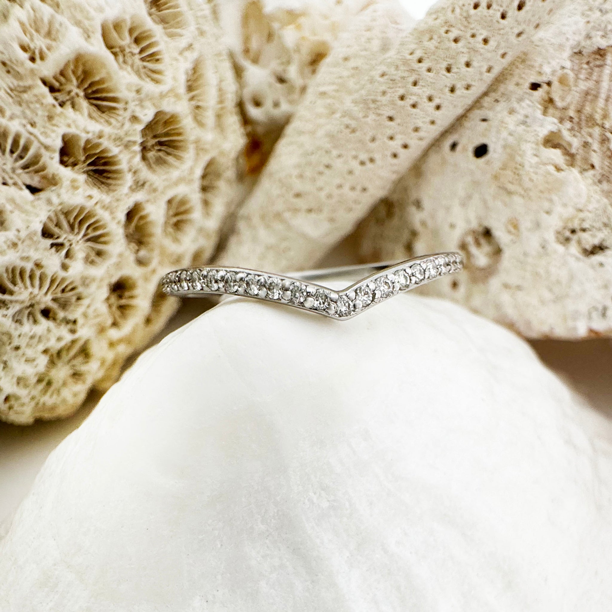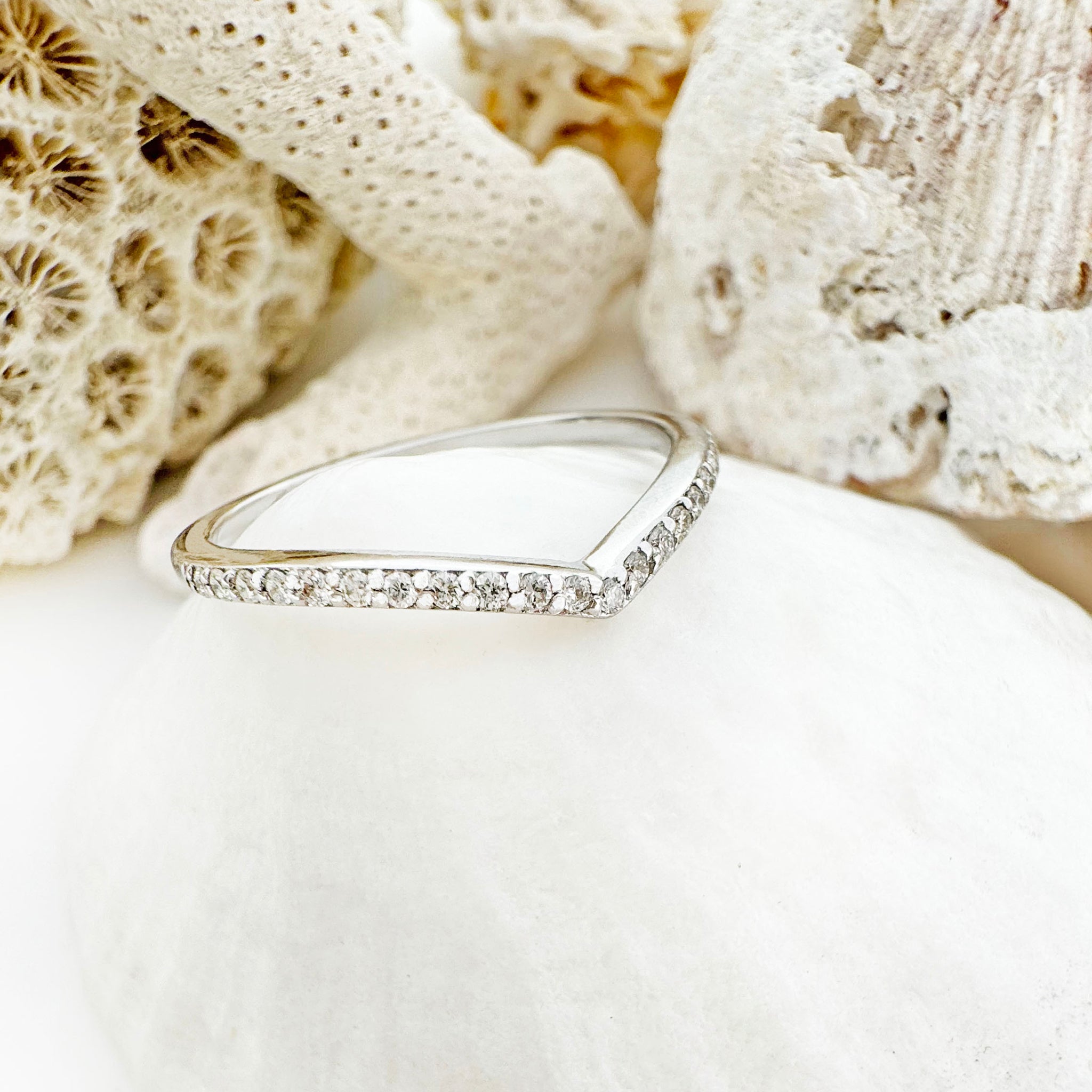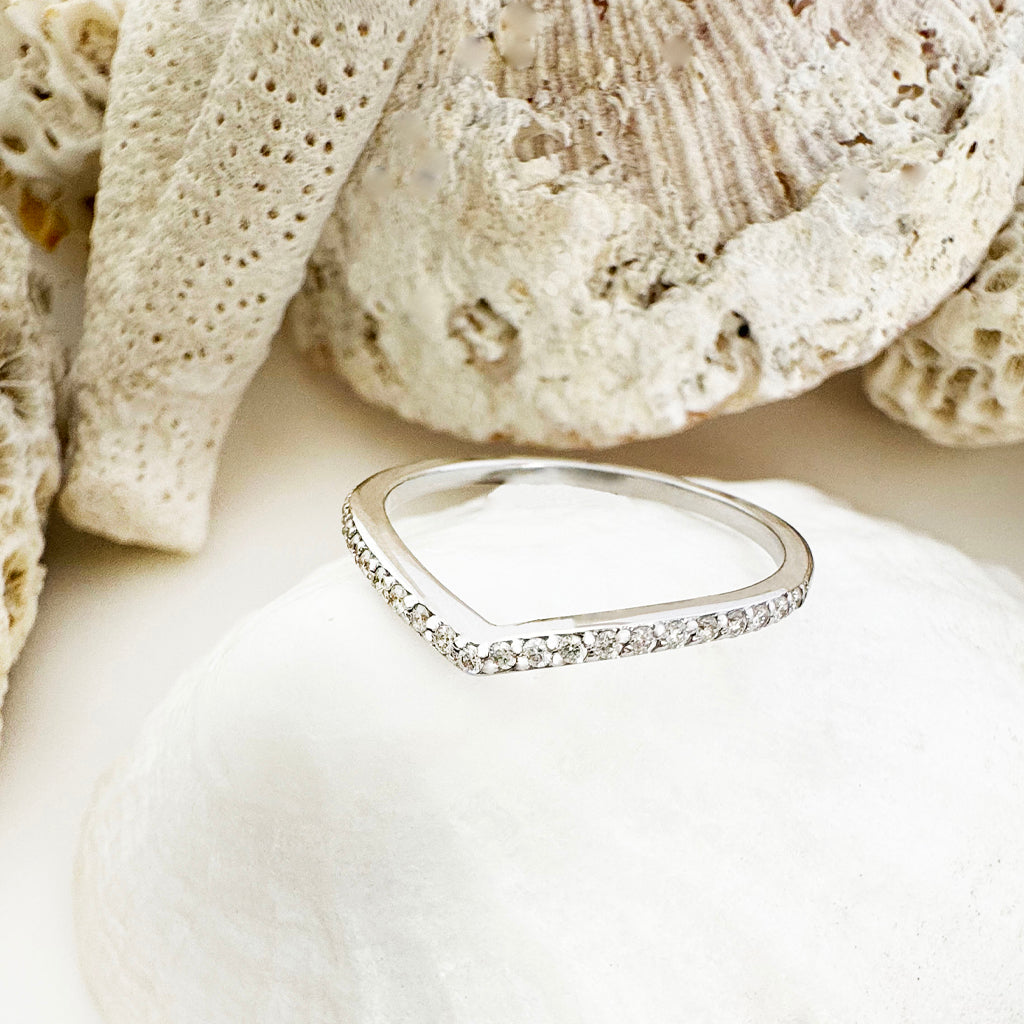 Gently Curved Diamond White Gold Crown Ring