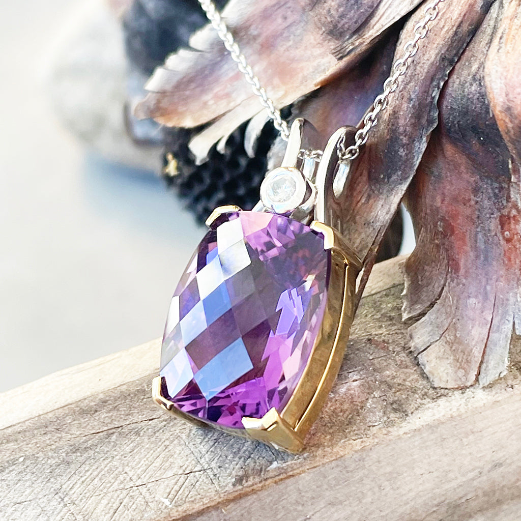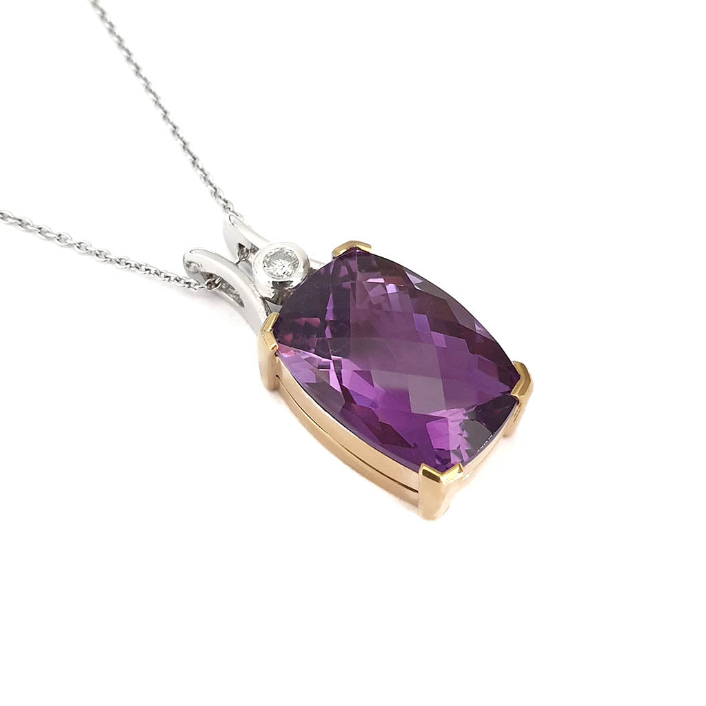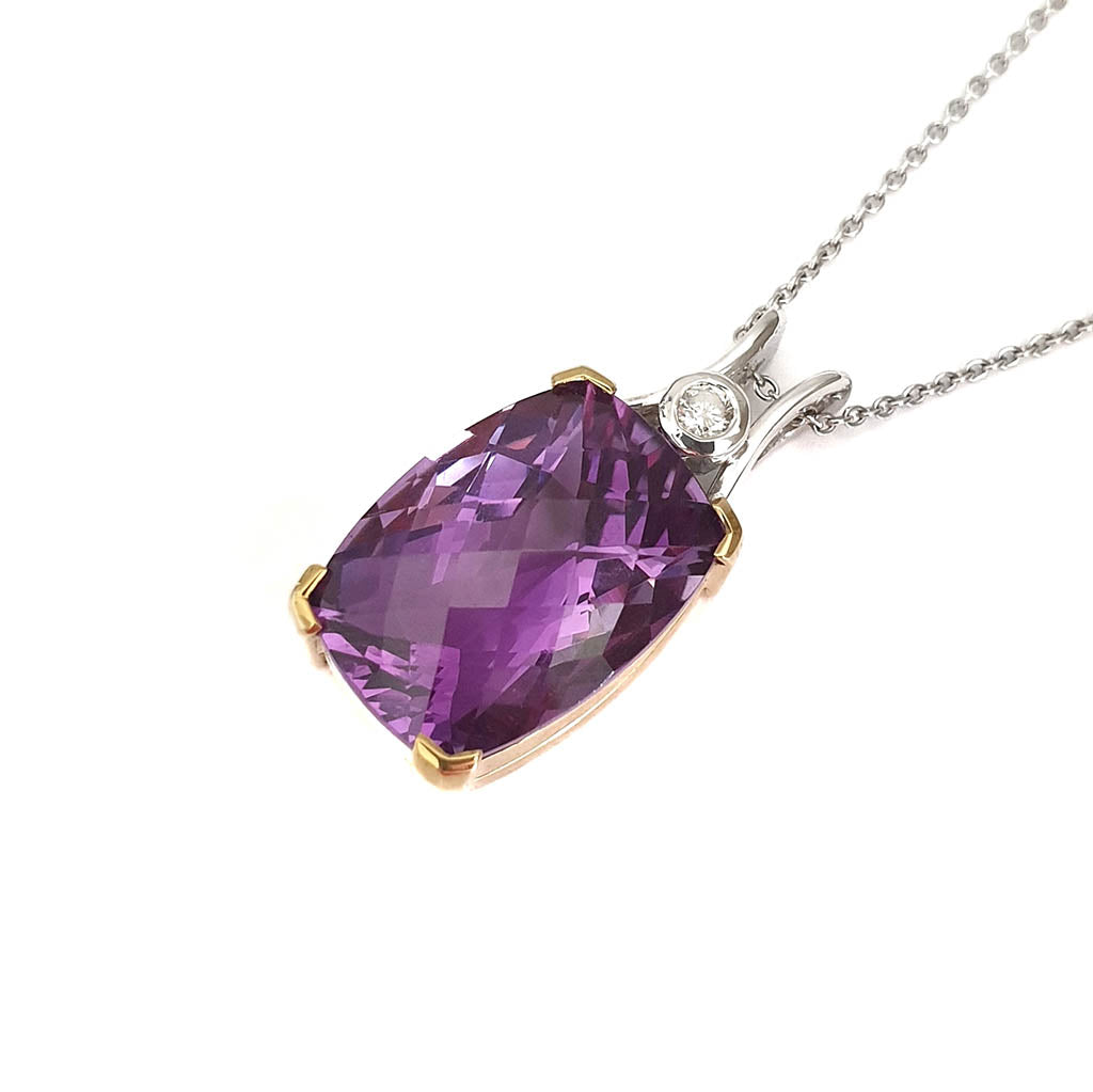Glamorous Handcrafted Two Tone Amethyst and Diamond Pendant